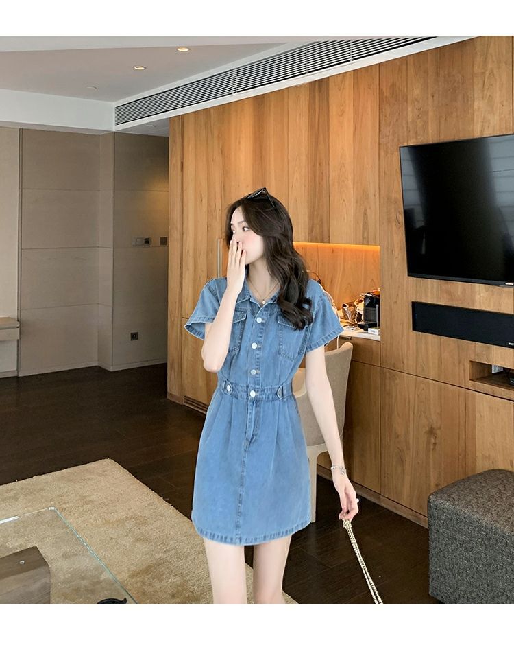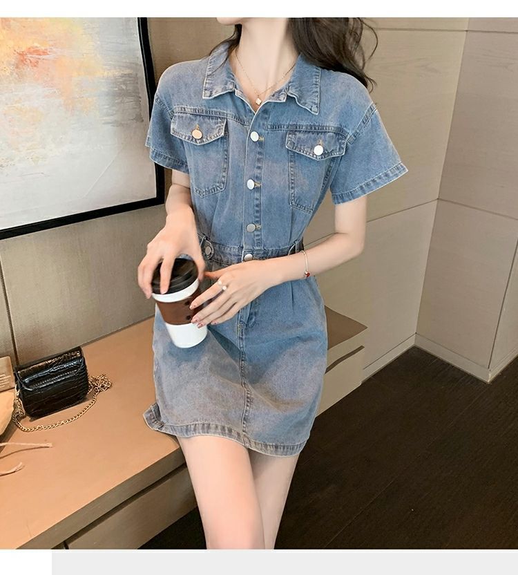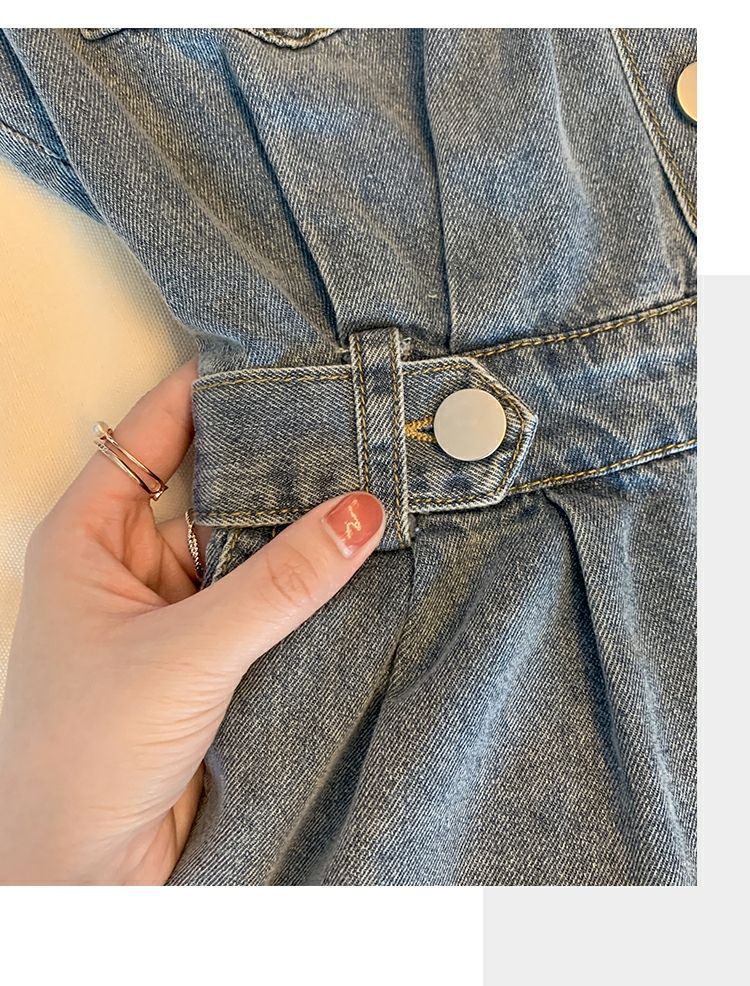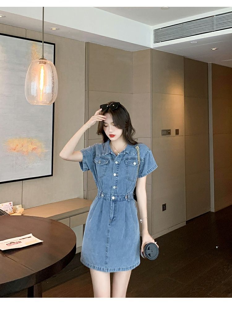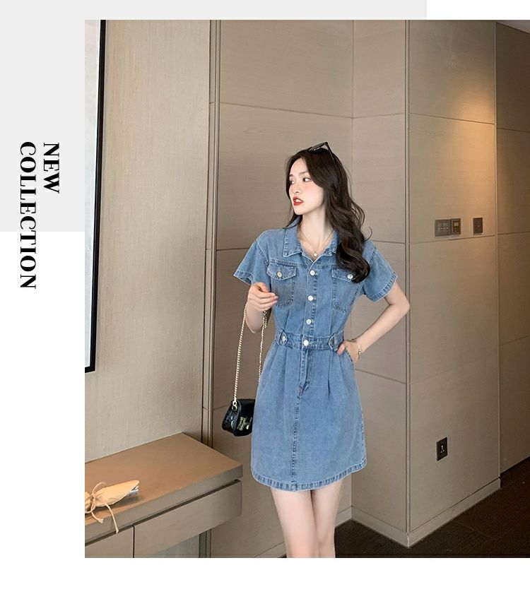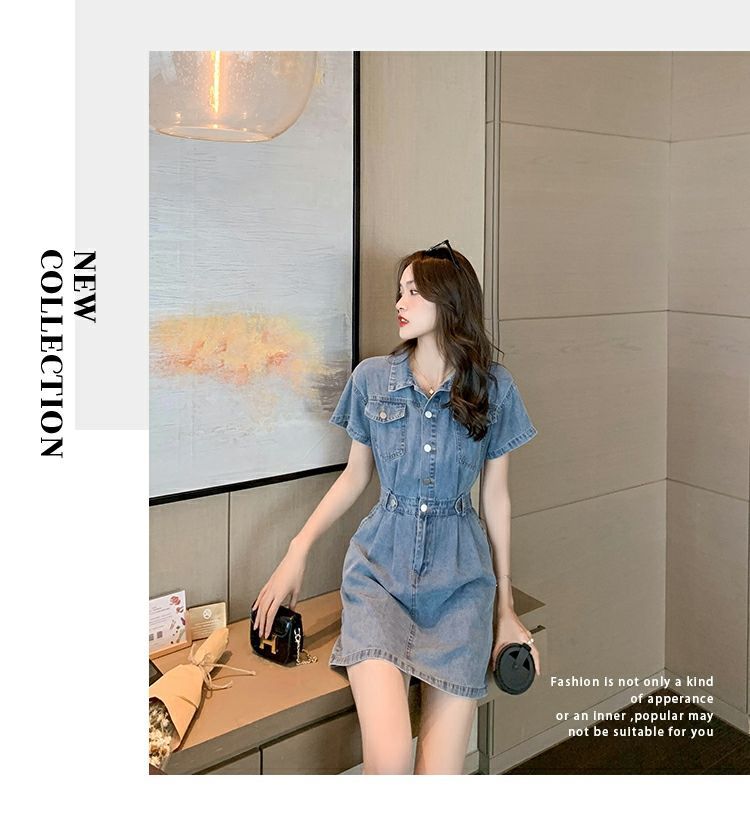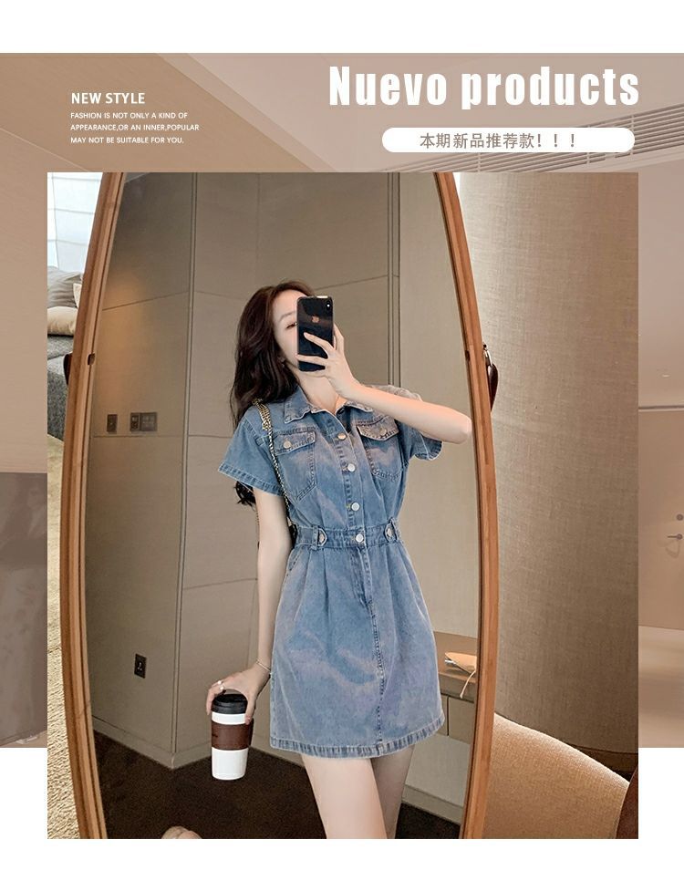 【爆款牛仔裙】法式大众POLO领 潮流小个子收腰显瘦 复古韩版牛仔A字短裙 一抹撞色美炸天 快来抢占最IN的风尚!