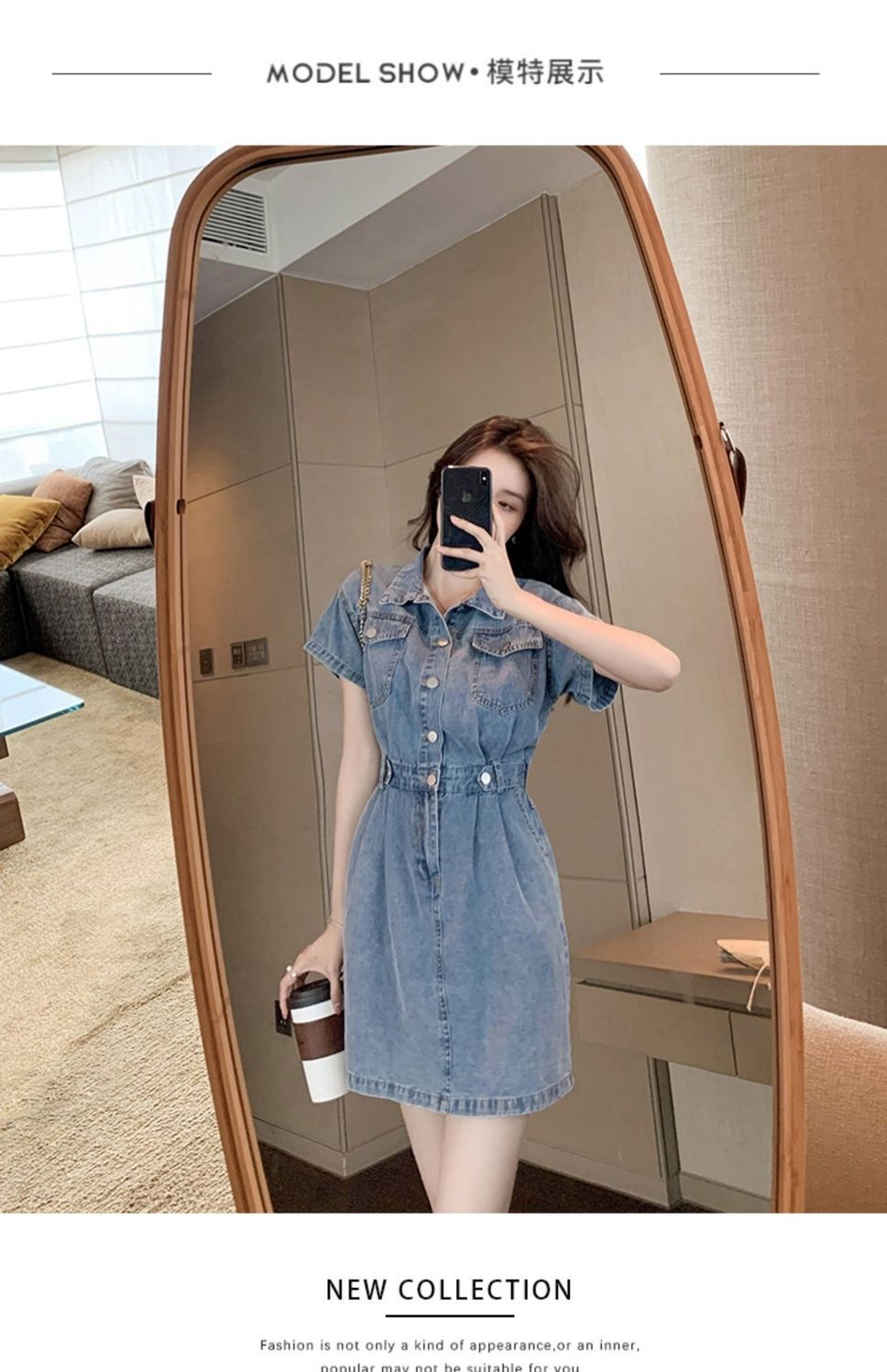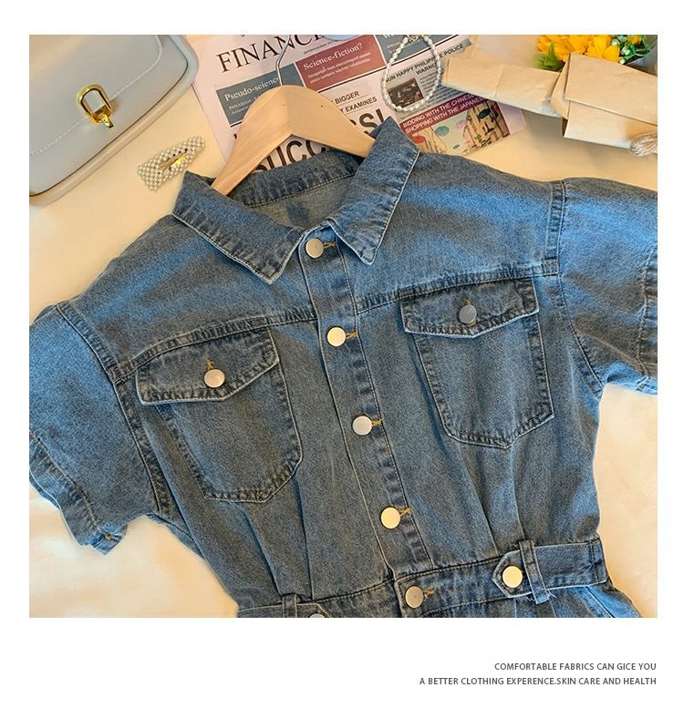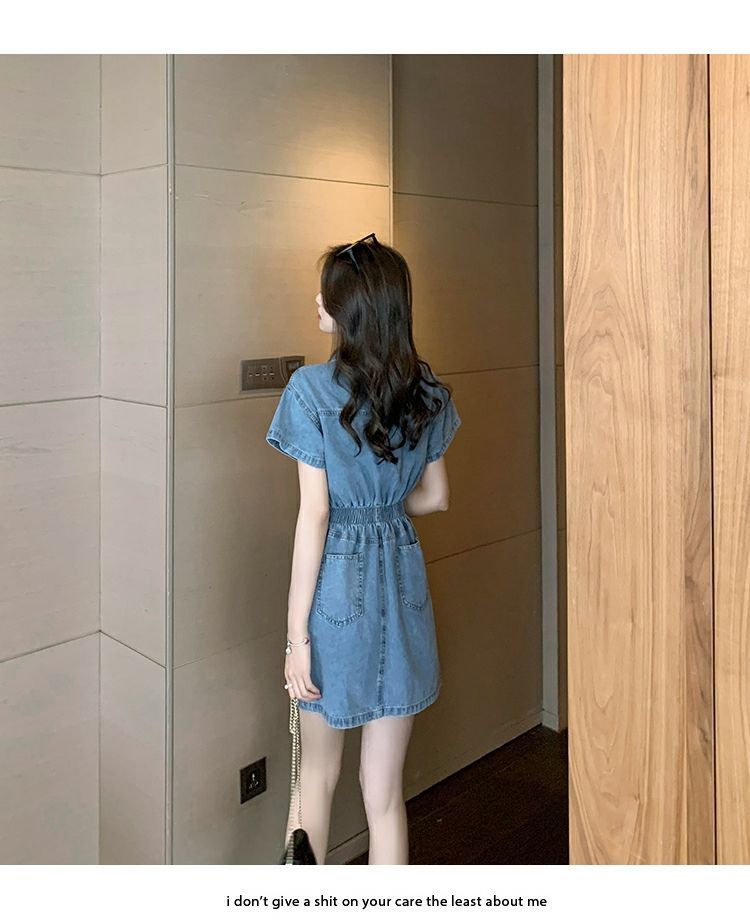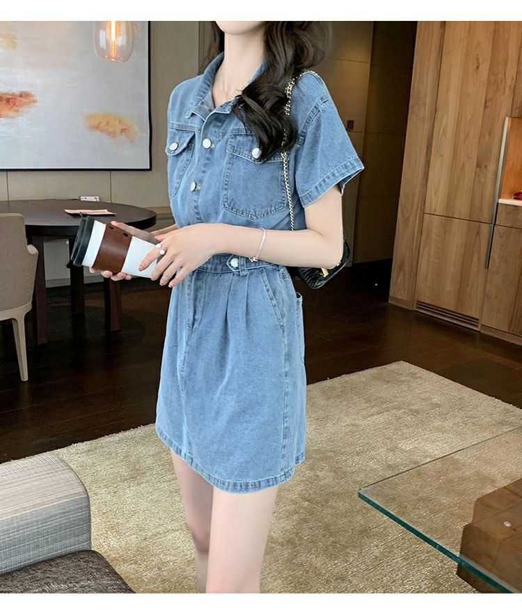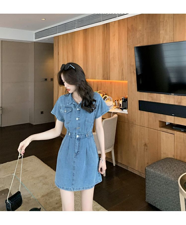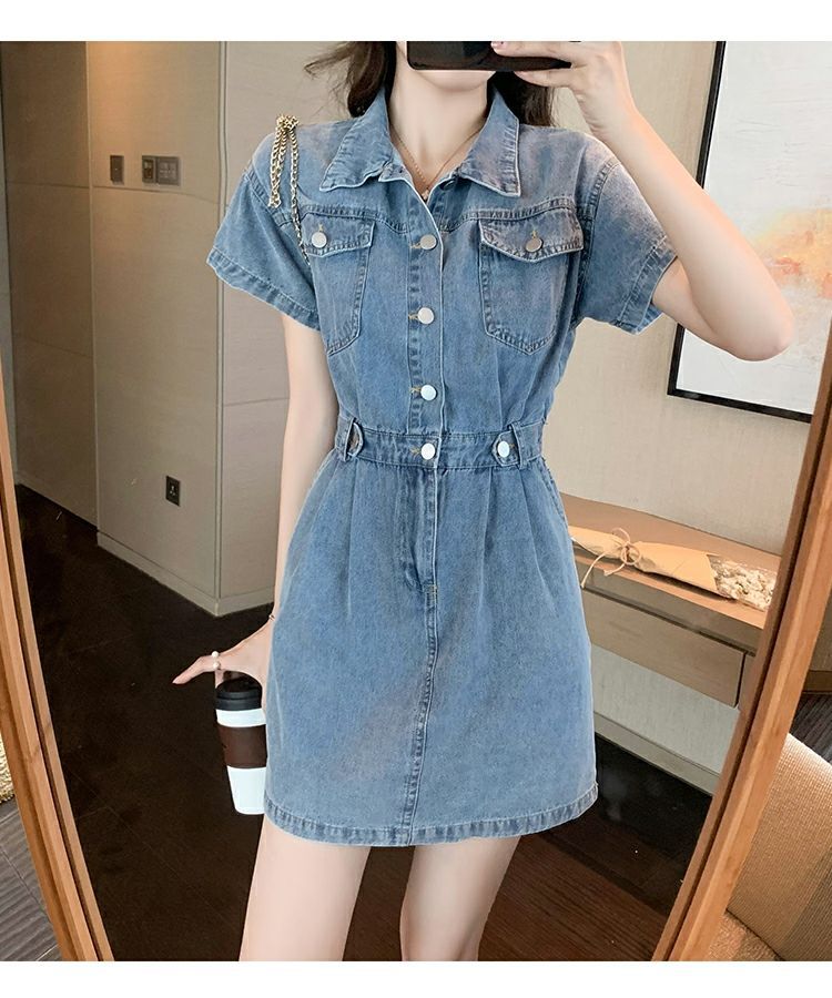 【爆款牛仔裙】法式大众POLO领 潮流小个子收腰显瘦 复古韩版牛仔A字短裙 一抹撞色美炸天 快来抢占最IN的风尚!