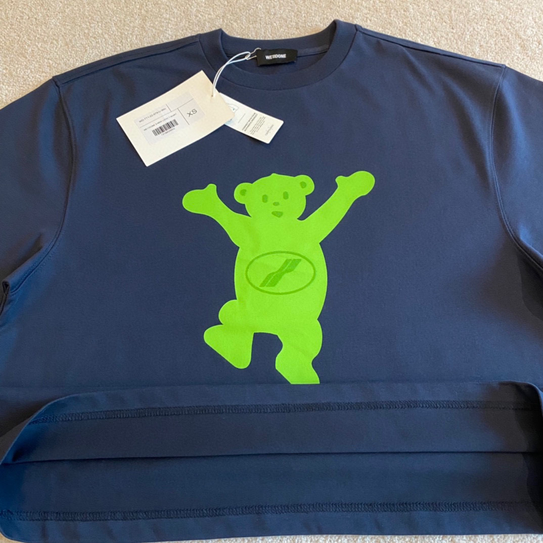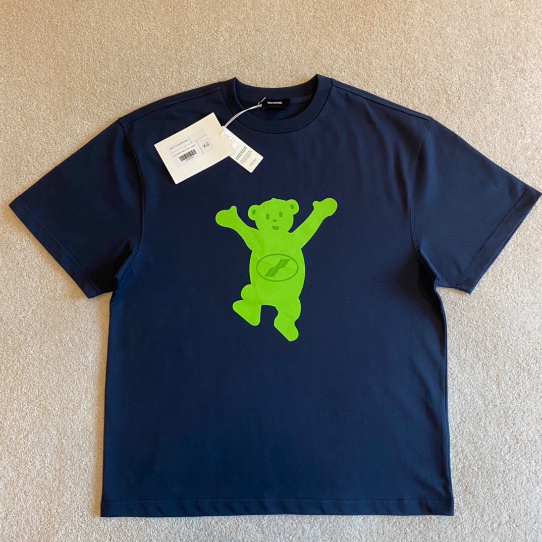 We11done23春夏超大版型有机棉泰迪印花T恤/海军蓝
