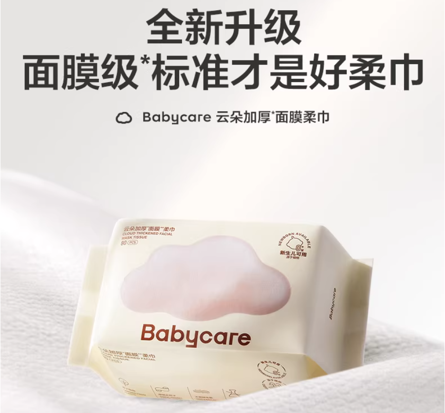 babycare小熊绵柔巾加大加厚80抽婴幼儿洗脸手口干湿两用棉柔巾