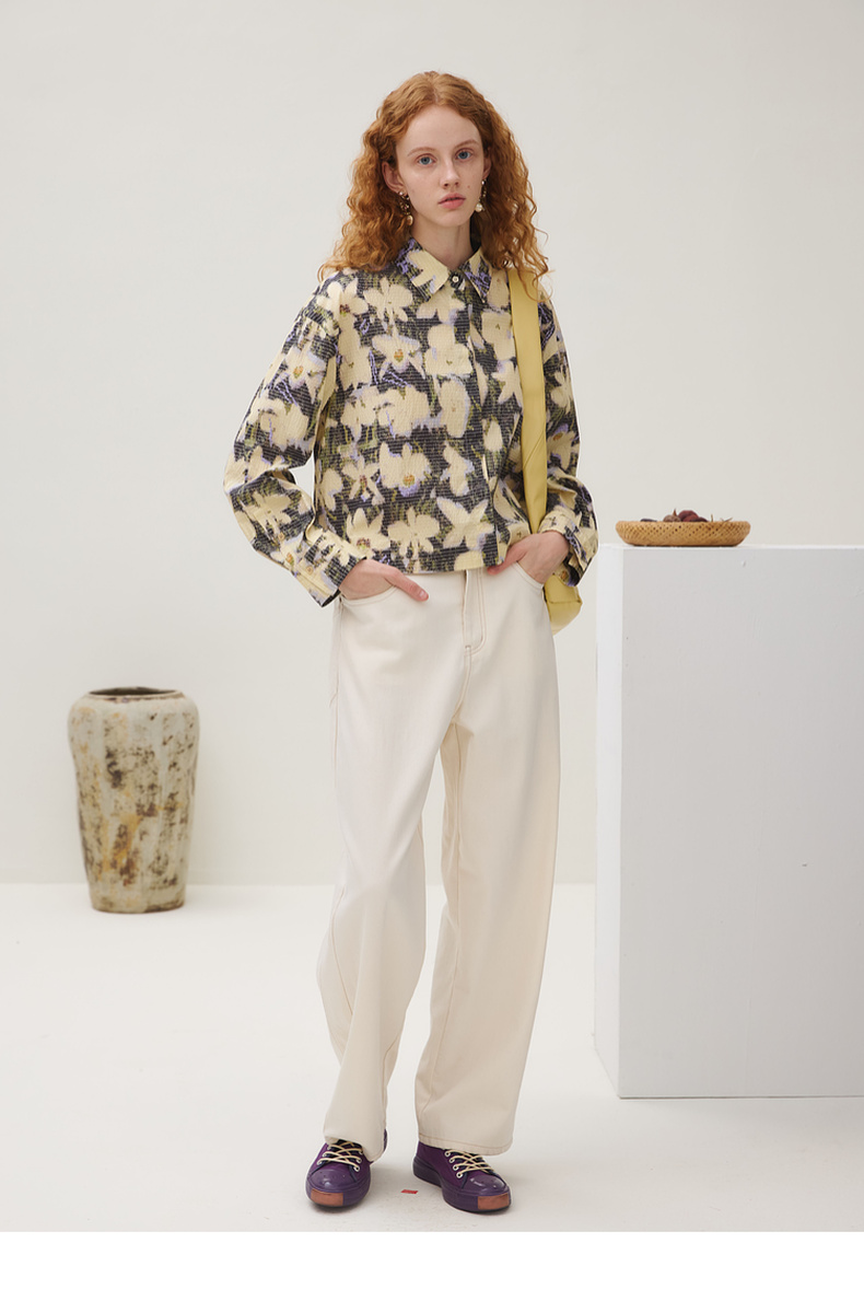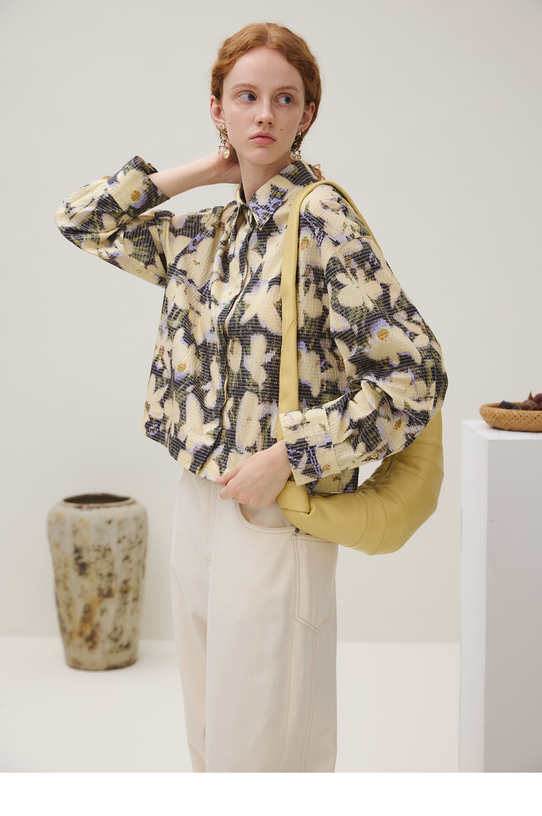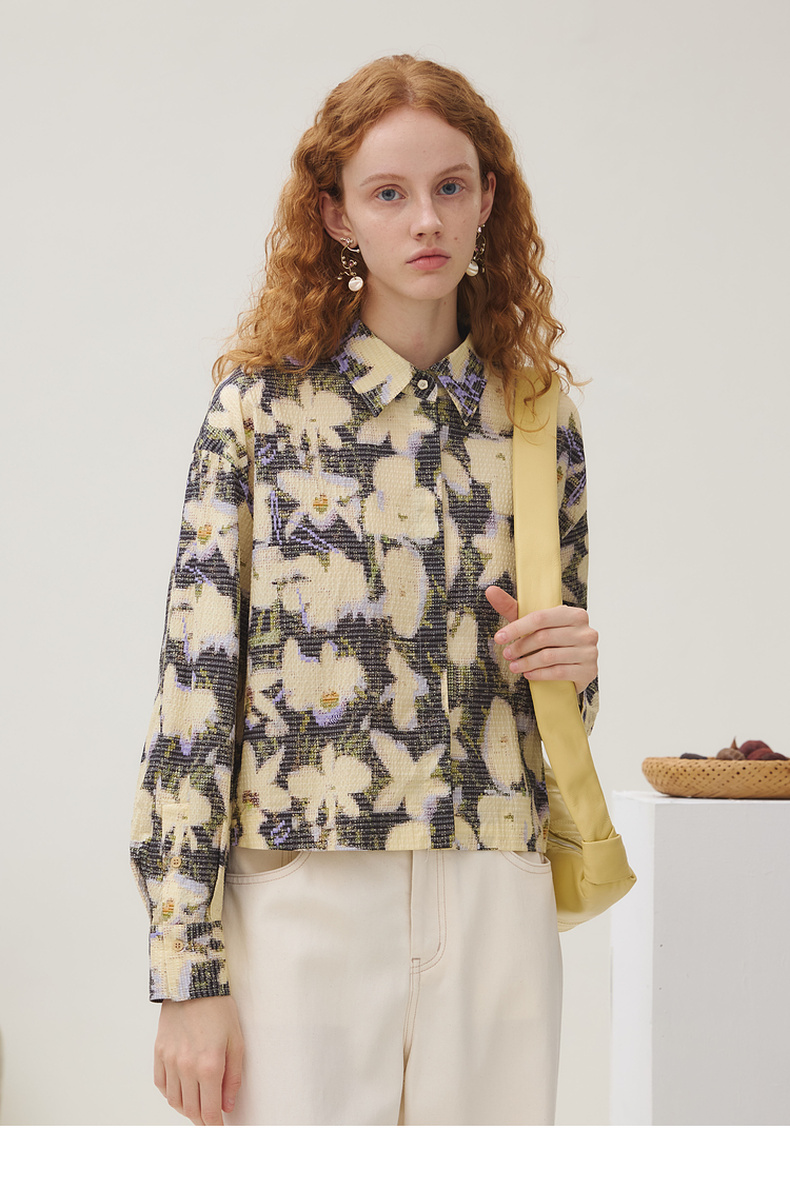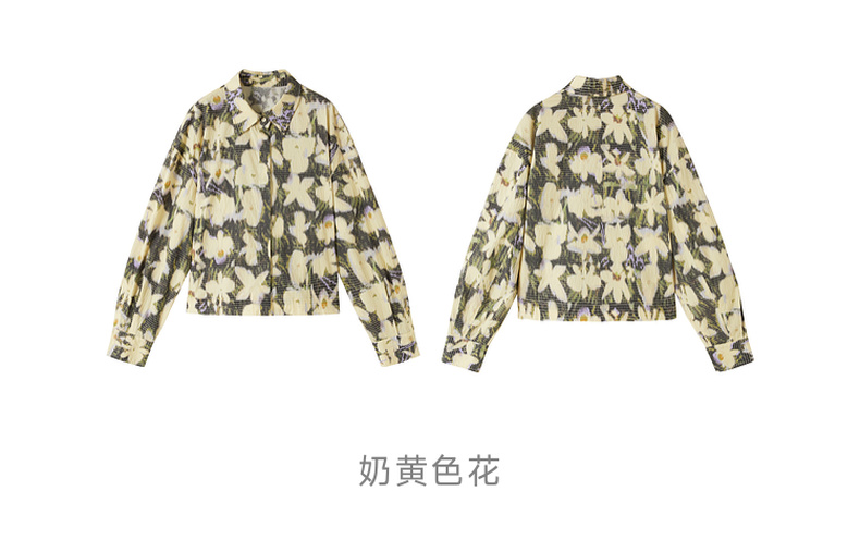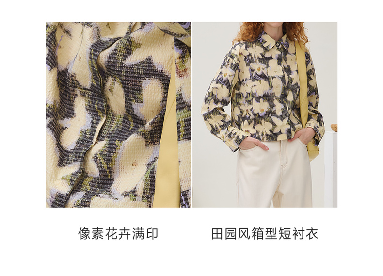 谜底衬衣长袖女2025秋季新品复古通勤短款原创印花衬衫253MC1025