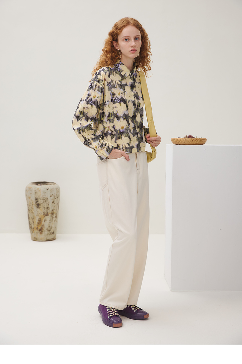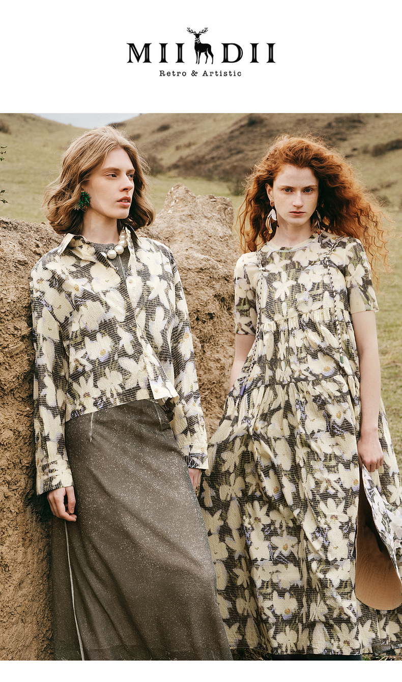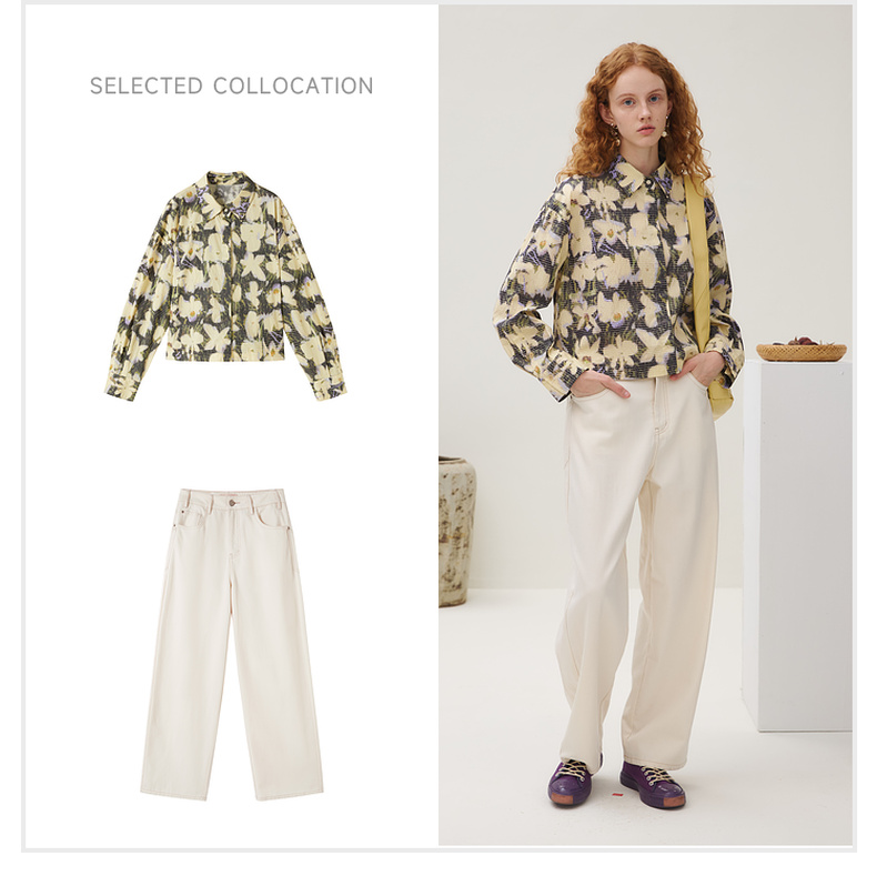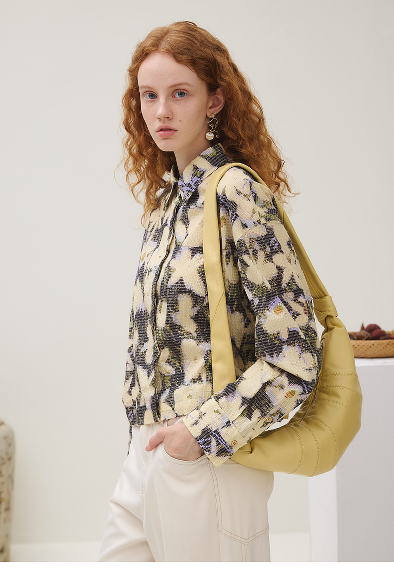 谜底衬衣长袖女2025秋季新品复古通勤短款原创印花衬衫253MC1025