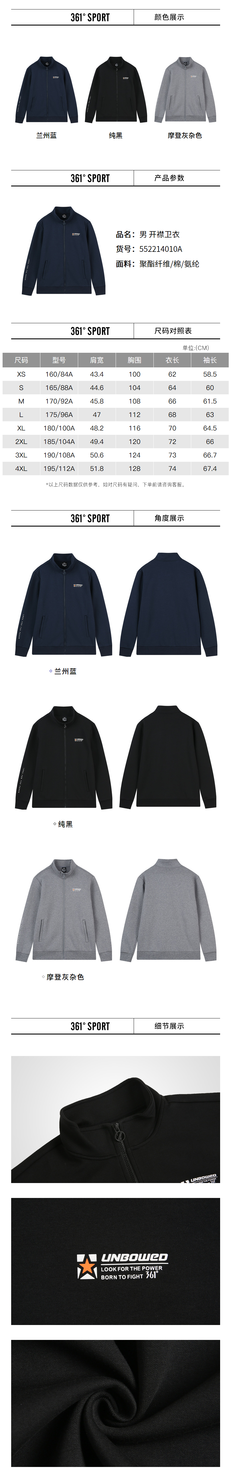 361度运动卫衣男士立领2022春开襟卫衣休闲上衣运动外套552214010A
