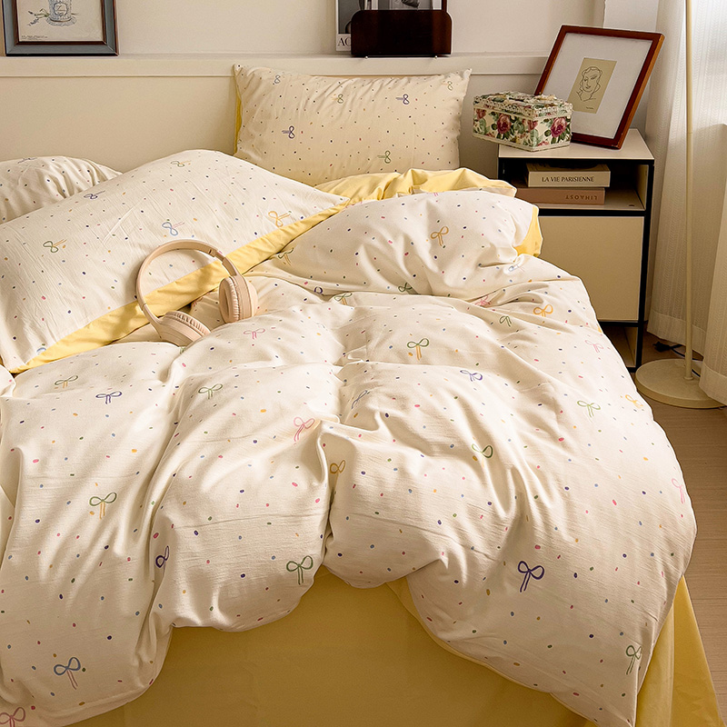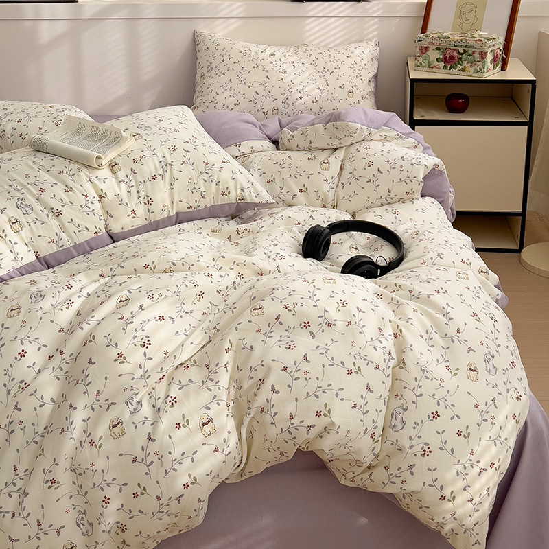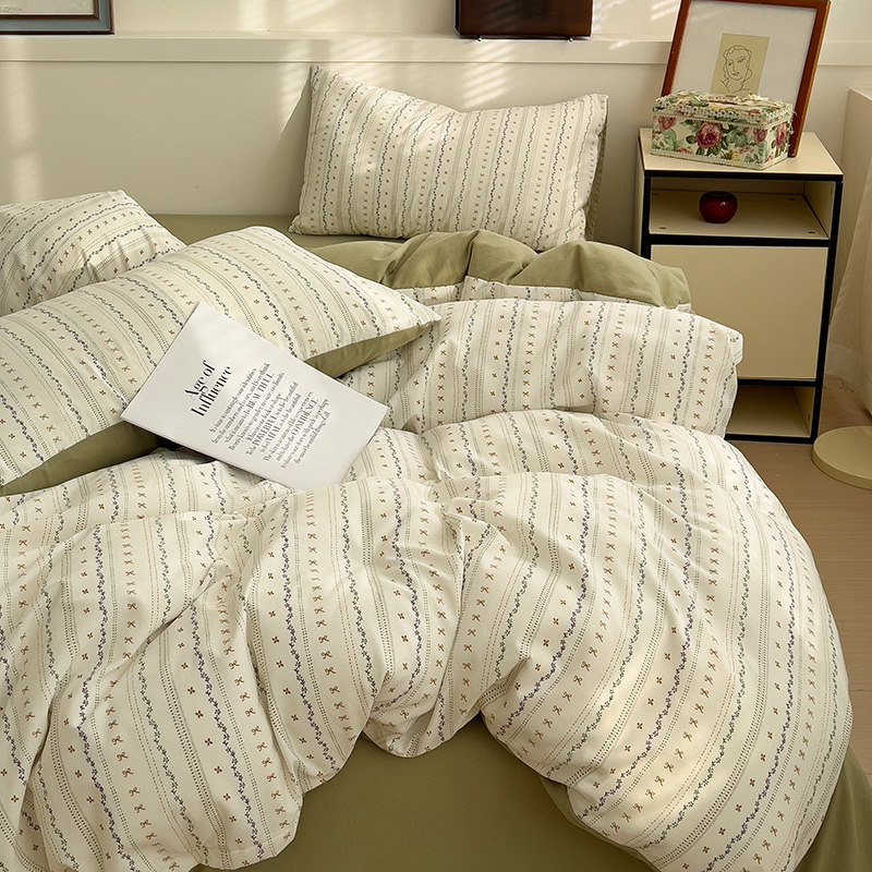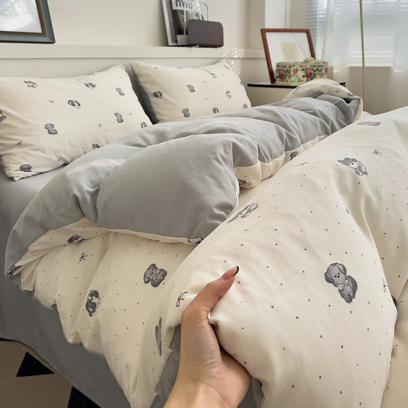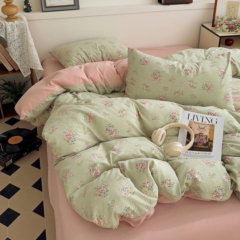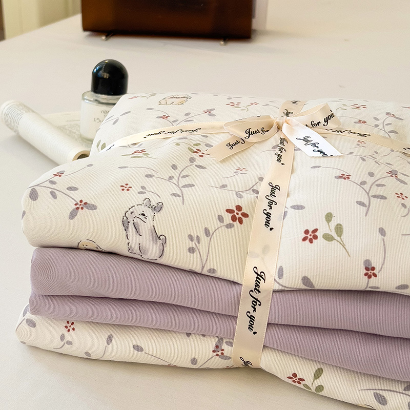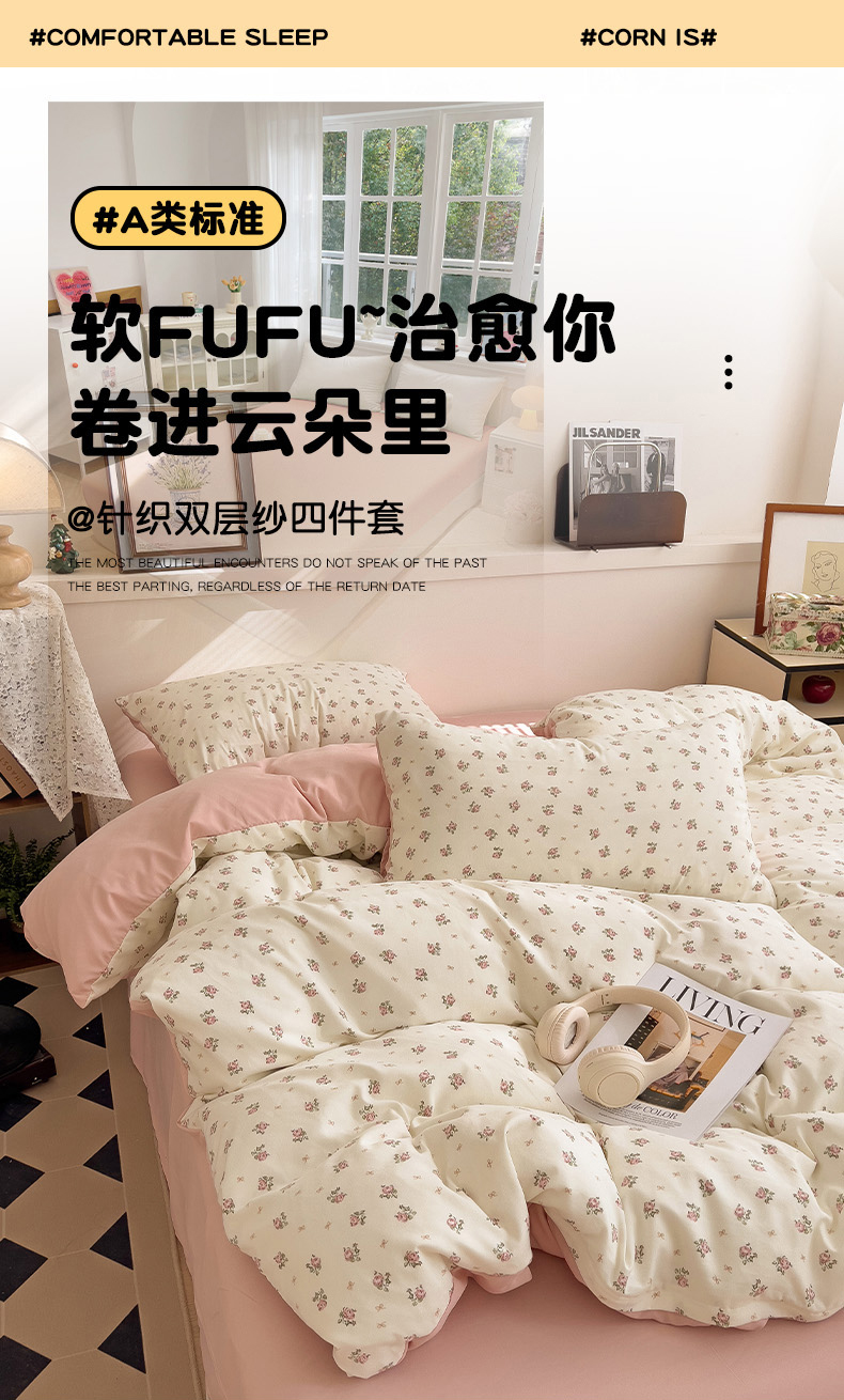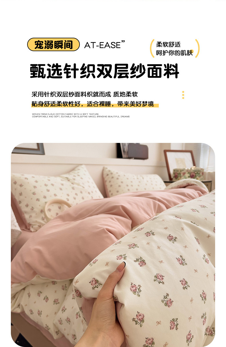 春款 首选 最新16款可选 【A类有氧针织双层纱磨毛四件套】 韩国客订面料 | 环保印染 | 不易静电 ✅高克重优质精梳纱线,双股针织织造🧶 ✅环保活性印染,机洗晾后不硬不黄无异味 ✅无甲醛荧光剂,健康环保,大人小孩安心用