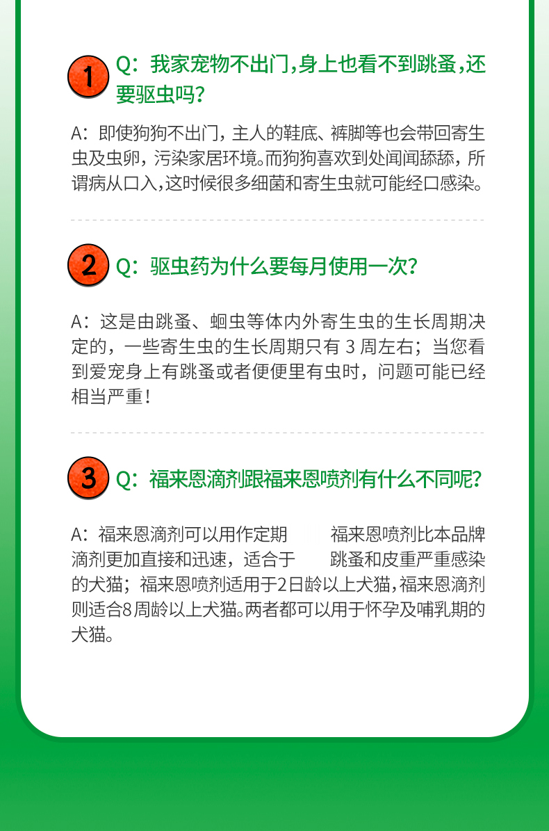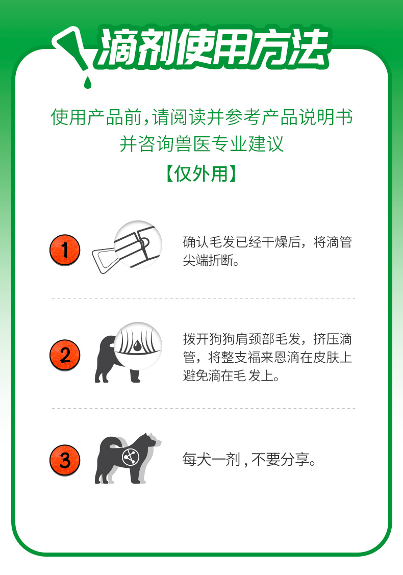 福来恩 狗狗体外 小型犬 中型犬 大型犬 每月一支!3支/盒 原装有防伪