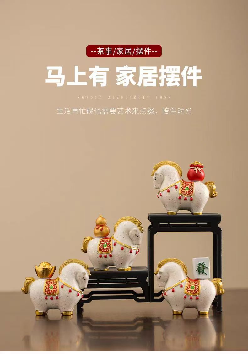 新中式马上有钱马到成功创意马摆件茶宠装饰品开业礼物茶桌摆件