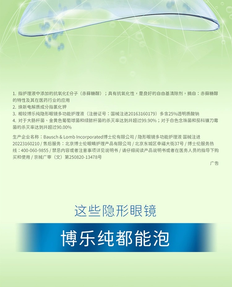 【新品保湿升级 】博士伦博乐纯臻润第五代隐形近视眼镜护理液美瞳药水博乐纯Pro保湿升级