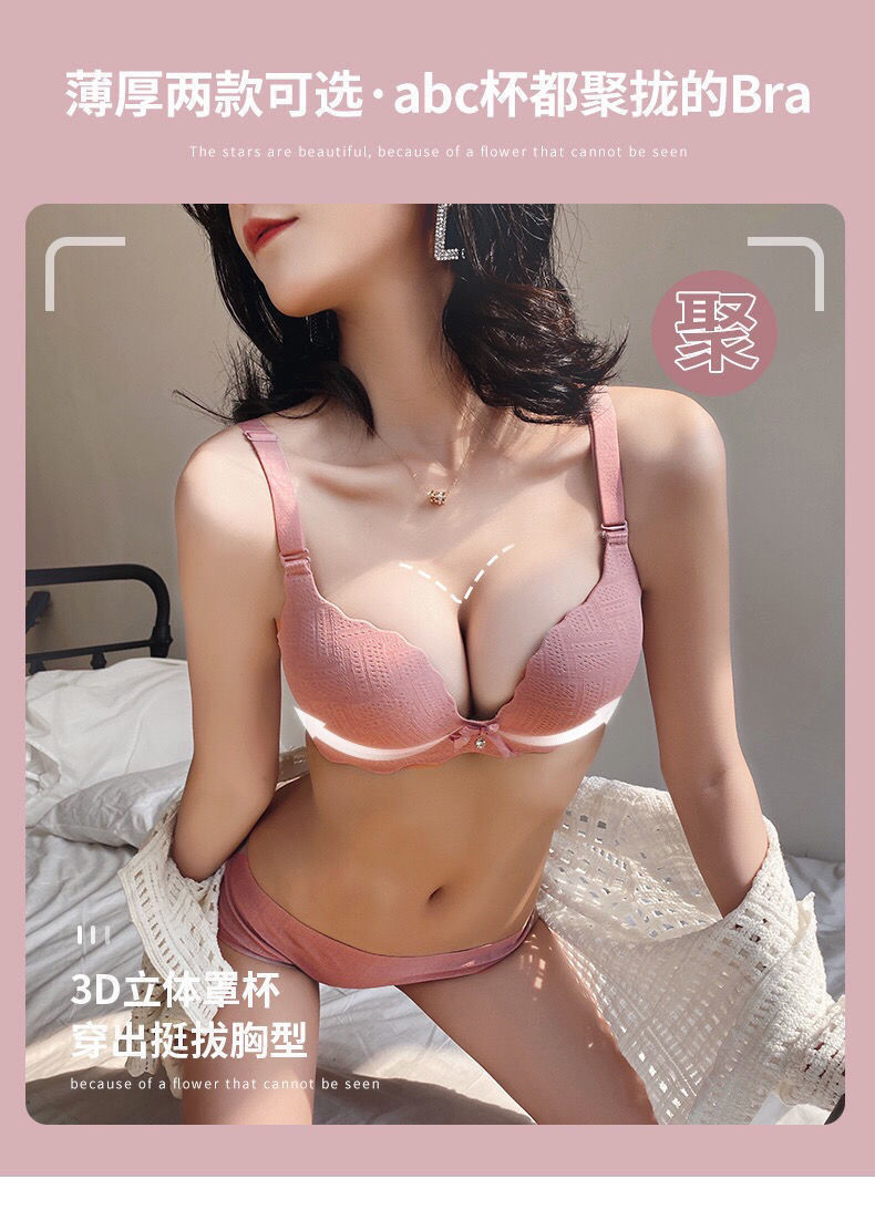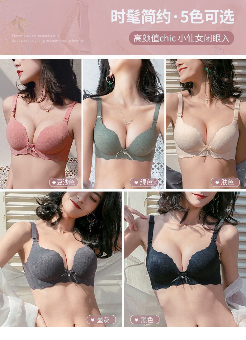 【新款5色单件文胸 第二件0元任选!】时髦简约一片式内衣女小胸平胸显大性感调整型收副乳无痕无钢圈文胸罩