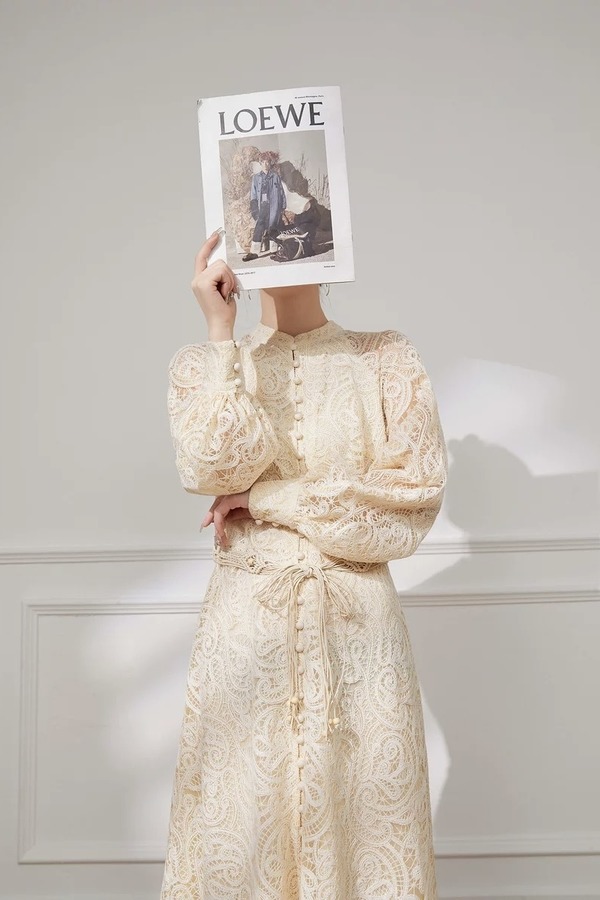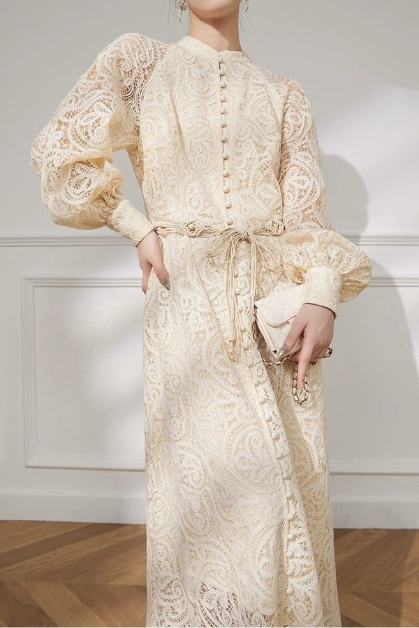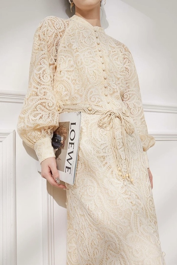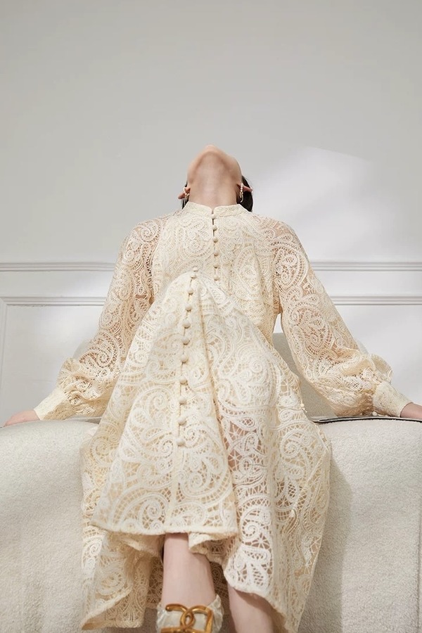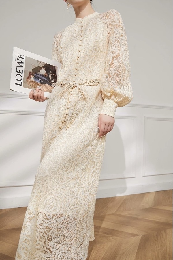 Le Malene 花纹镂空优雅气质连衣裙 21124