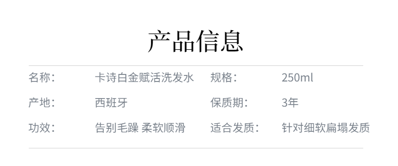 【自营】 卡诗 白金赋活丰盈洗发水 250ml