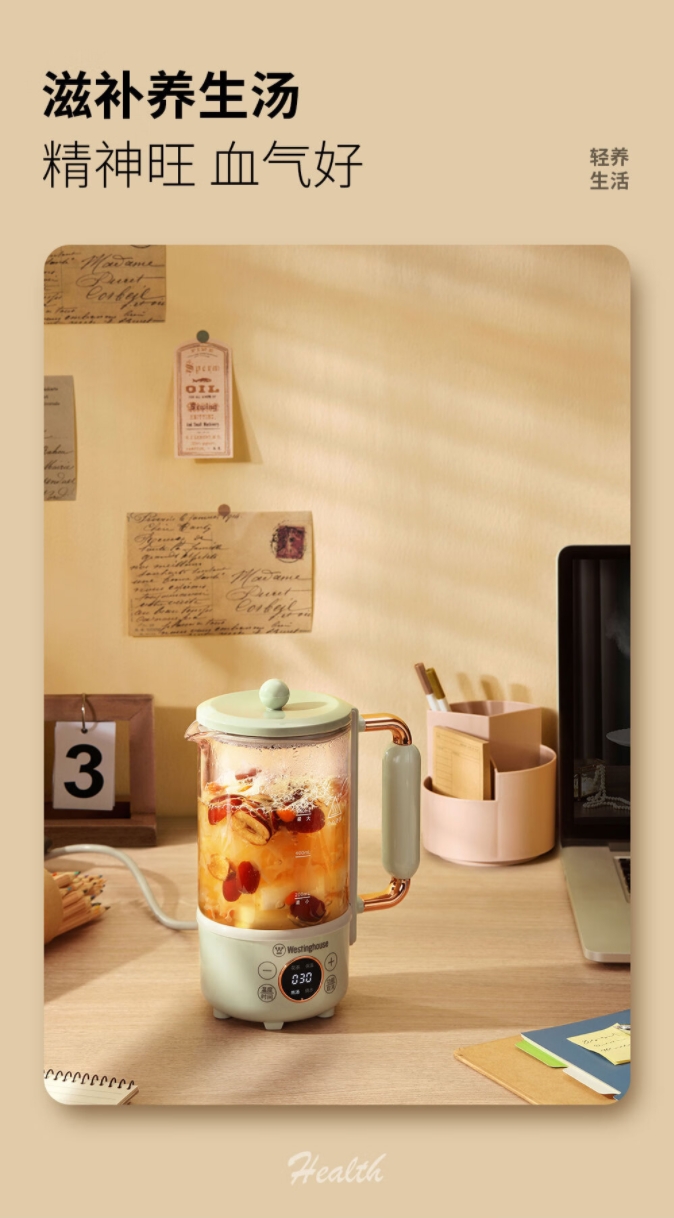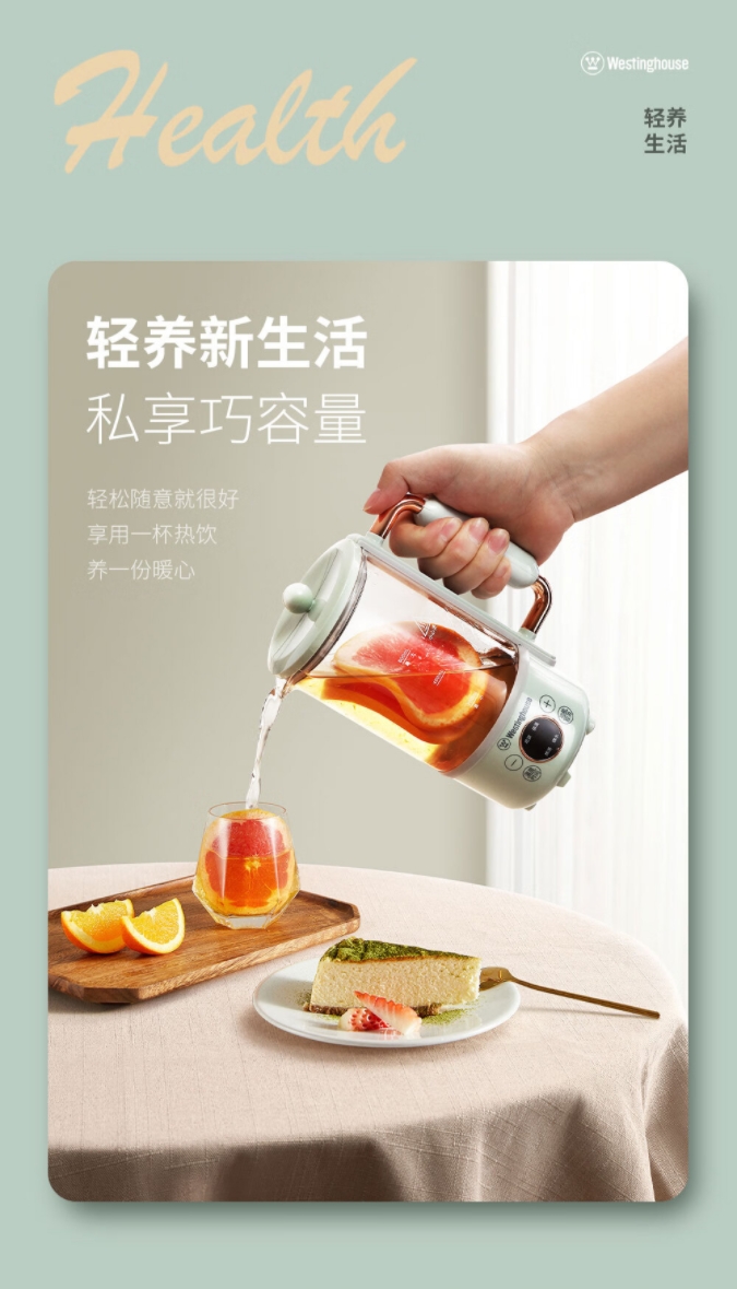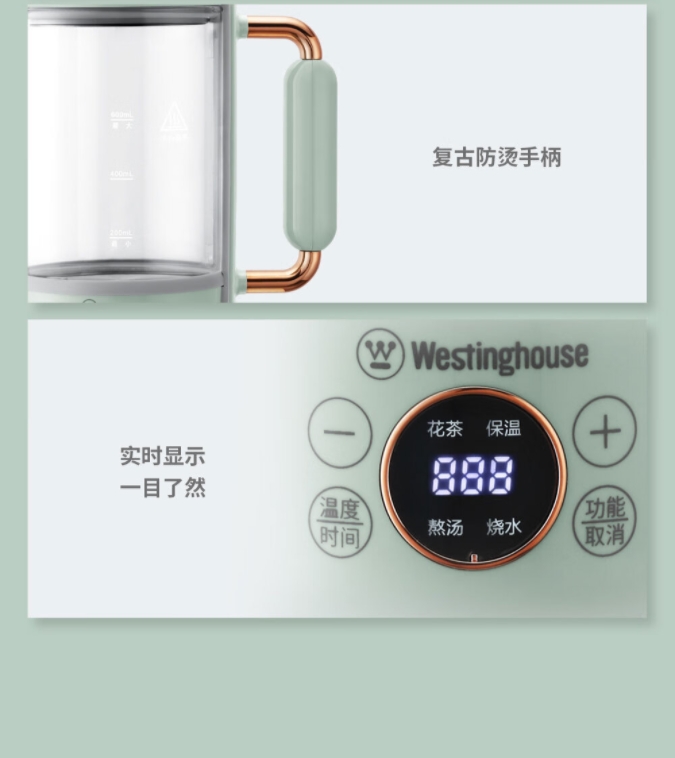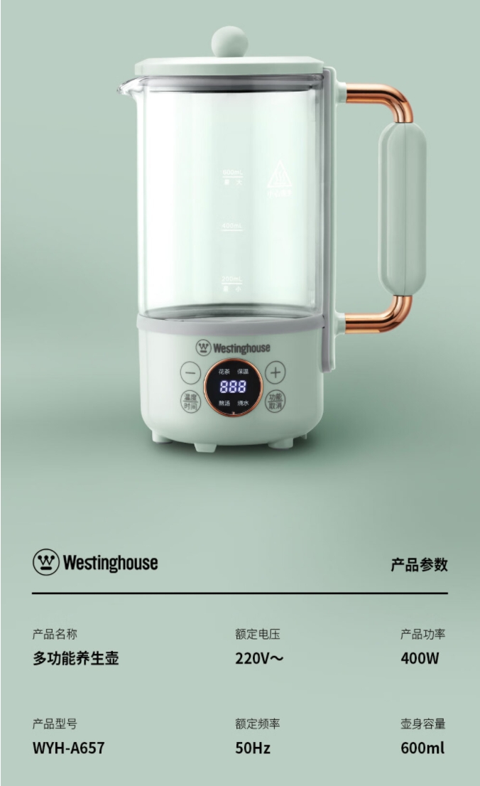 【美国西屋0.6升养生壶】Westinghouse西屋养生壶电水壶迷你养生杯办公室便携一体式保温煮茶器热水壶0.6L