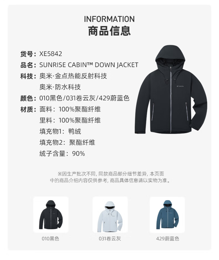 哥伦比亚男式休闲防水羽绒外套XE5842