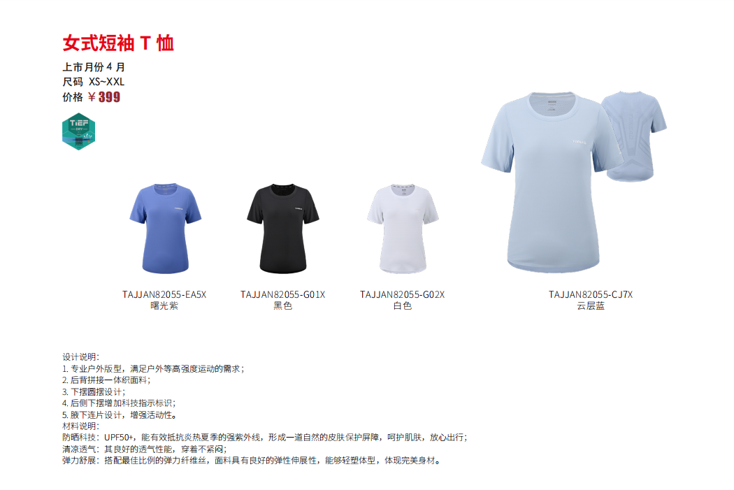 探路者女式功能短袖T恤TAJJAN82055