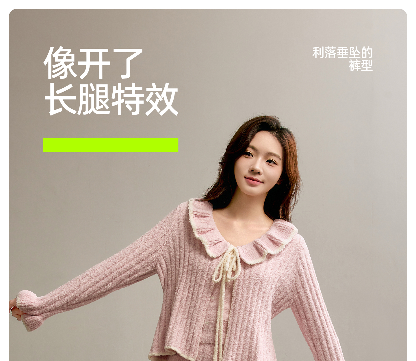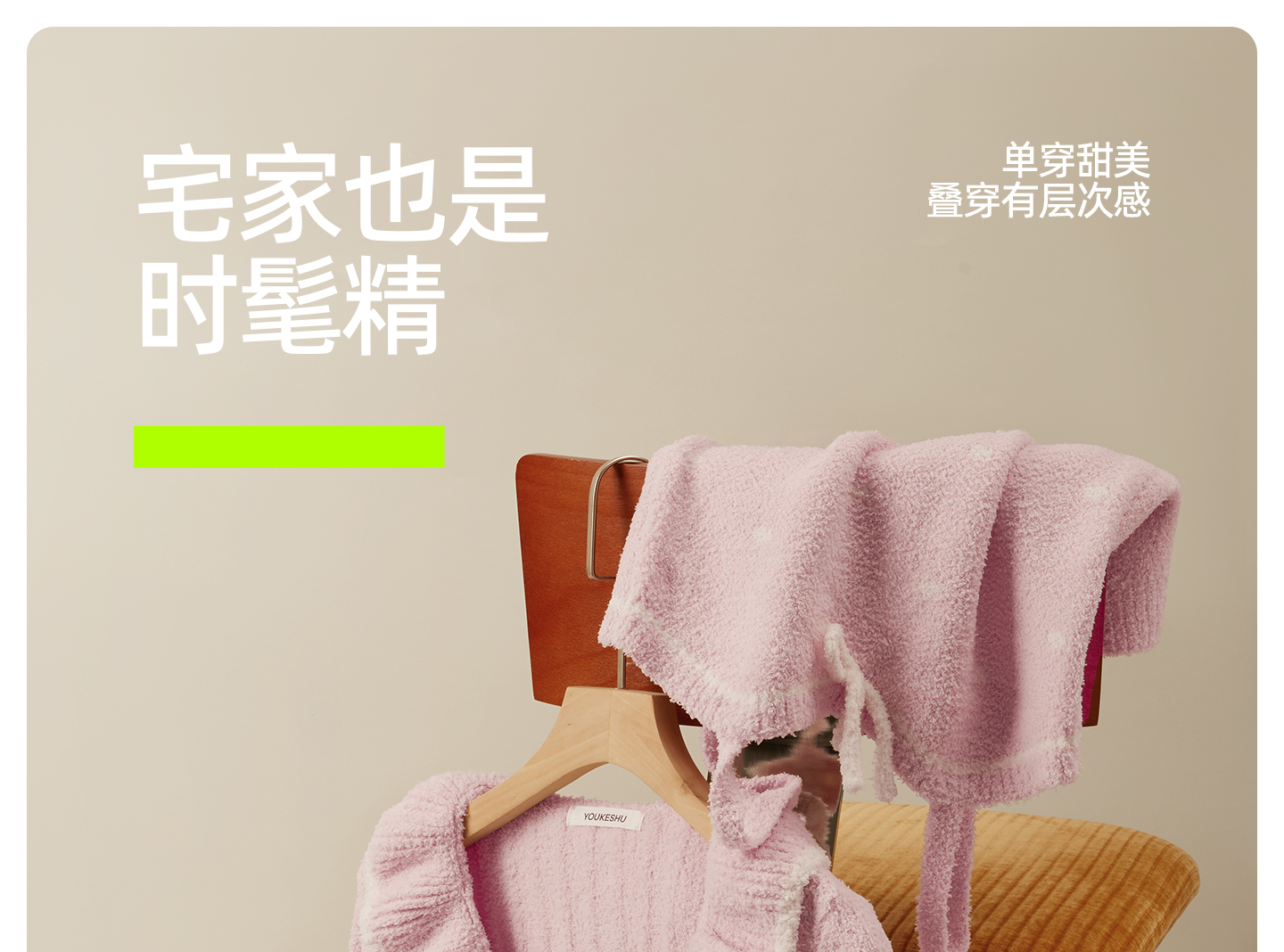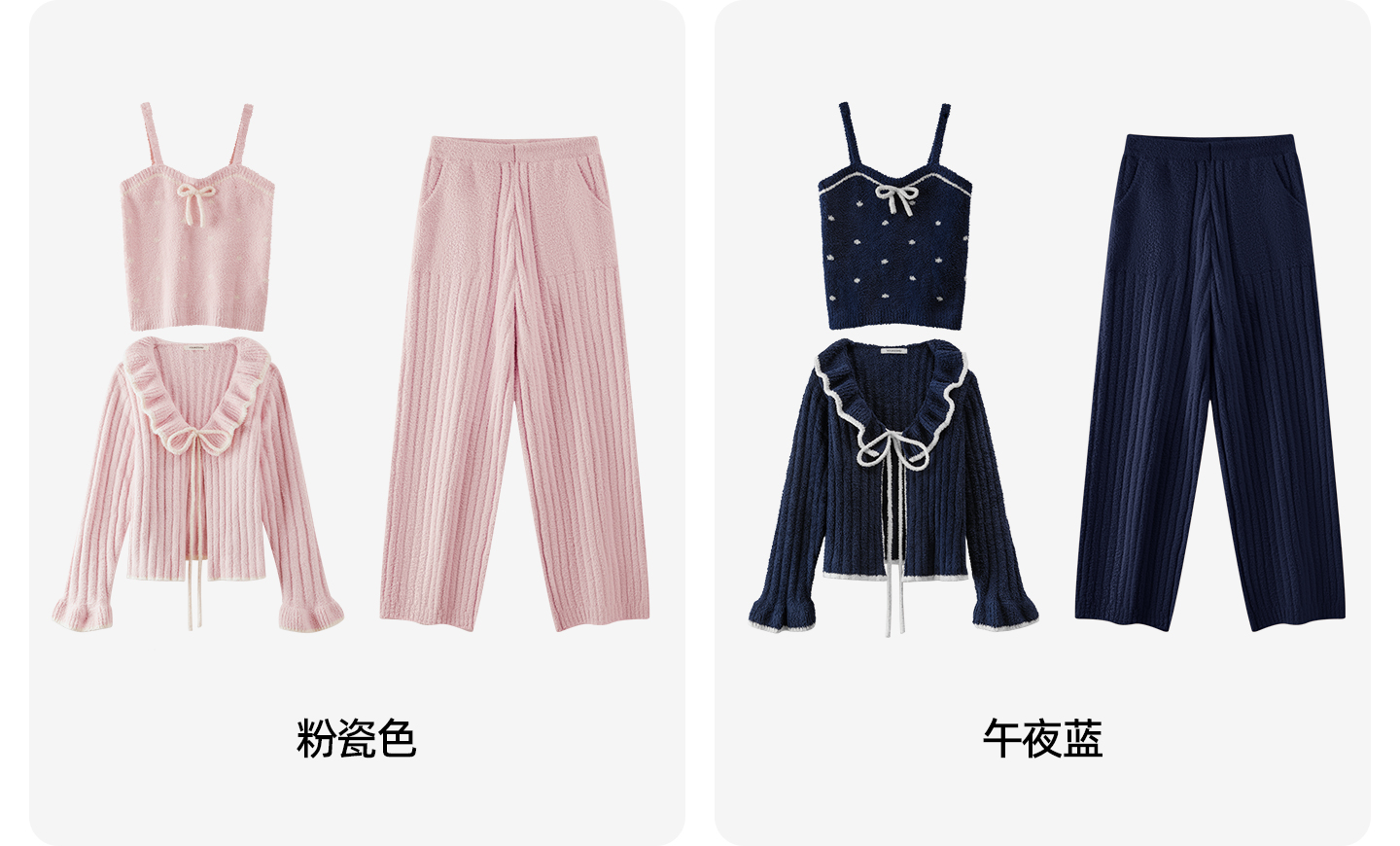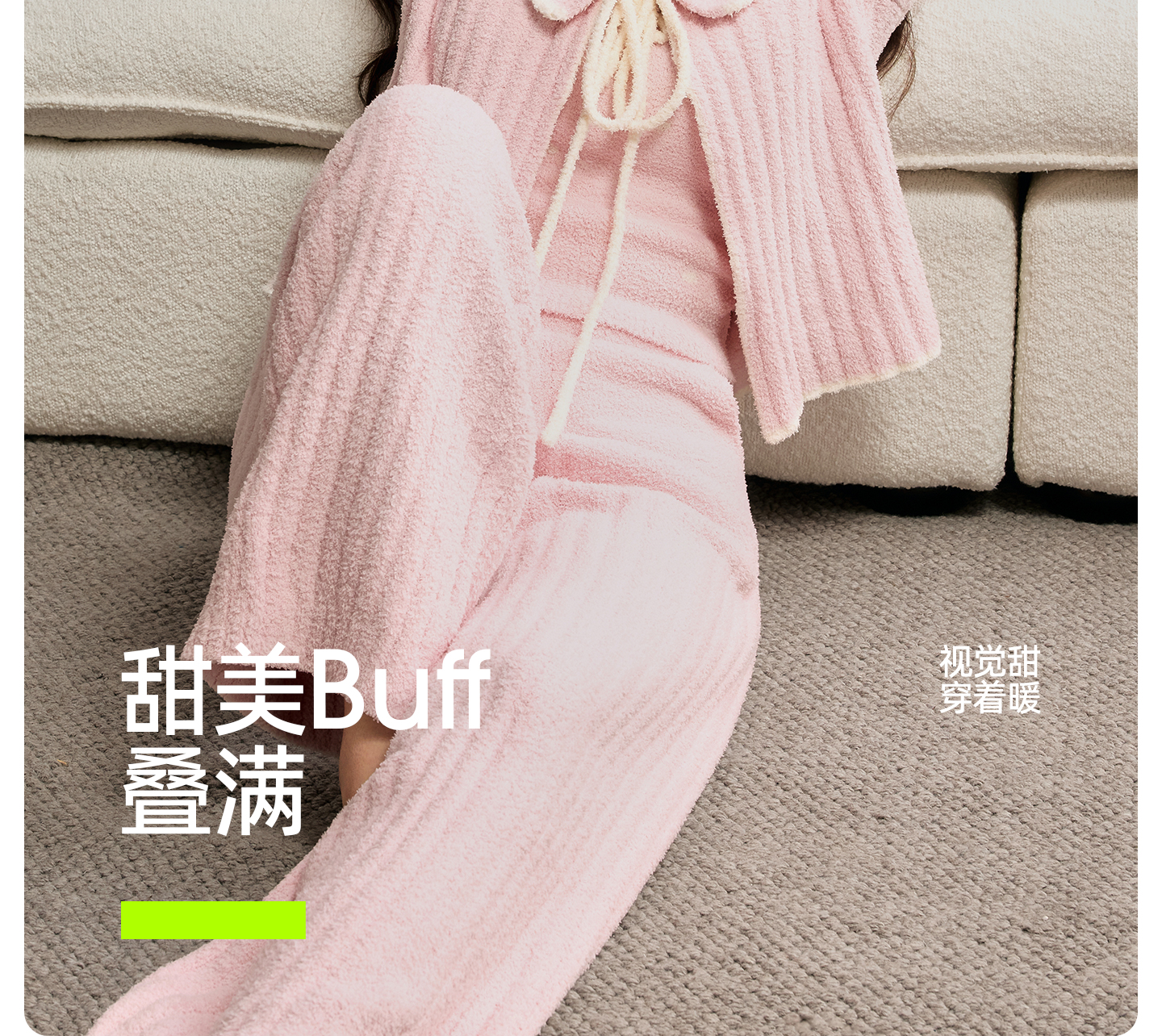 有棵树女士睡衣半边绒三件套吊带睡衣套装可爱甜美风睡衣女款-J8001