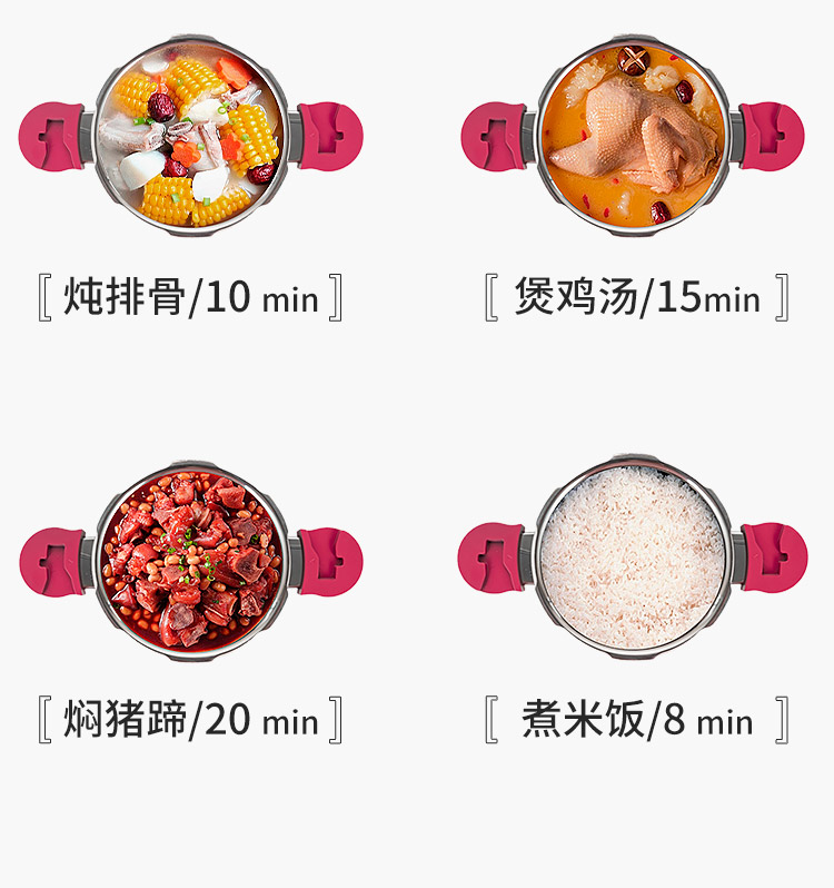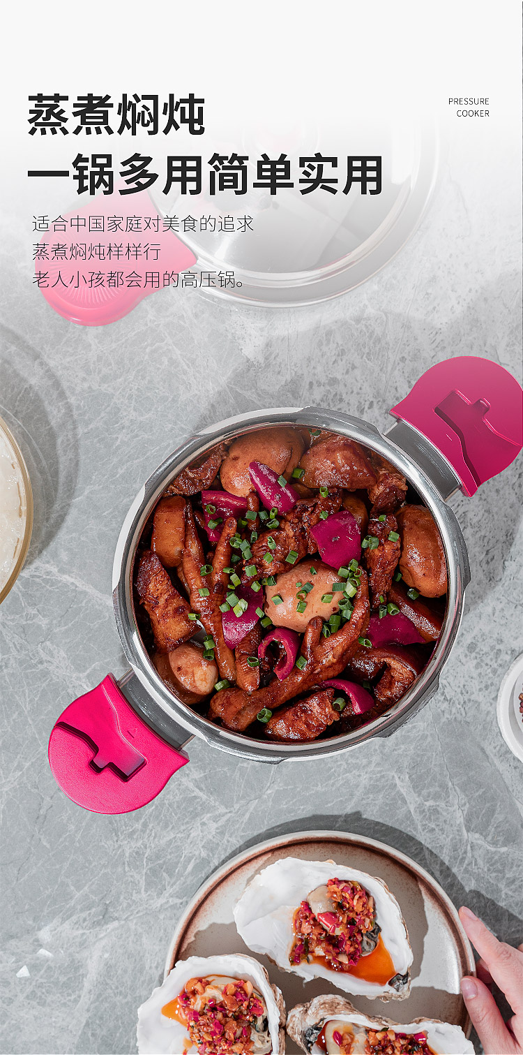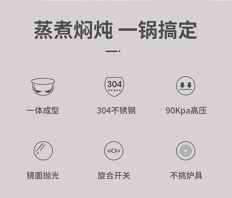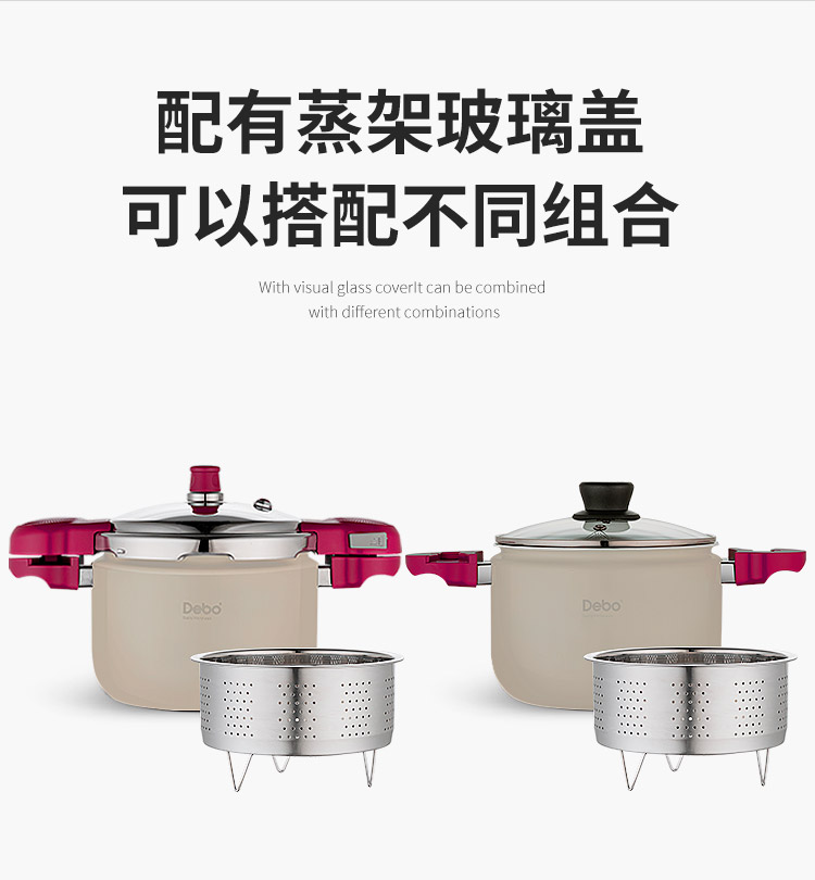 配置:锅盖*1、气阀*1、胶圈*2、锅身*1、玻璃盖*1、篮子*1