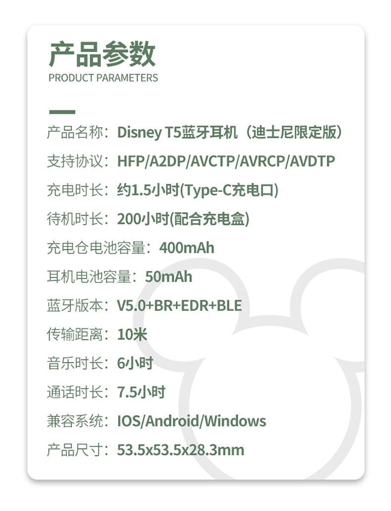 迪士尼无线蓝牙耳机T5