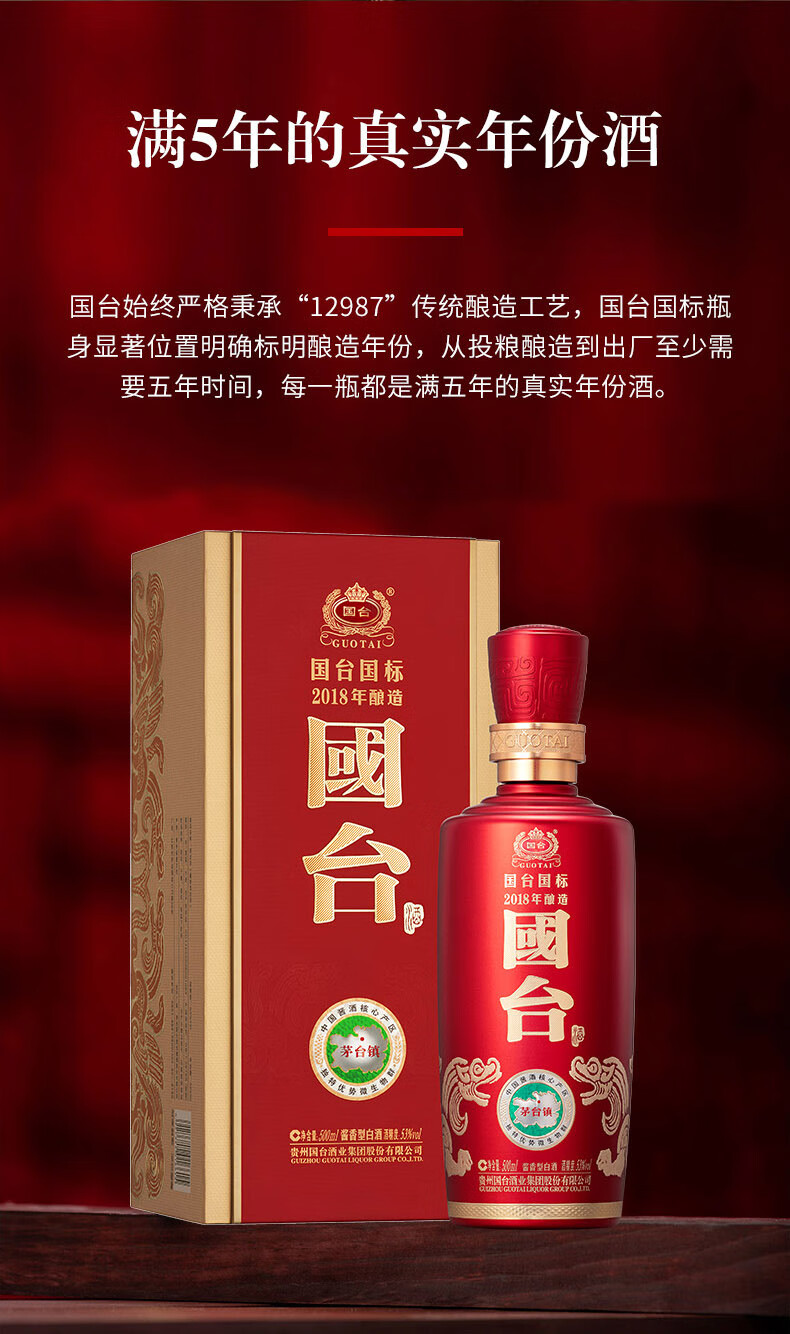 国台 国标2018年酿造 53度 500ml酱香型白酒500mL单瓶装