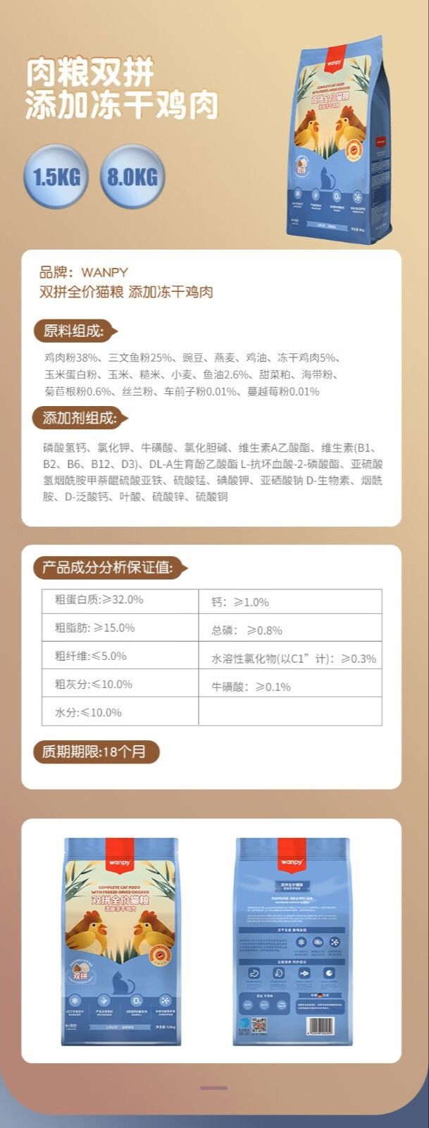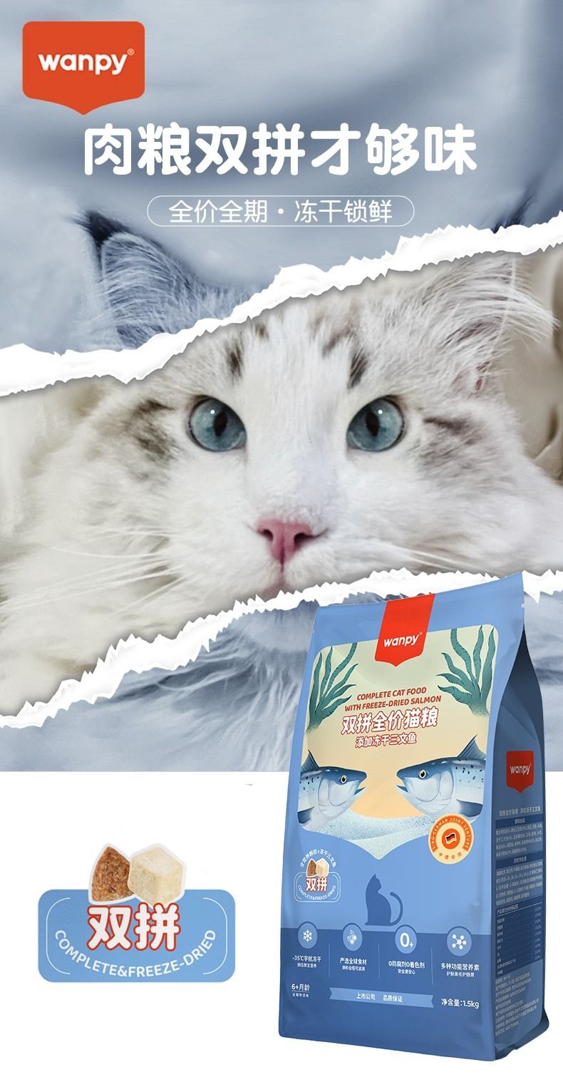 顽皮(Wanpy)猫粮冻干双拼粮全价全期猫咪主粮三文鱼鸡肉组合1.5kg