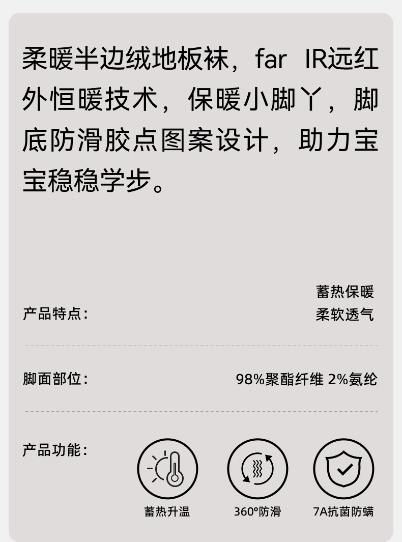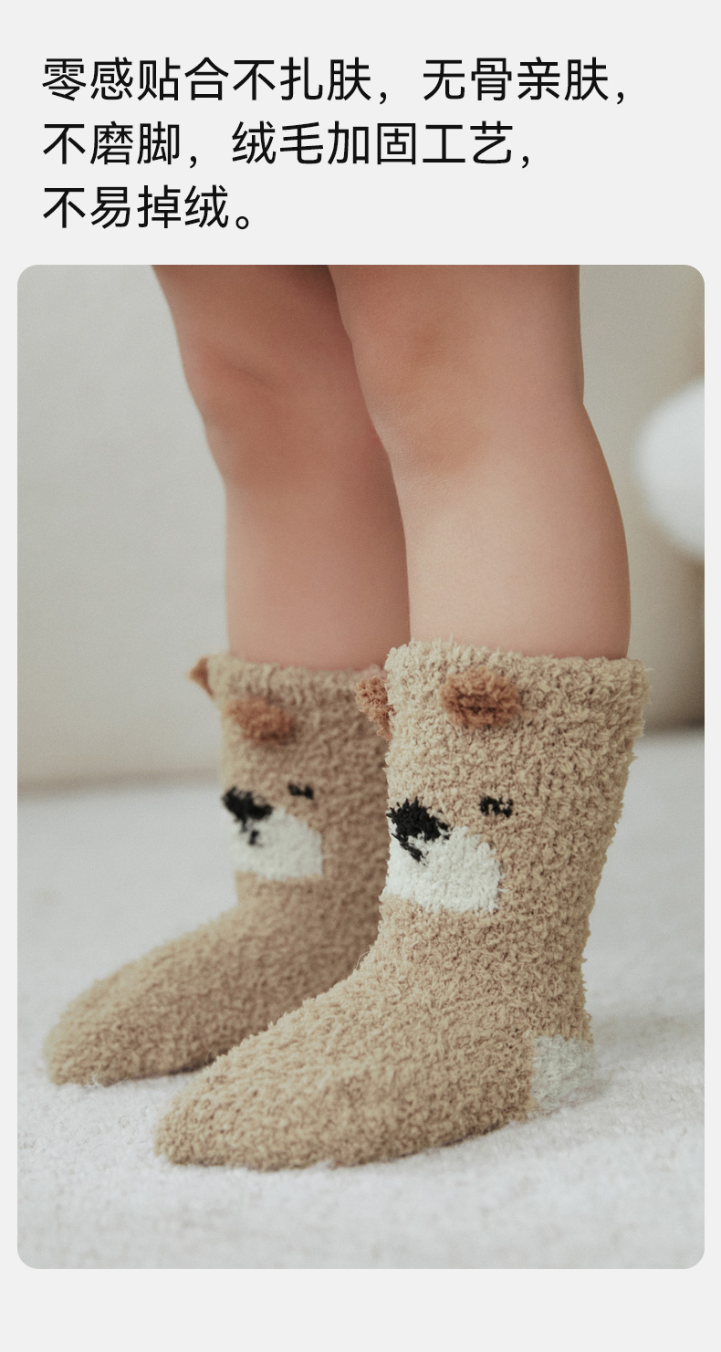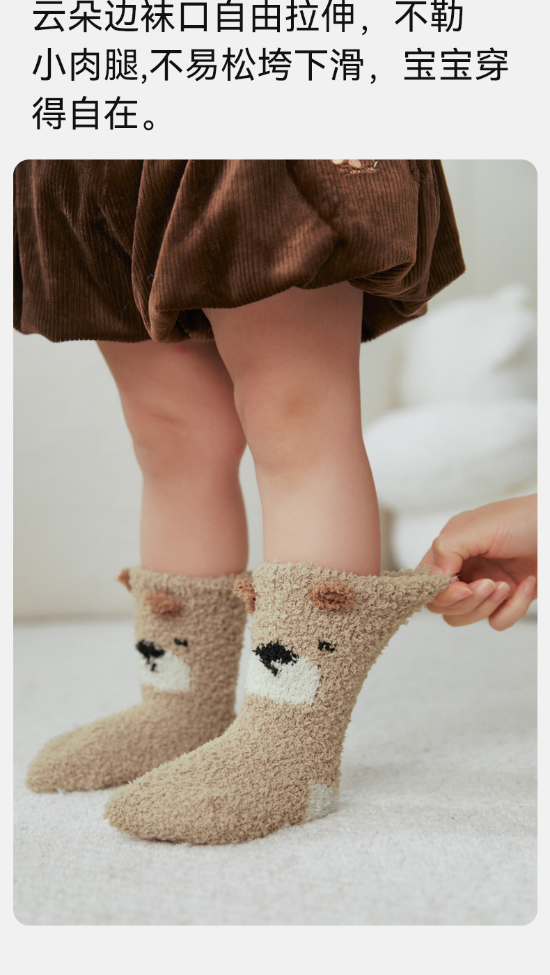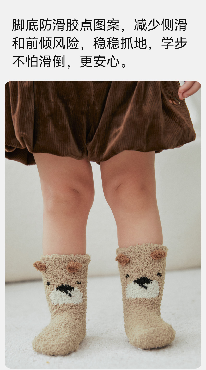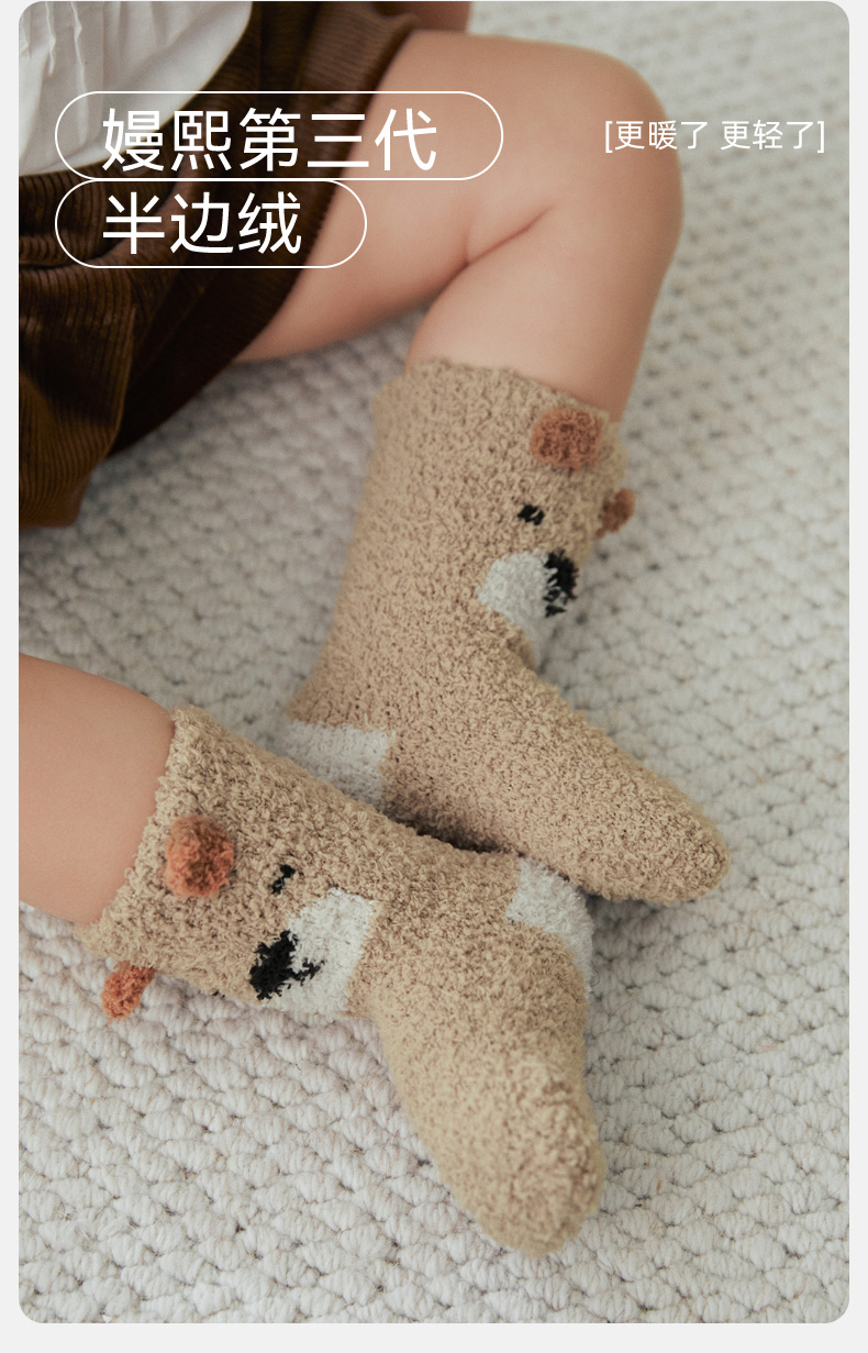 【婴童服配】嫚熙儿童袜子秋冬款半边绒地板袜男女童宝宝婴儿春秋可爱防滑袜子