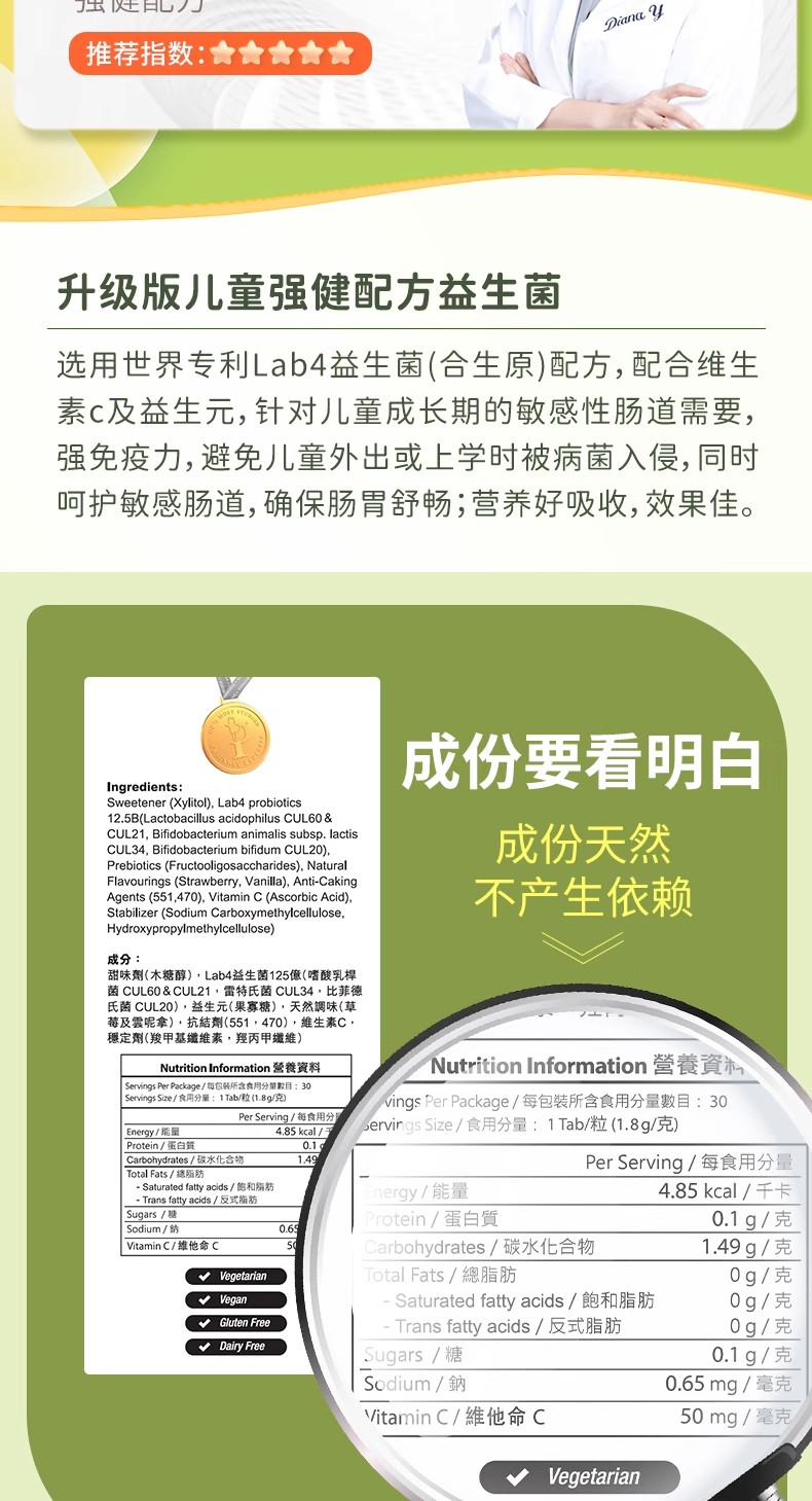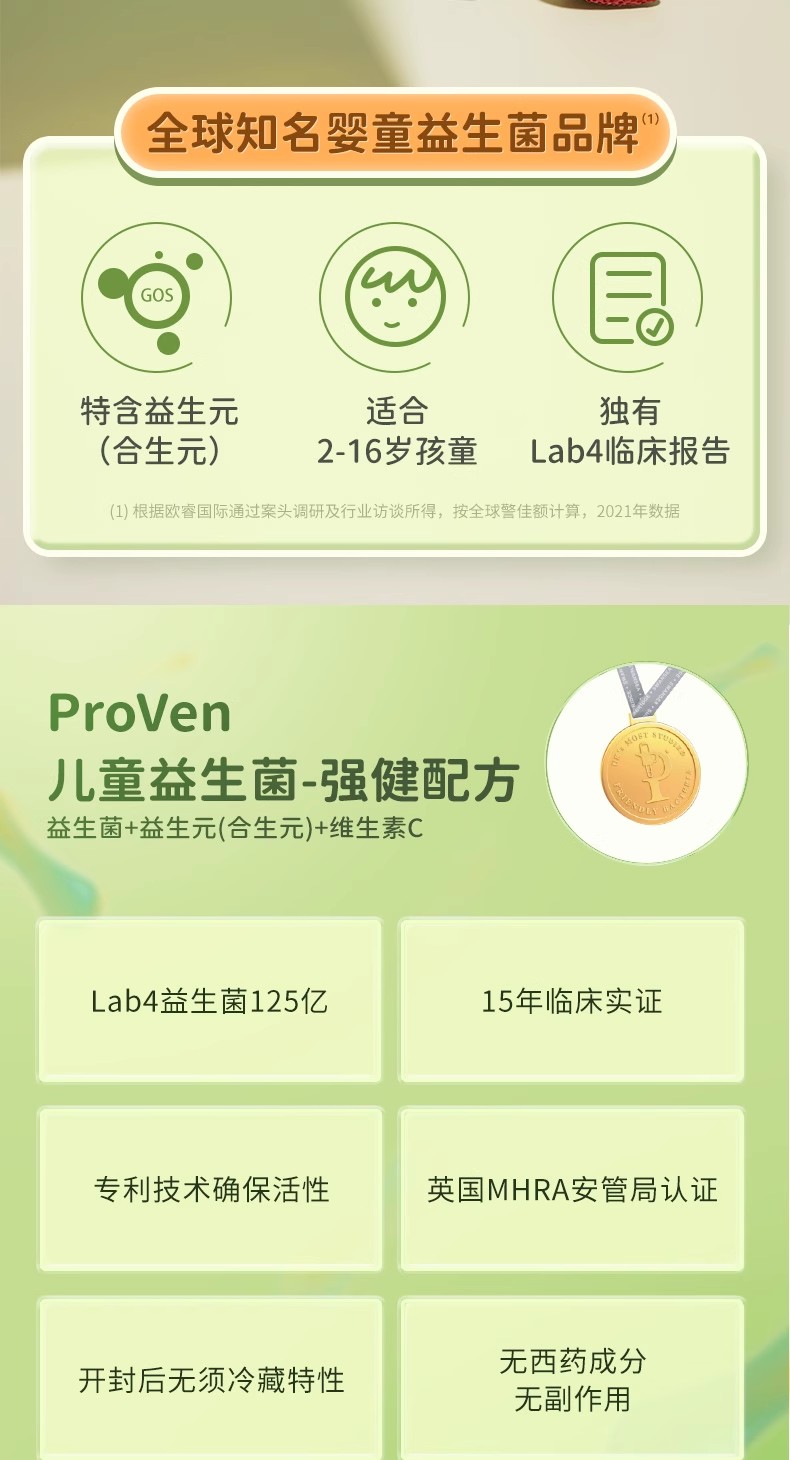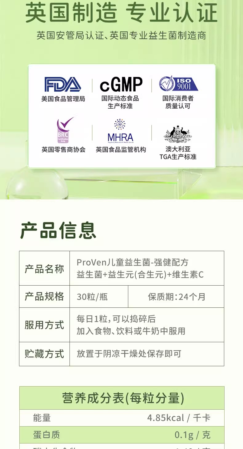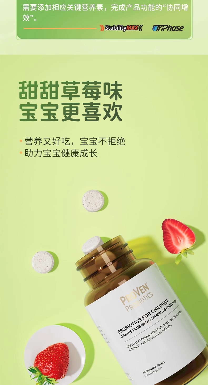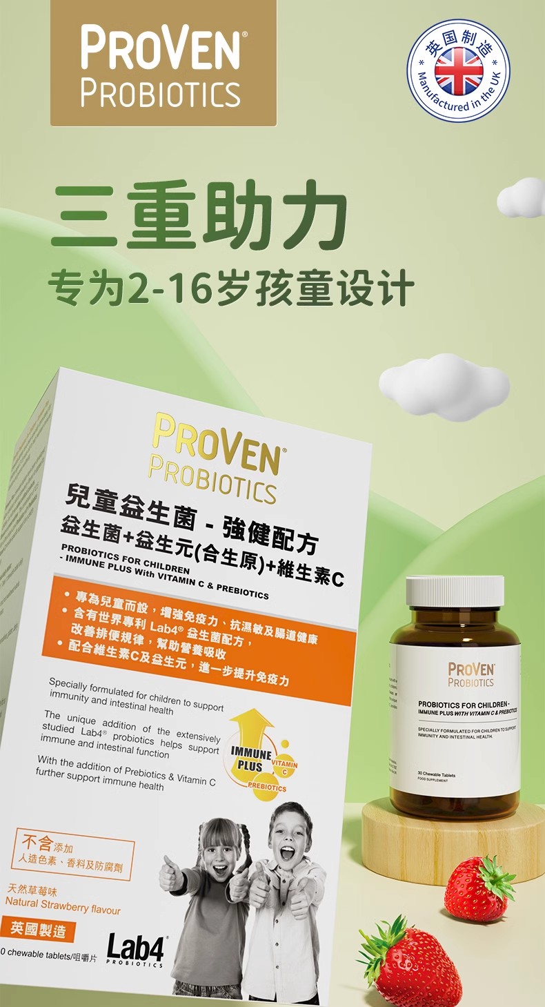 朴若芬PROVEN 普若芬儿童益生菌强健配方+益生元(合生原)+维生素C 30粒