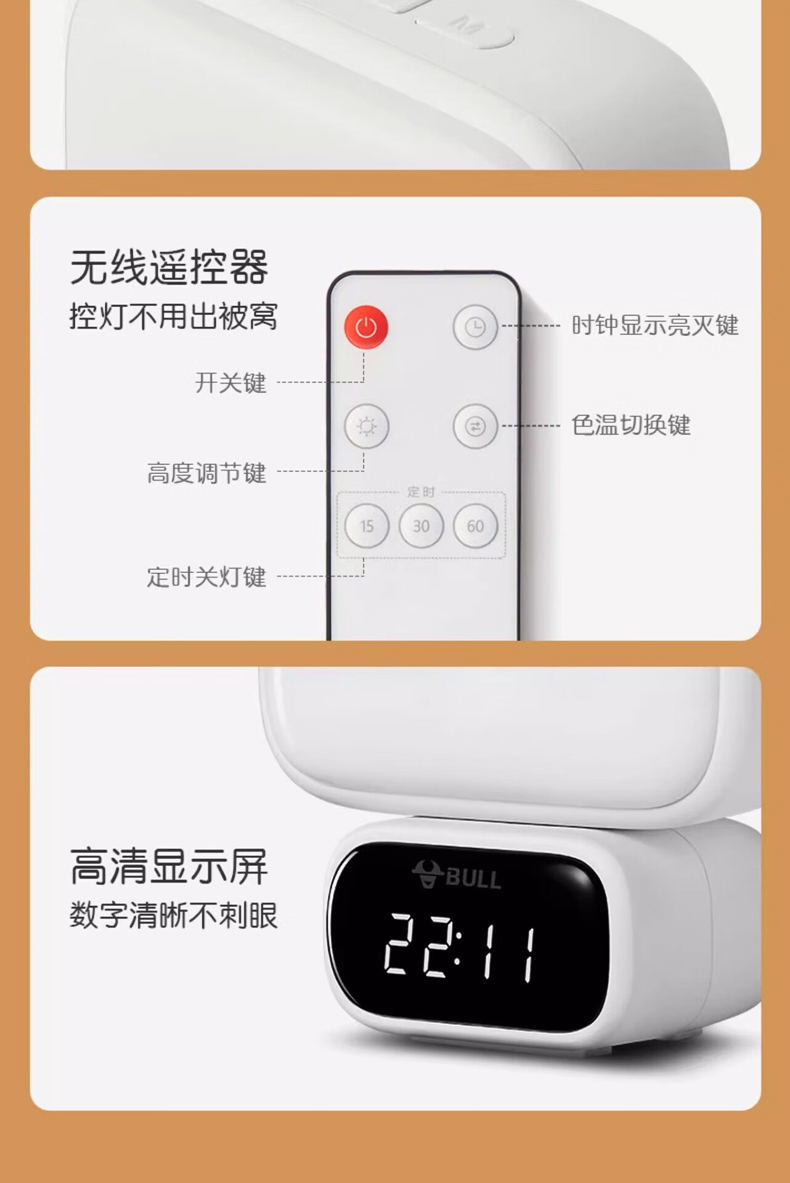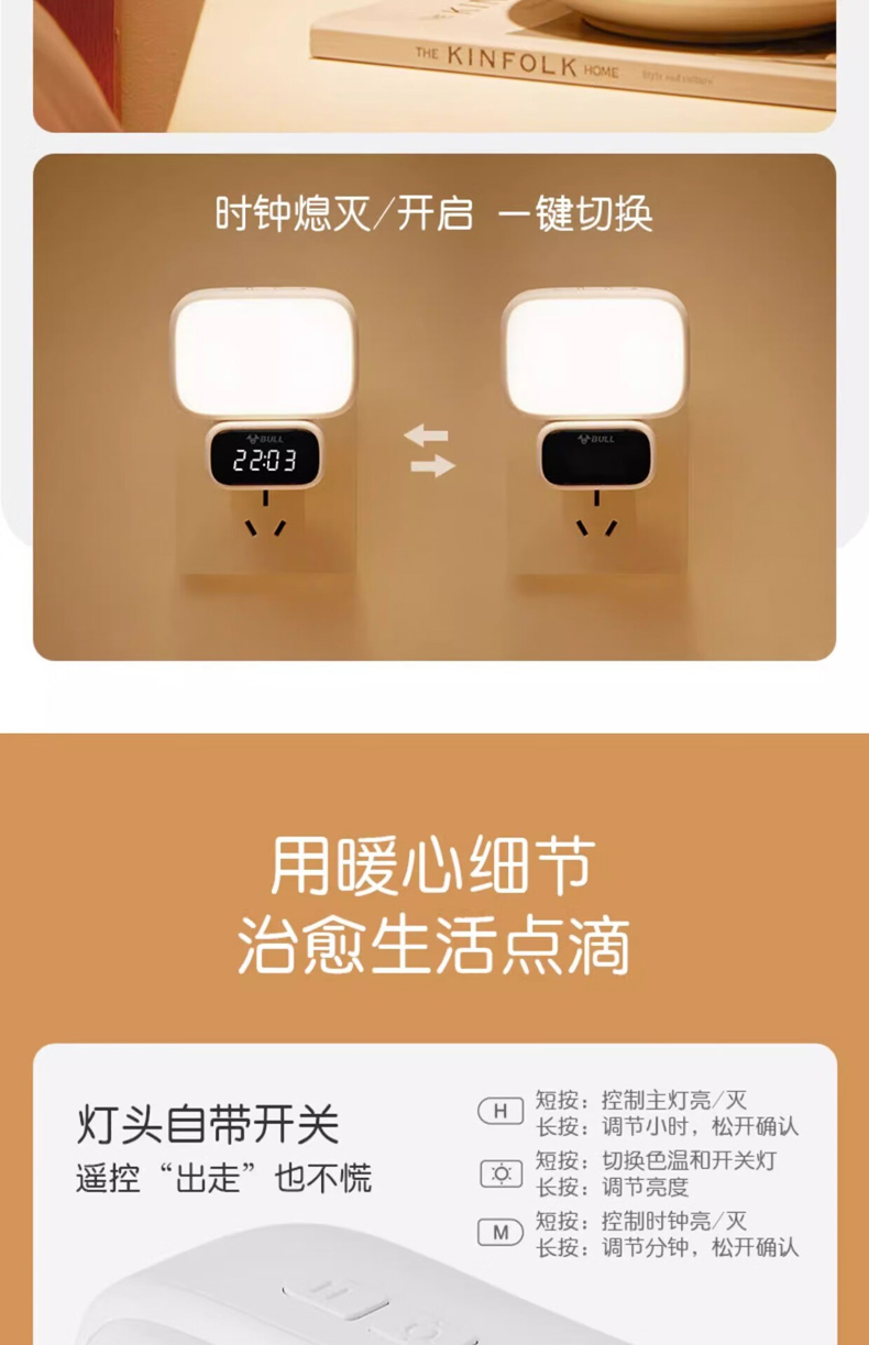 【自营】 公牛 BULL 时钟 夜灯 三色调光 插电遥控款夜灯 无可视频闪