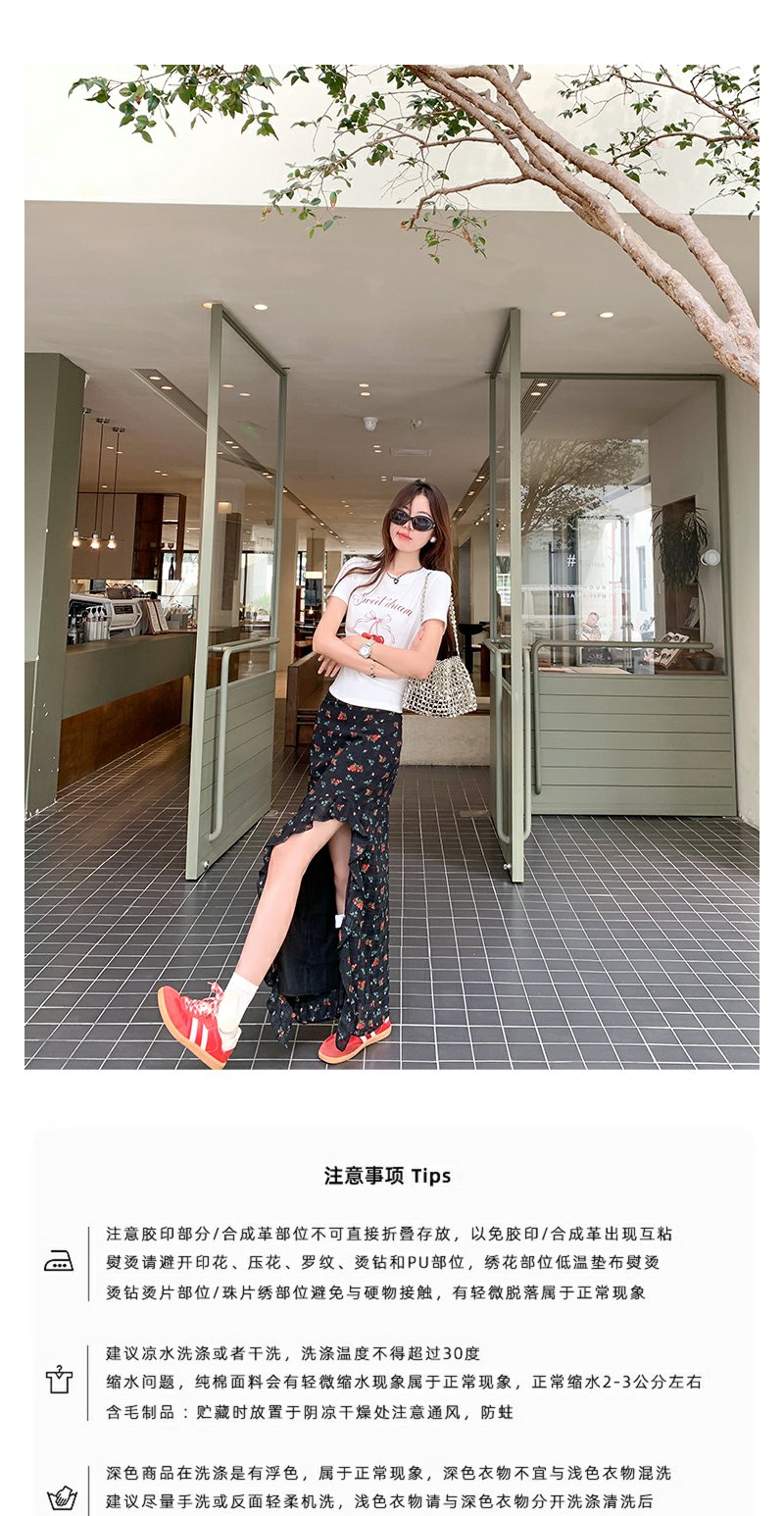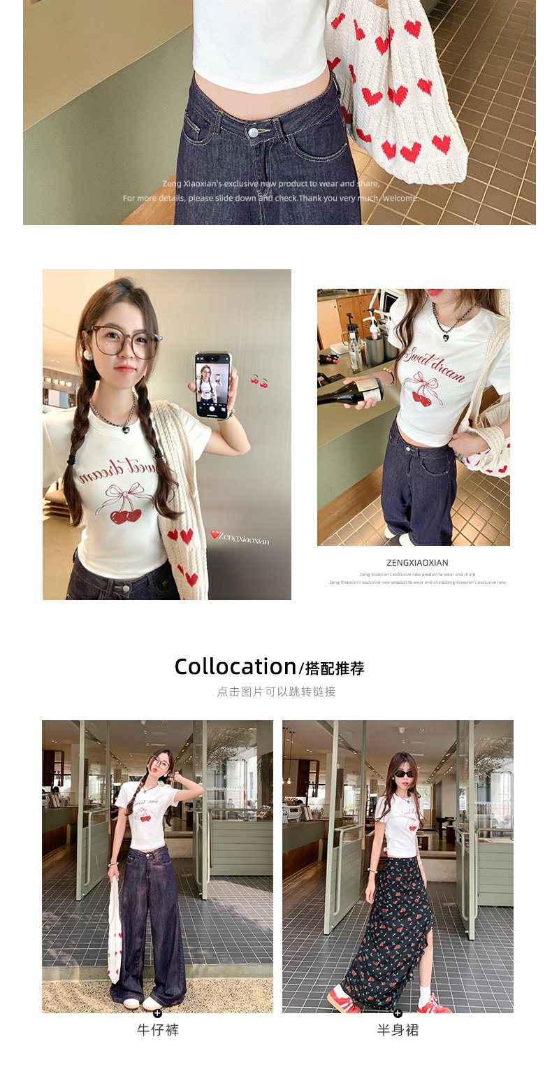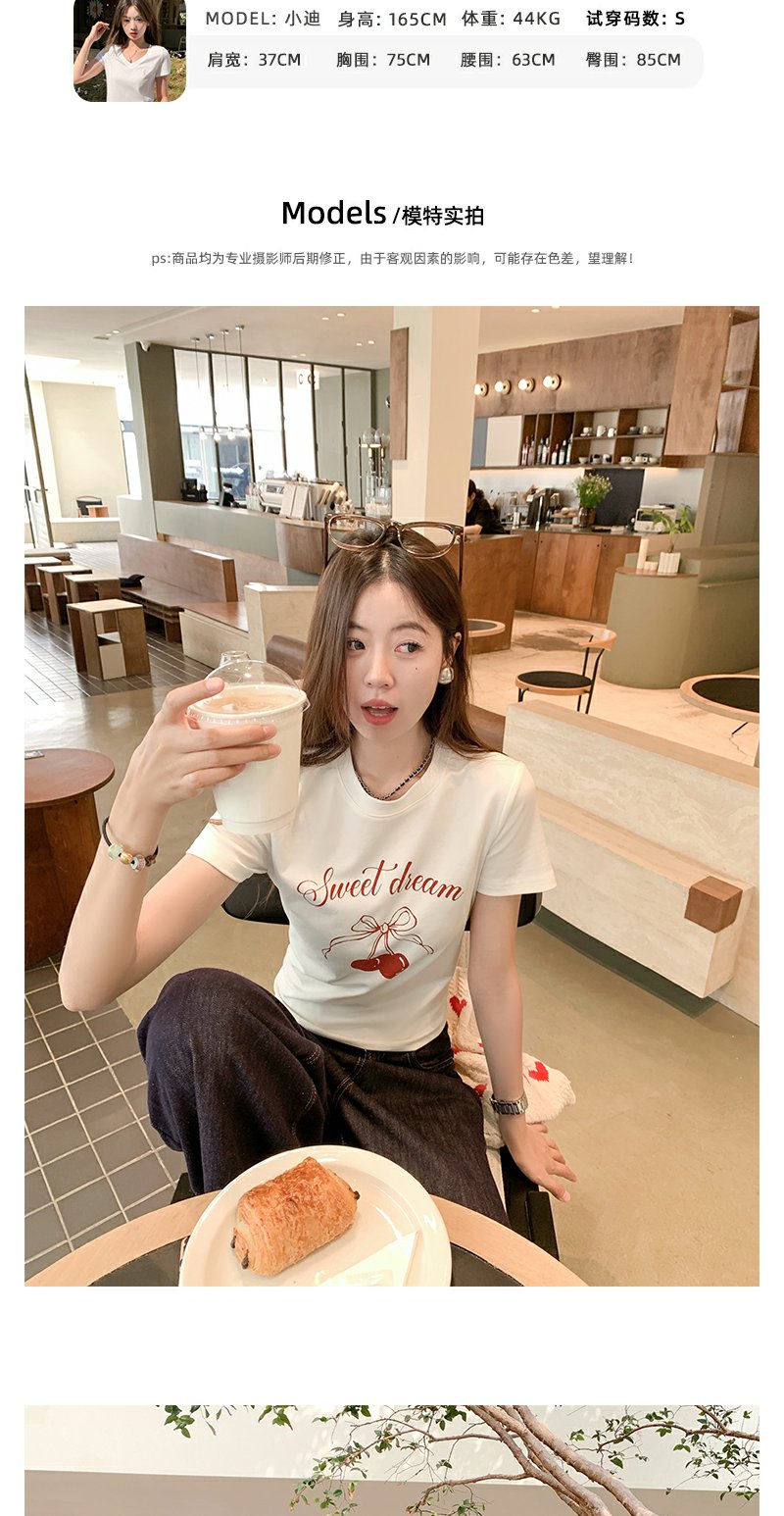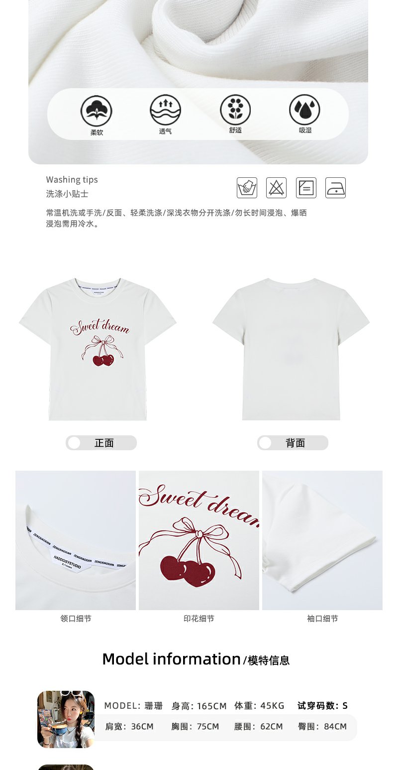 <曾小咸推荐>樱桃印花正肩短袖修身T恤