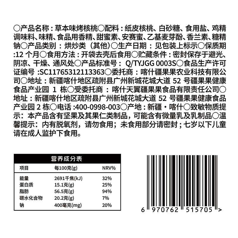 疆果乐草本味烤核桃360g袋【XPTX】