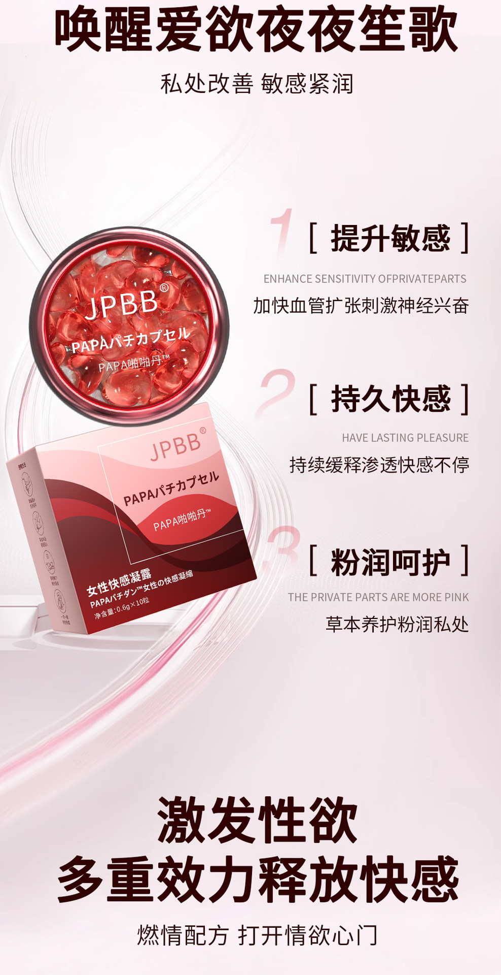 【私护密码!水润饱满!买一送二!】JPBB女性私密快感凝露 啪啪胶囊 女性私处高潮液 夫妻用品私密啪啪丹