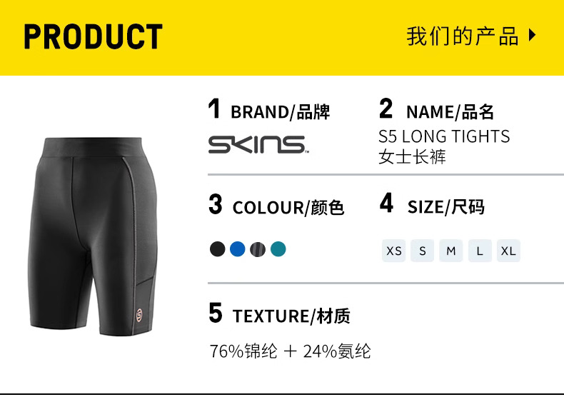 SKINS S5 Half Tights 女士高强度压缩中裤