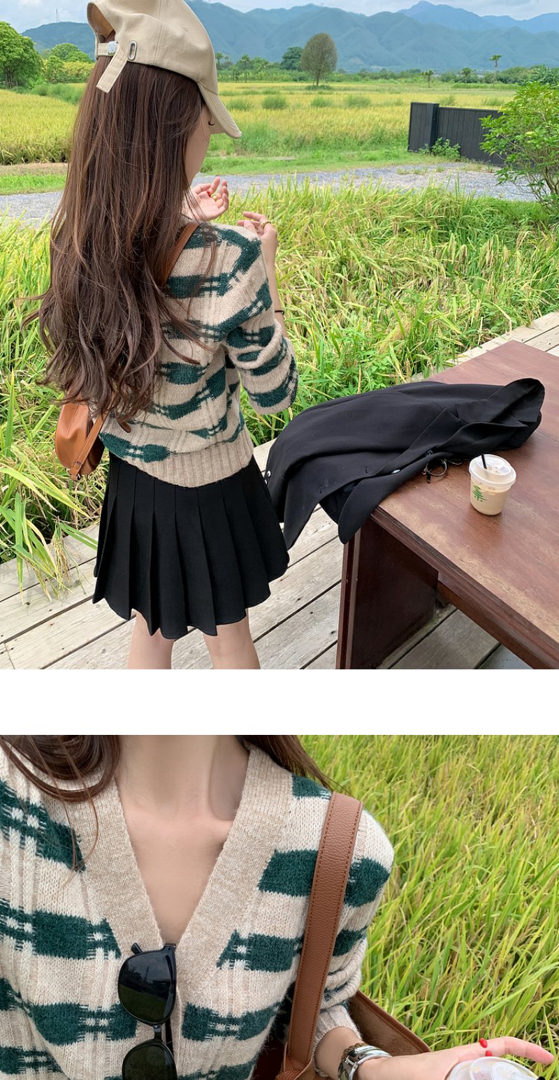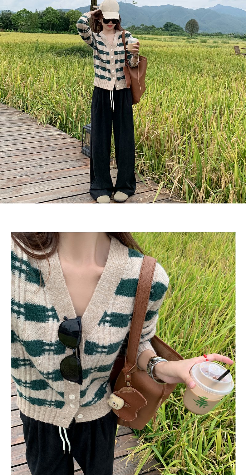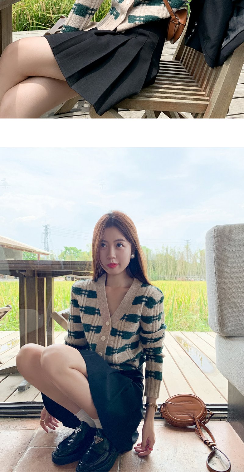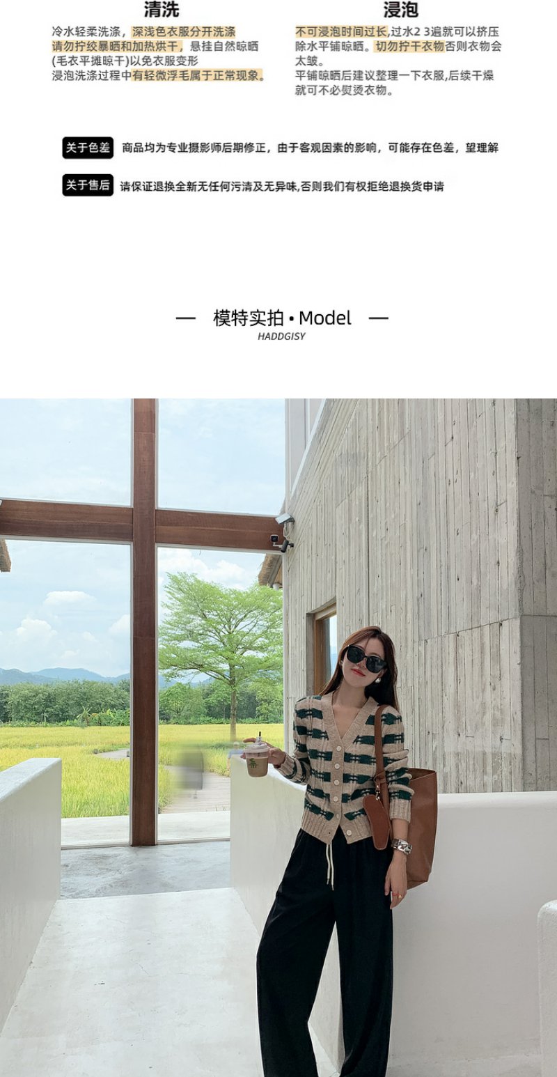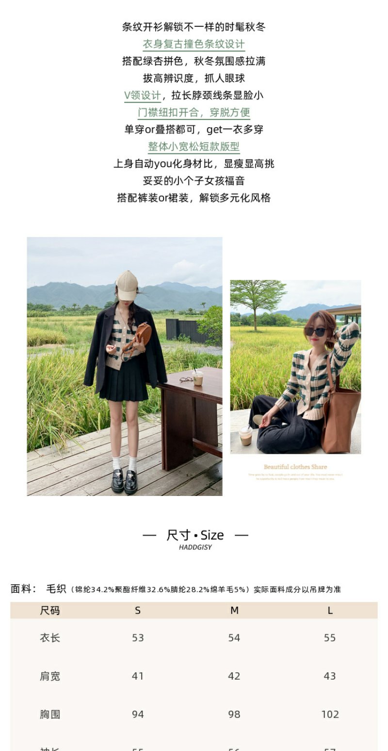 <曾小咸推荐>最后一波现货!法式复古V领绿色条纹毛衣开衫 日常189.99 立减100 秒杀89.99!!