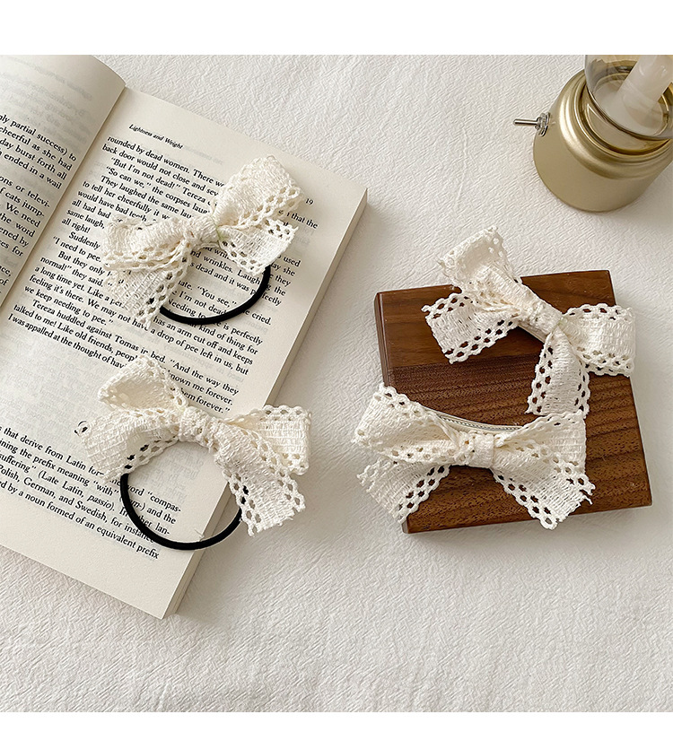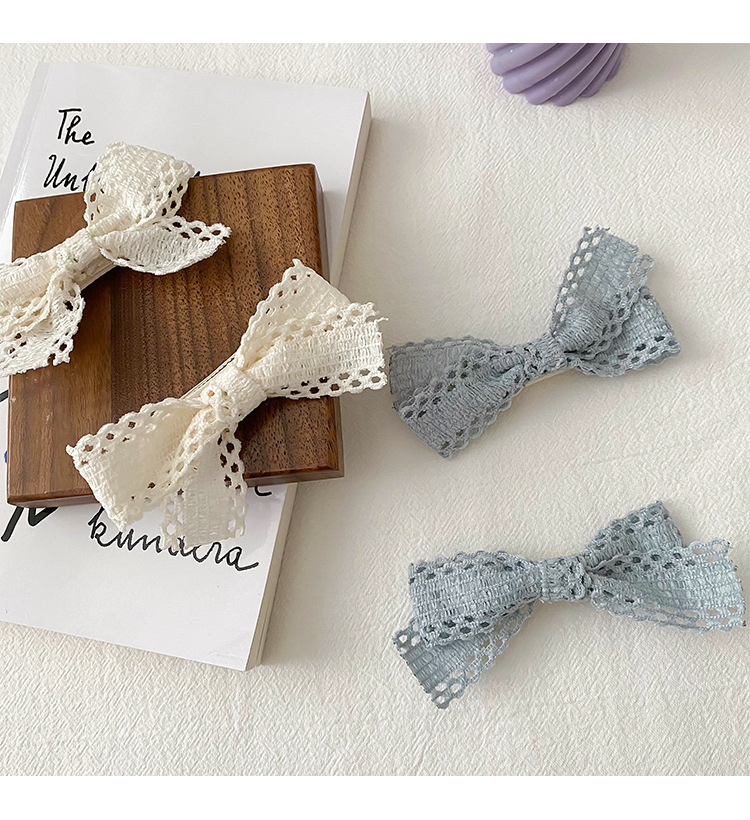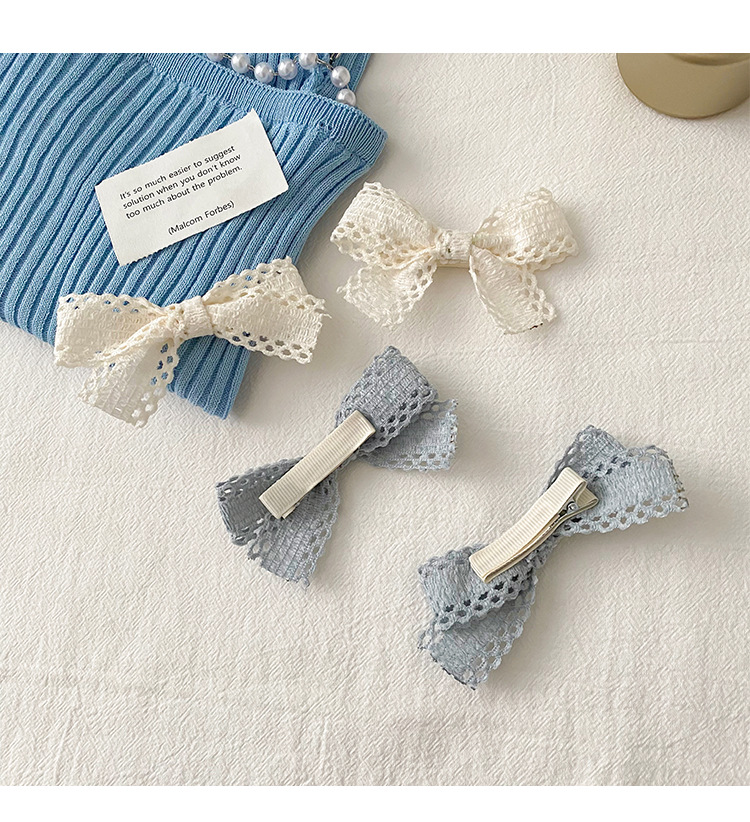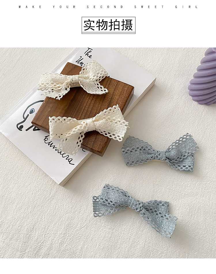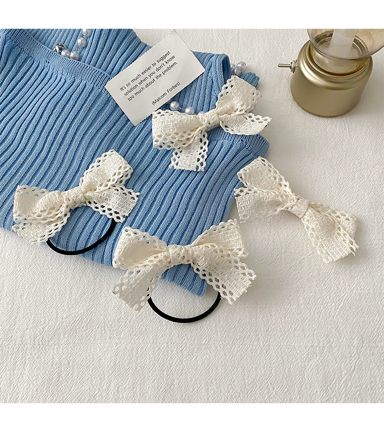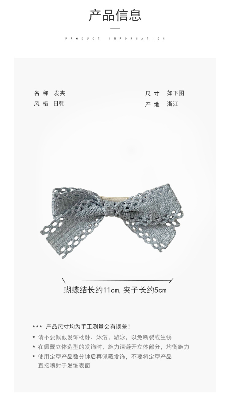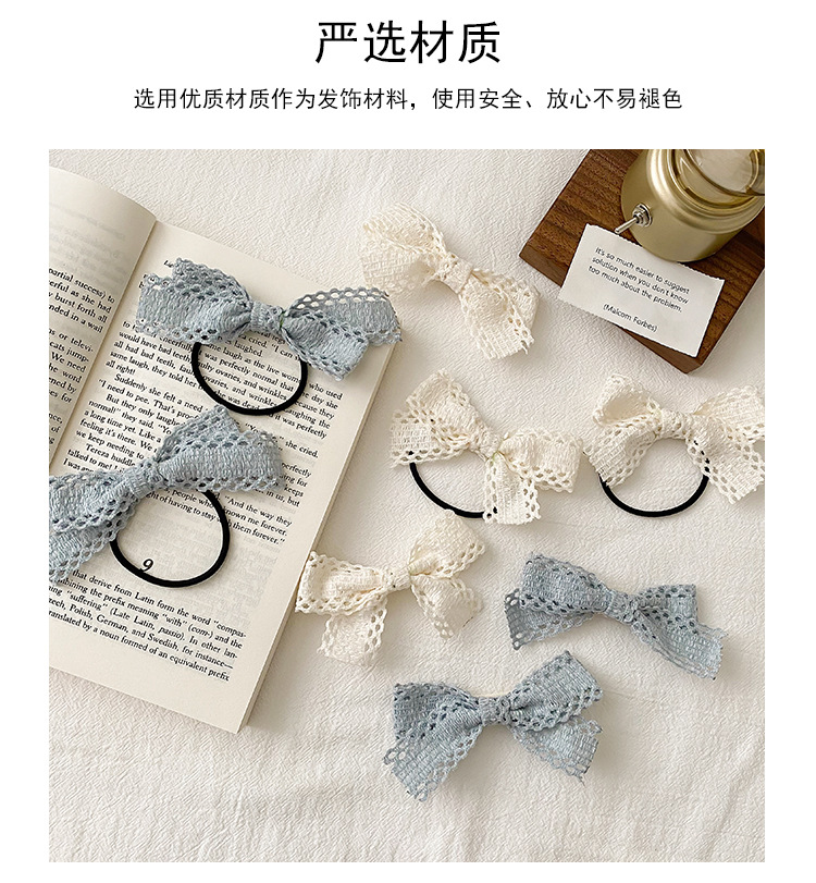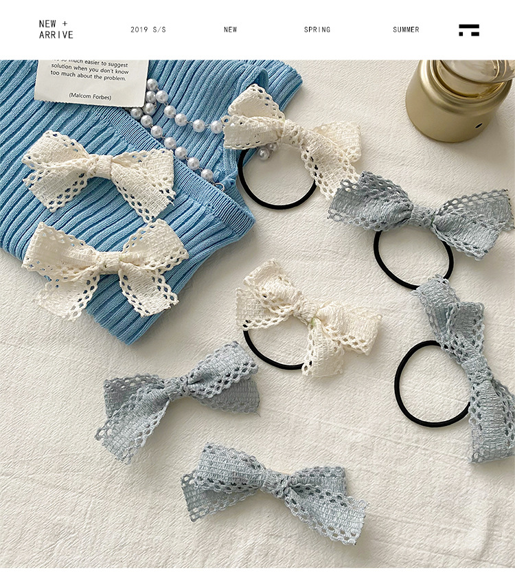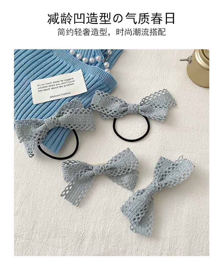 【奶蓝色发夹2只装】蕾丝蝴蝶结发圈发饰少女边夹发卡橡皮筋发绳头饰时尚饰品