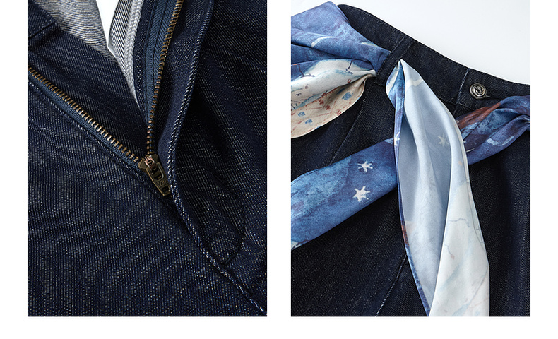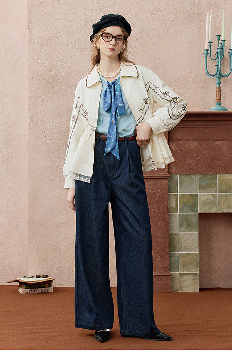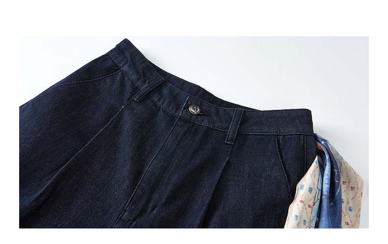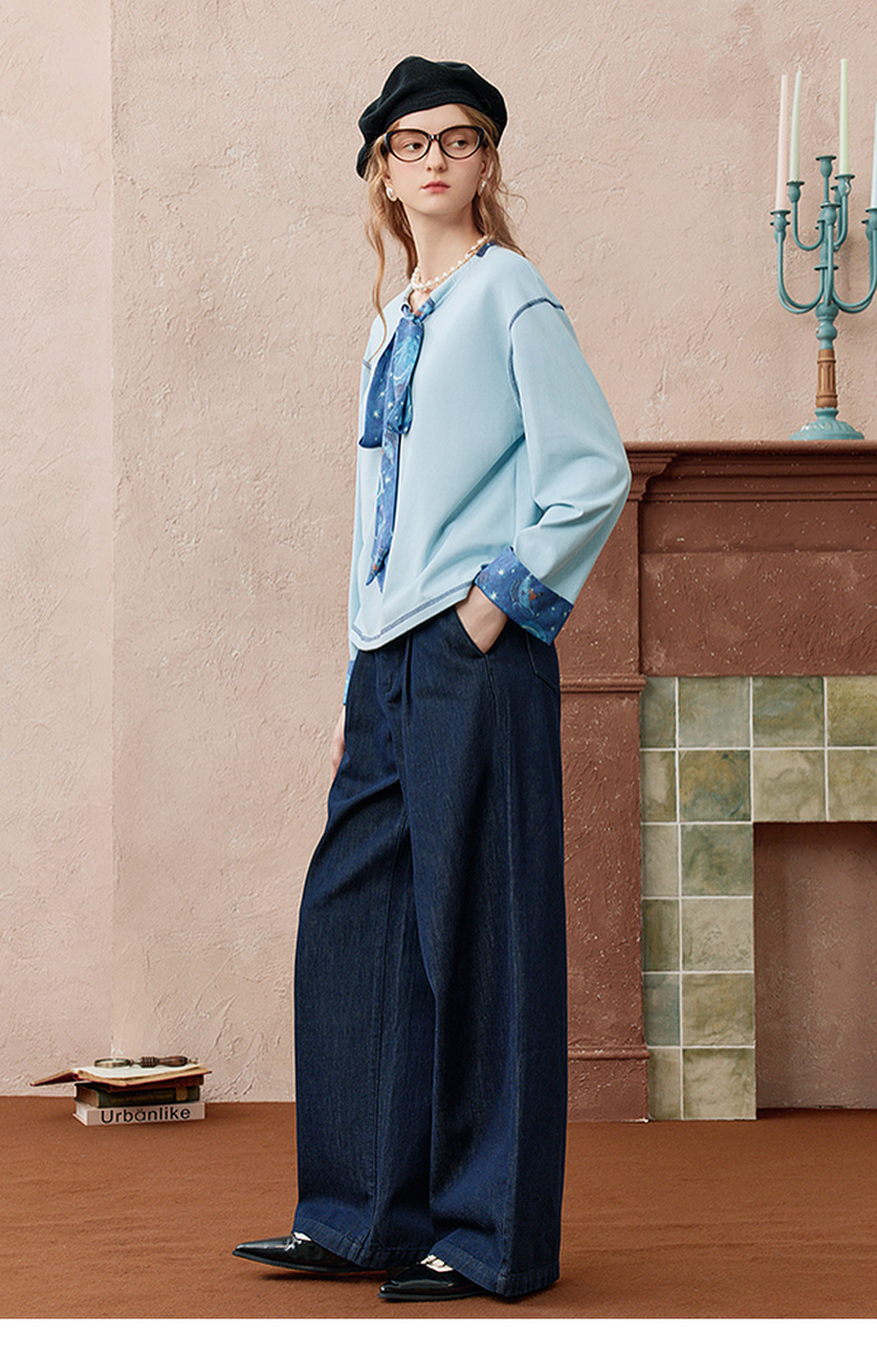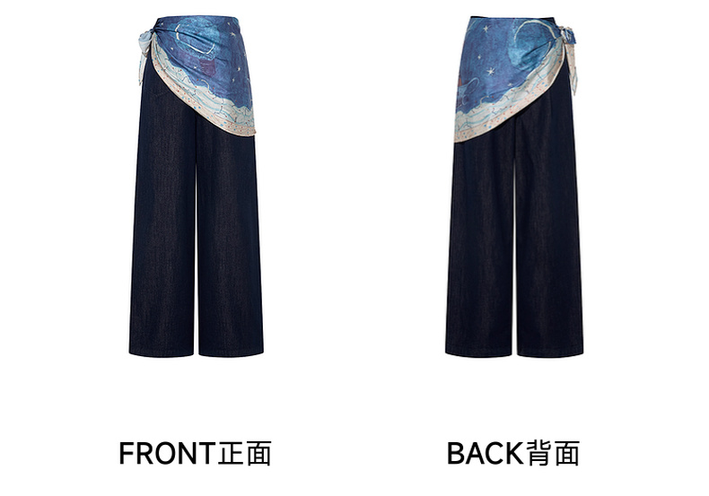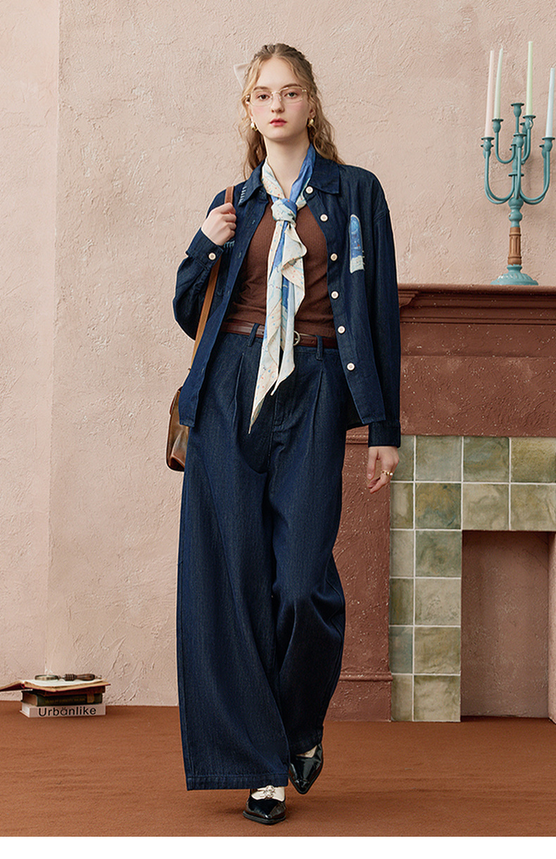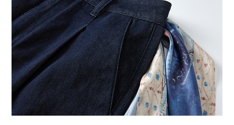 两三事 放牧星尘 2025秋季新款时尚可拆印花丝巾阔腿牛仔裤女
