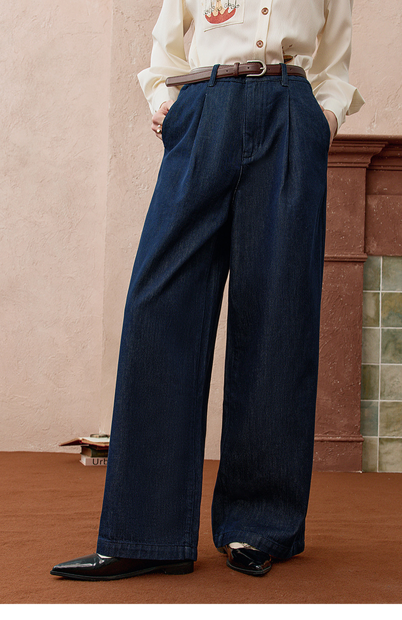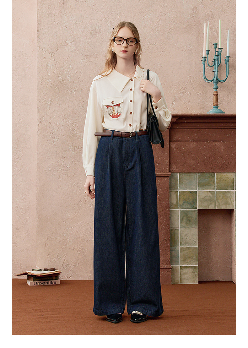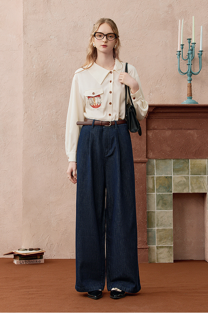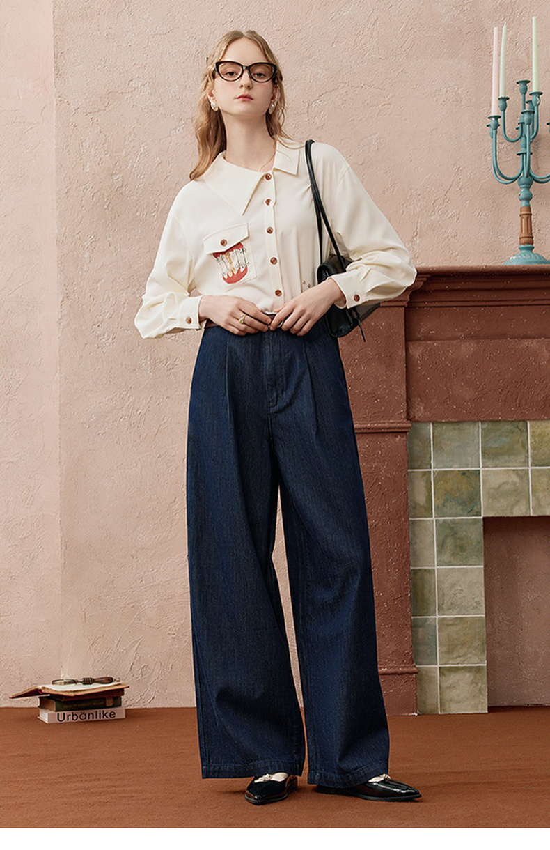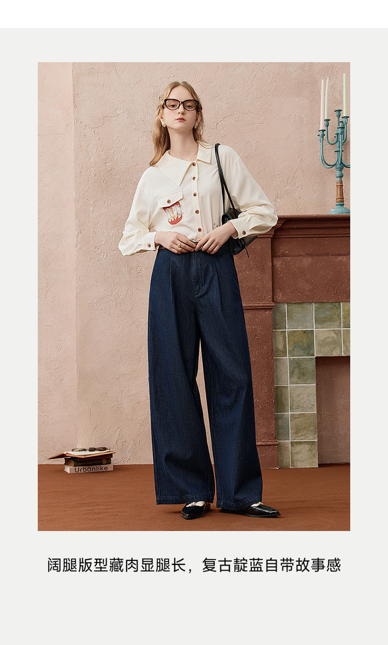 两三事 放牧星尘 2025秋季新款时尚可拆印花丝巾阔腿牛仔裤女