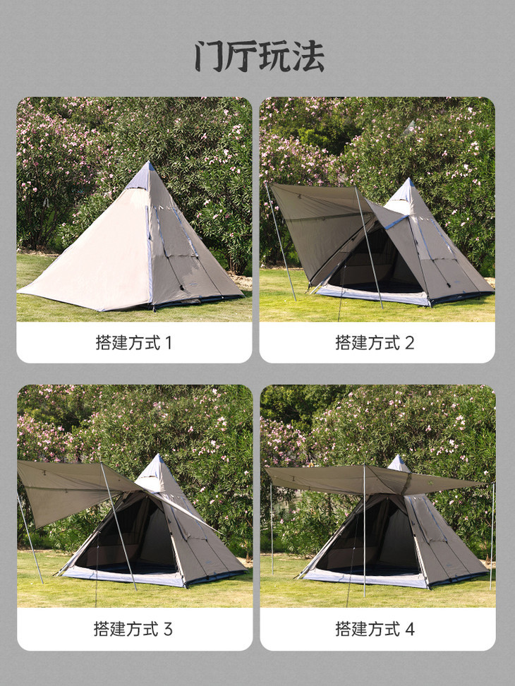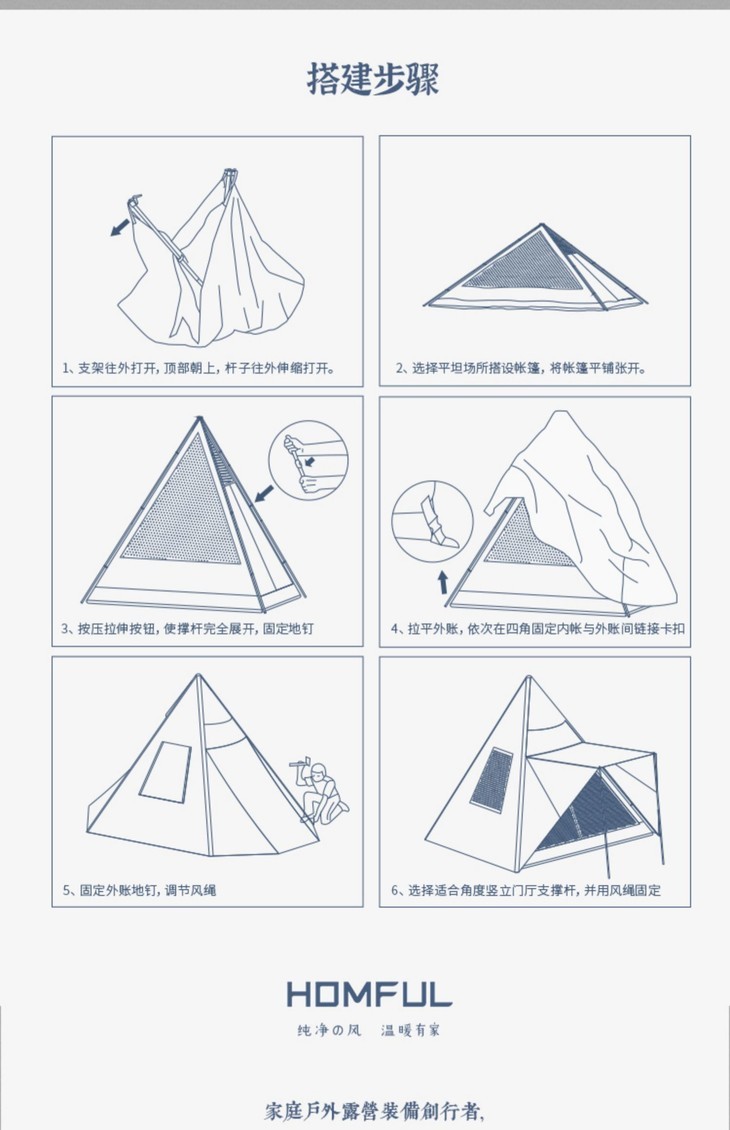 精致露营六件套(皓风尖塔帐篷Z01021一顶+APEACH单人垫三张+3米牛津布地席KA2009A938一张+芊陌鸟260大拖车