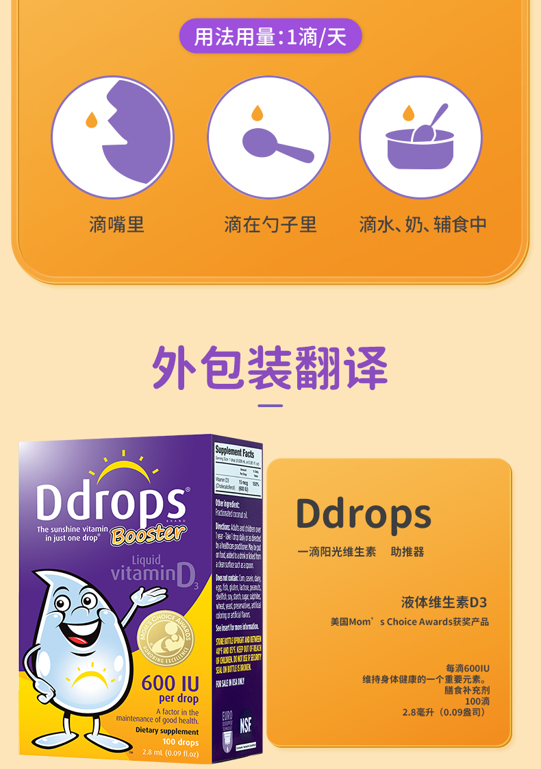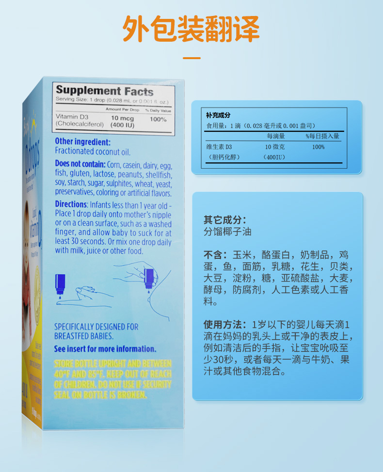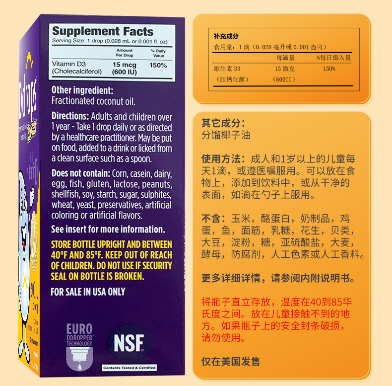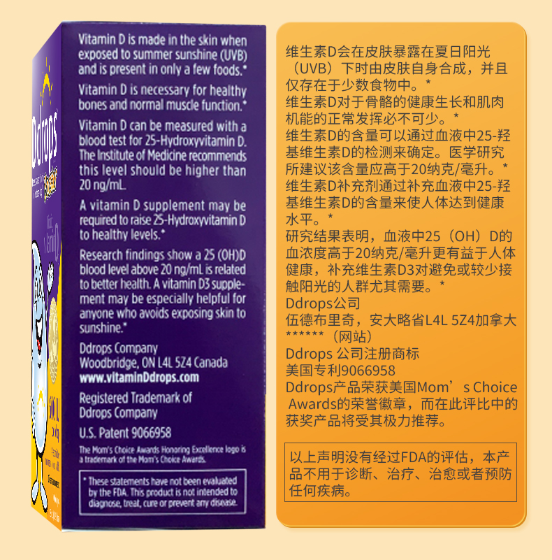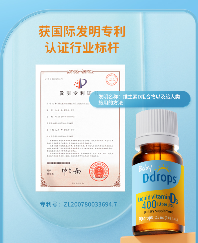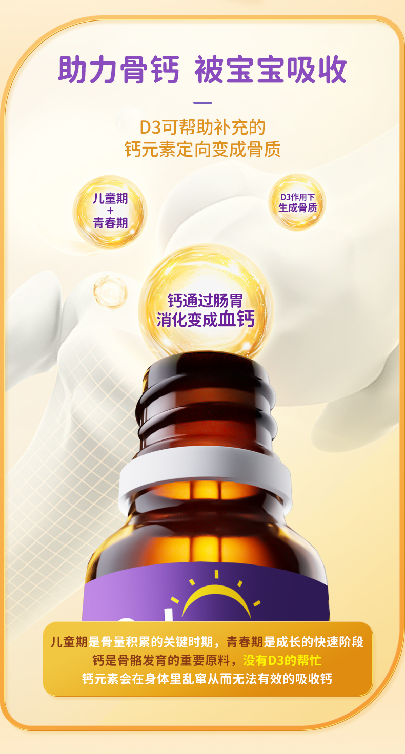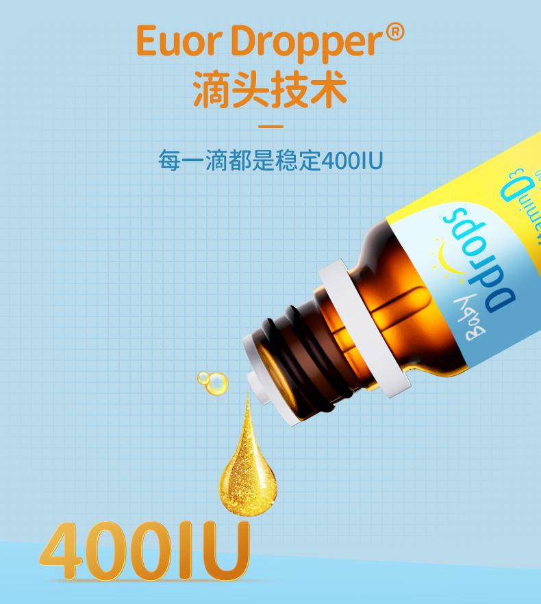 维生素D3 15天以上【成长必备 补钙】 D3滴剂 蓝瓶400IU/紫瓶600IU 加拿大Ddrops滴卓思