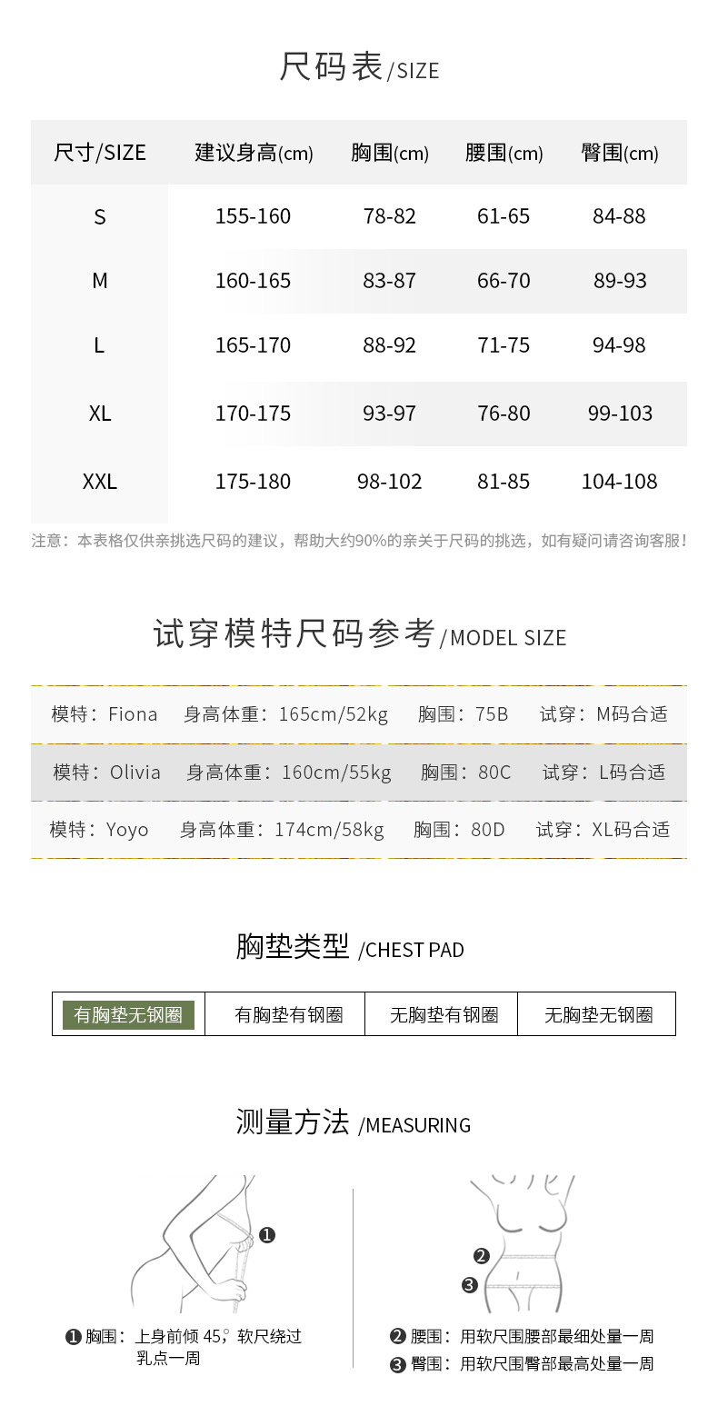 | 款式: 三角比基尼 | 是否带钢托带胸垫: 带胸垫无钢托 |