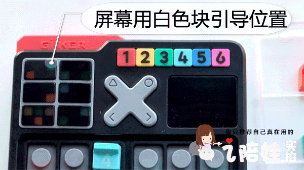 两块交互屏幕、一串数字灯、按压式键位,大大增加人机互动,孩子解题不枯燥。