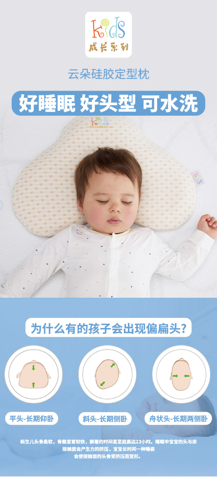 【金可儿成长】云朵硅胶定型枕 宝宝护颈枕头3月-2岁