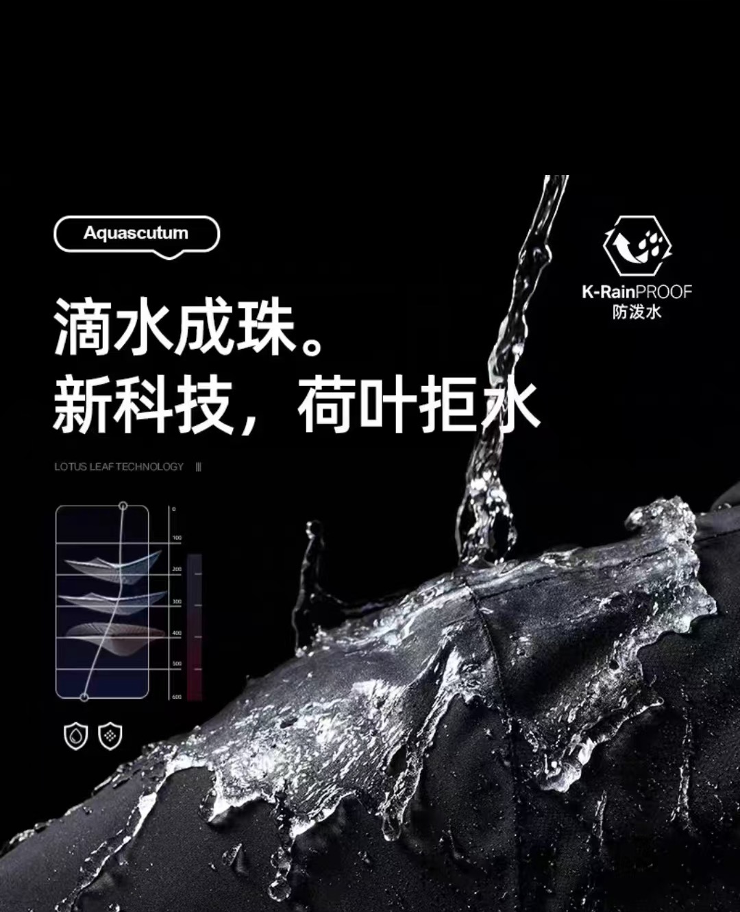多功能五防面料!面料轻松透气无压力,防泼水的拒水效果非常显著,滴水成珠的瞬间滑落的效果