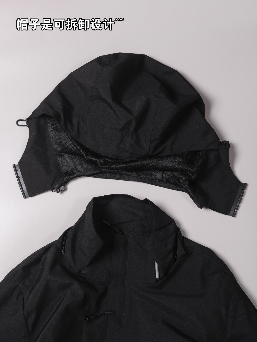连帽的设计,帽檐弧度经过精准调试
