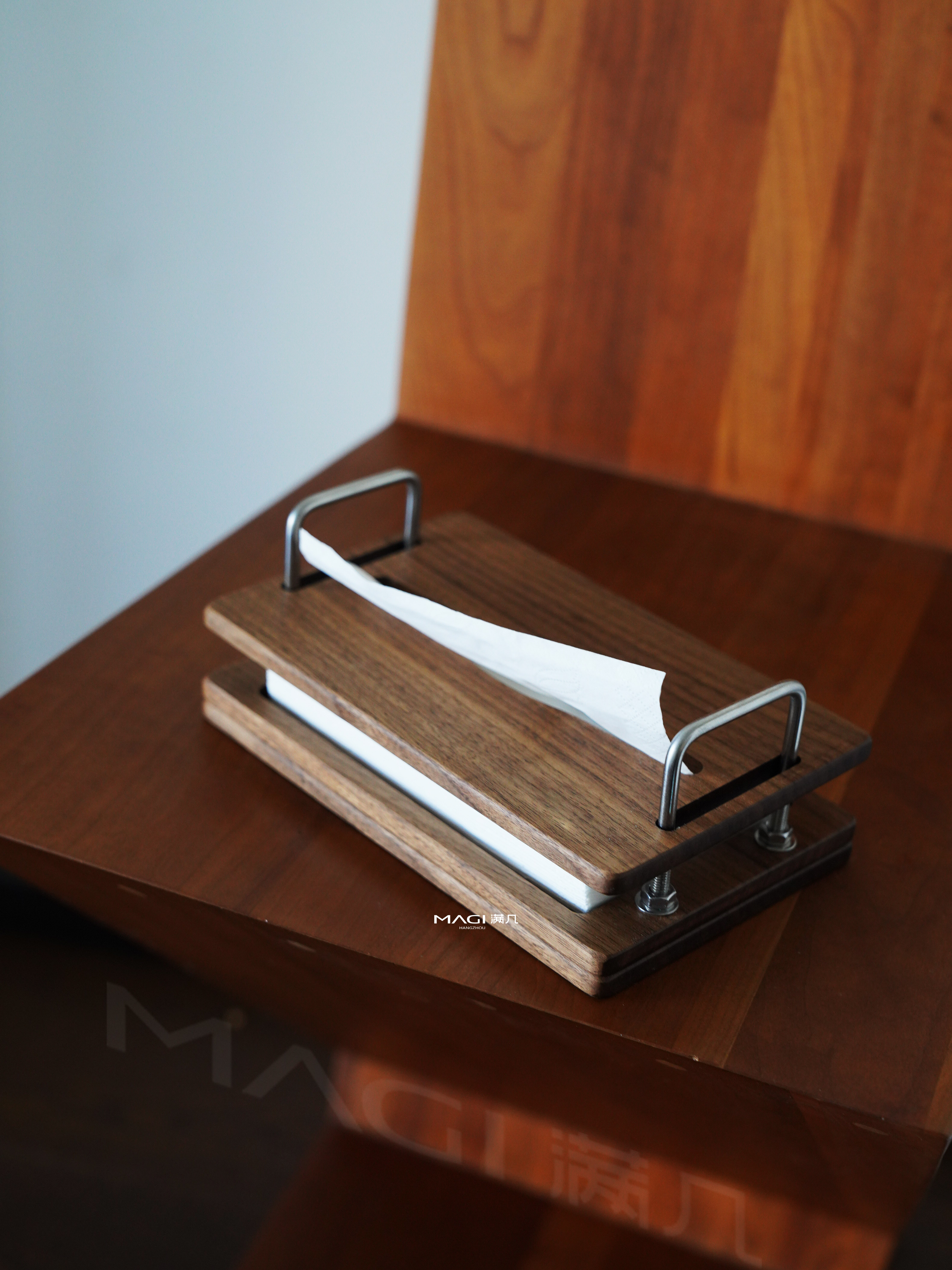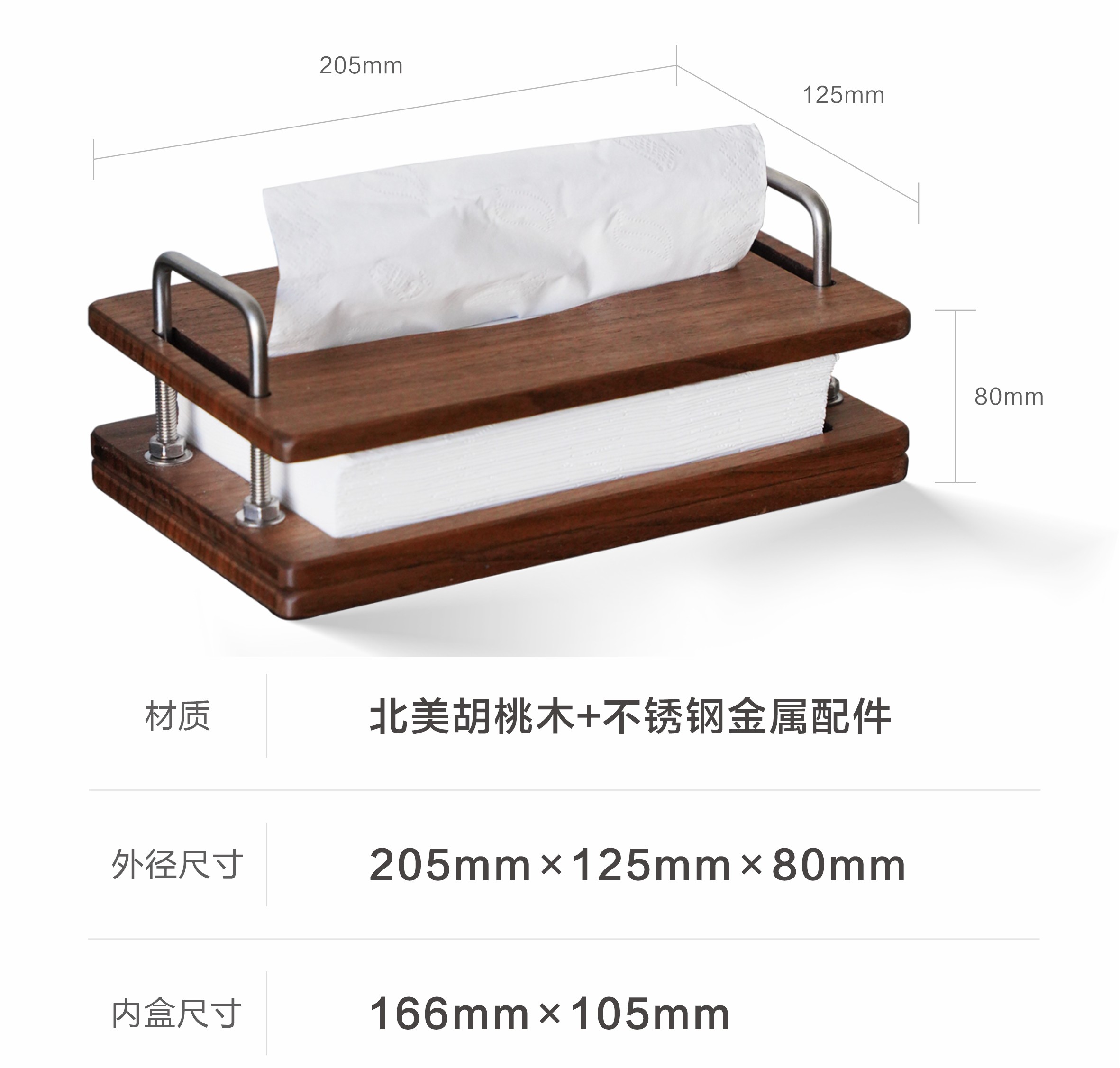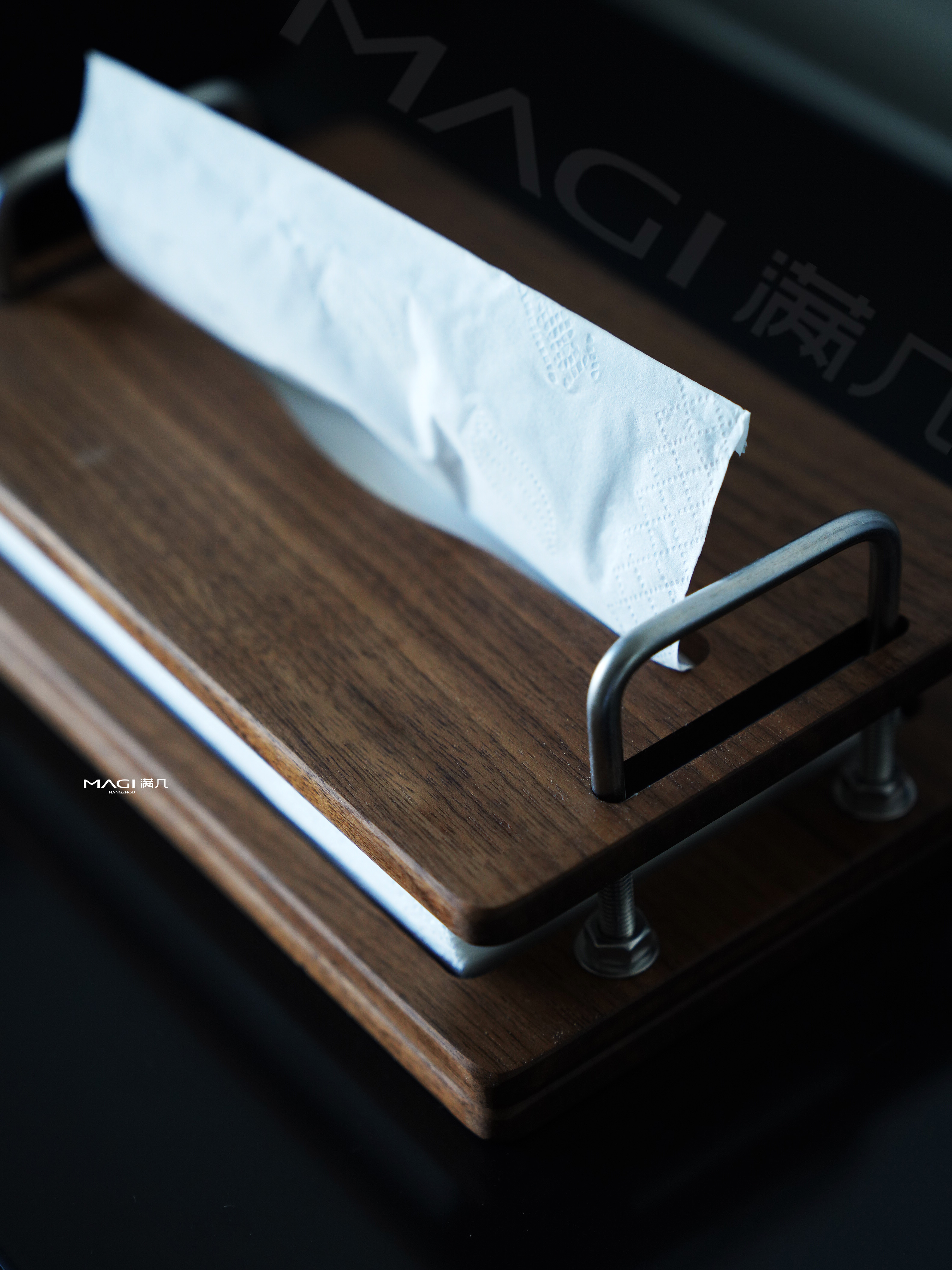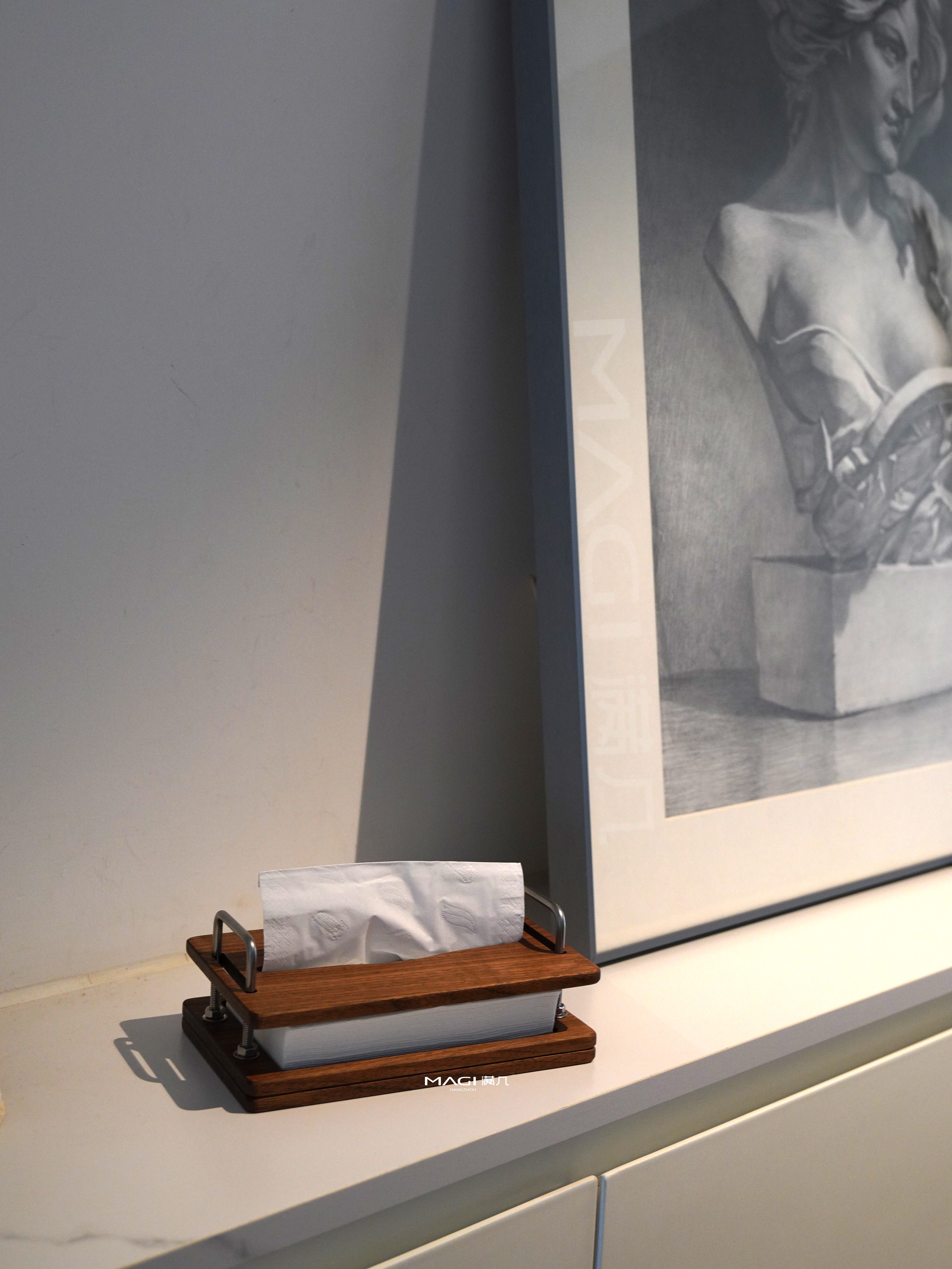 主打设计师原创,手工打造,选料健康无害,家居or办公搭配逼格拉满。取适量纸巾放入储纸盒(金属构件高度的三分之二处为最佳),再盖面板压盖抽出首张纸巾,物理自压设计,即可享受丝滑抽纸~