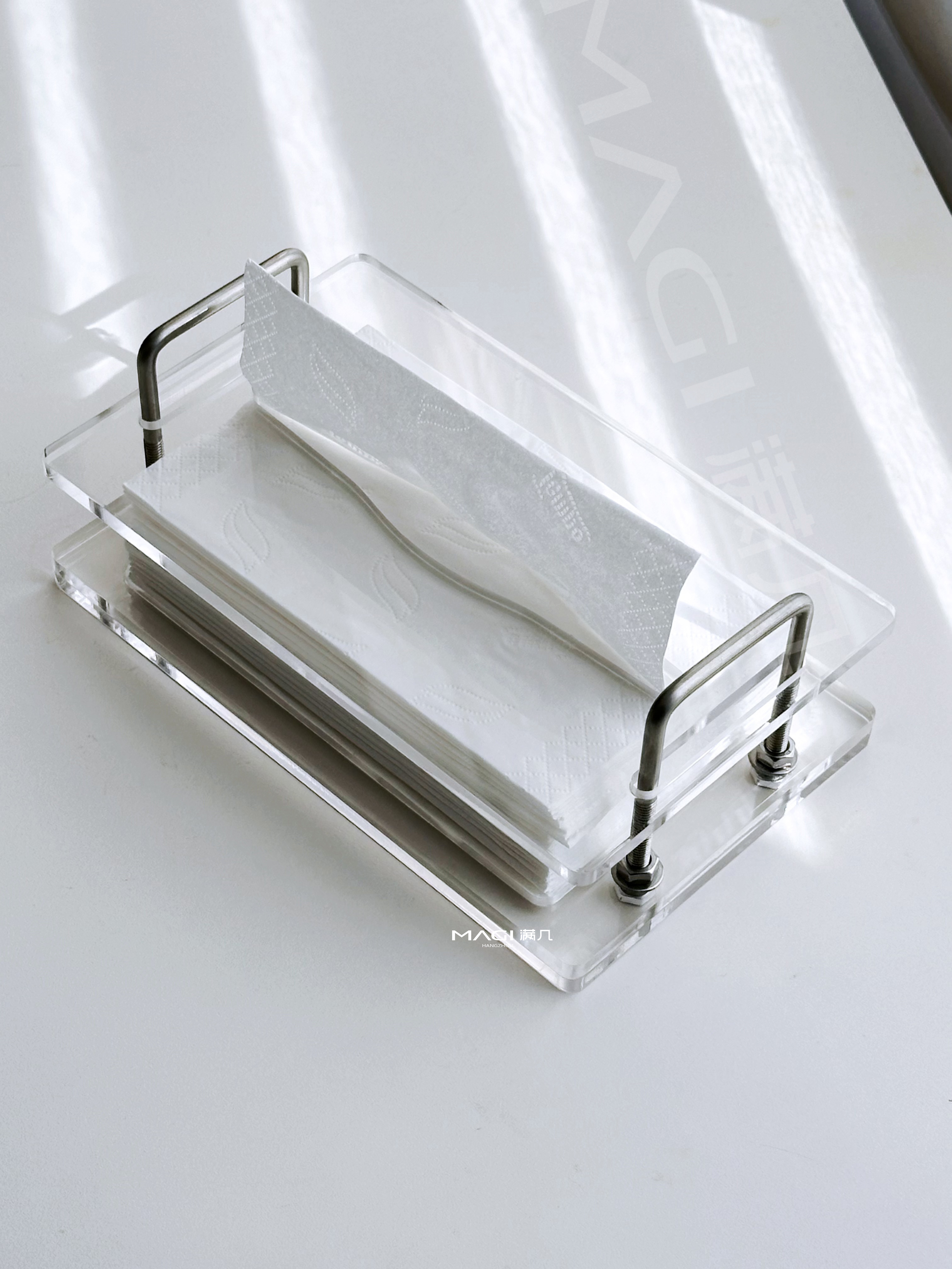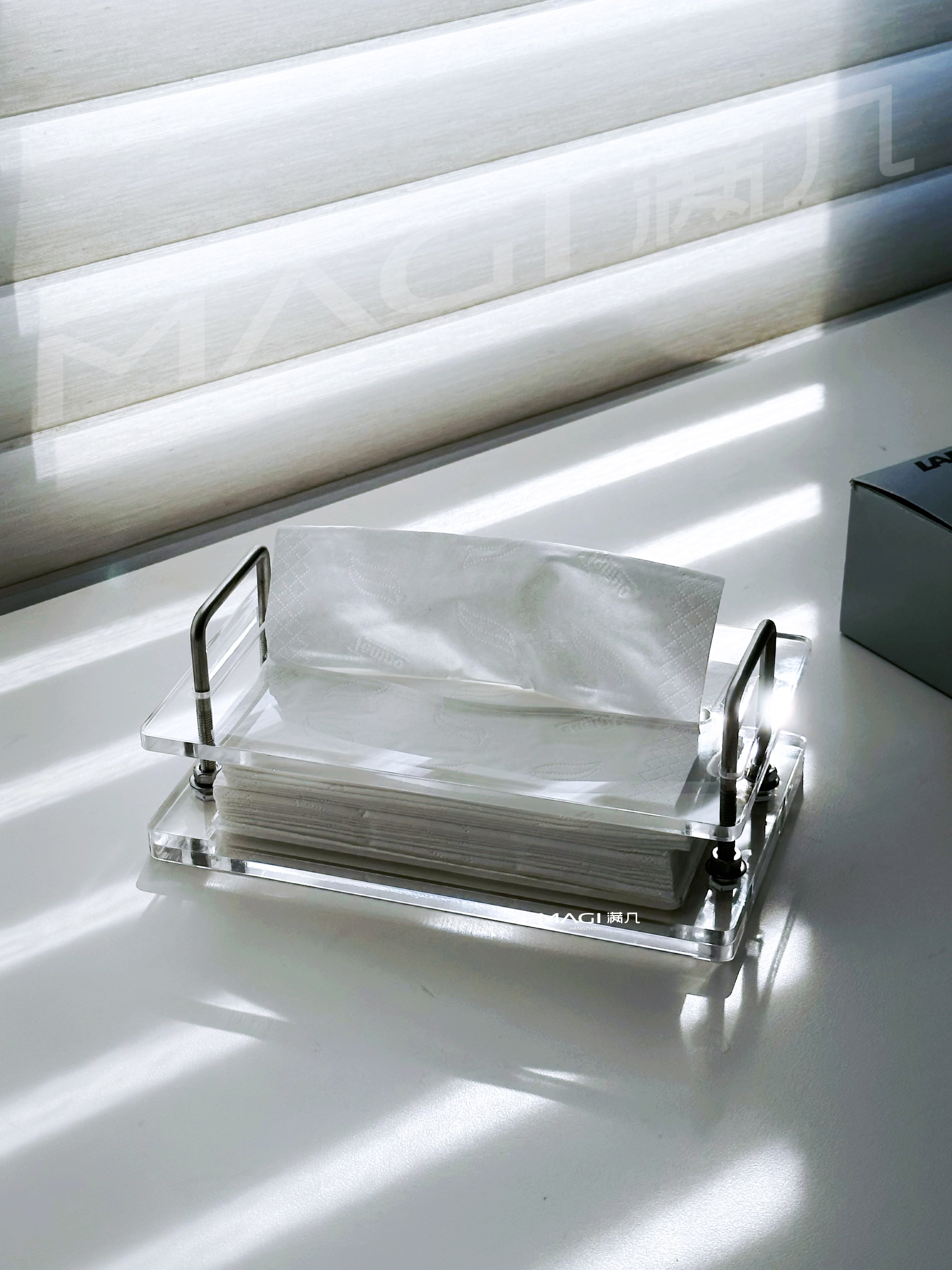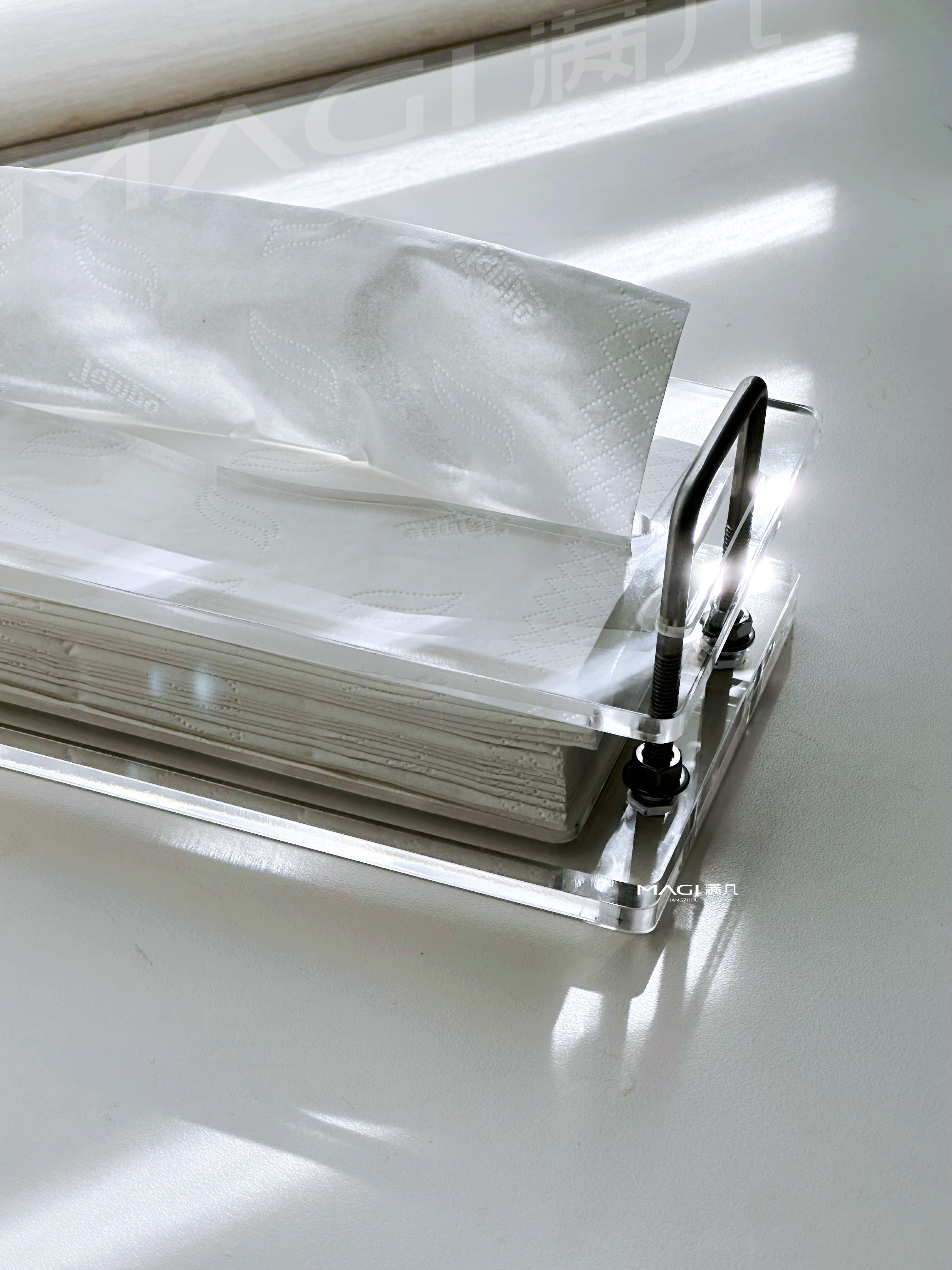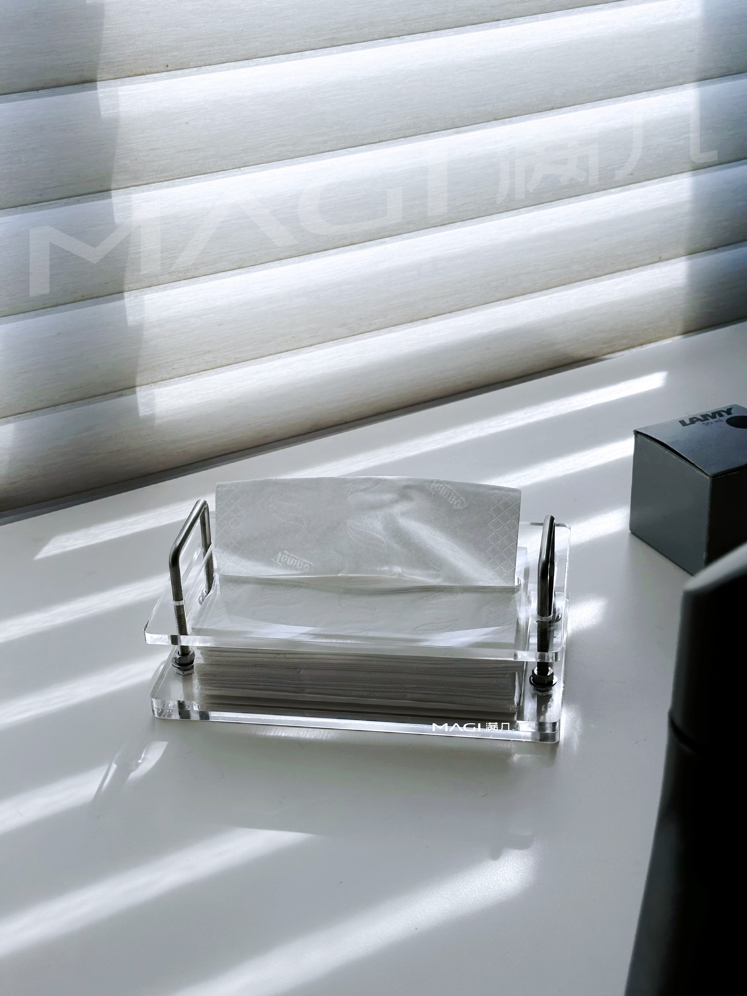 主打设计师原创,手工打造,选料健康无害,家居or办公搭配逼格拉满。取适量纸巾放入储纸盒(金属构件高度的三分之二处为最佳),再盖面板压盖抽出首张纸巾,物理自压设计,即可享受丝滑抽纸~