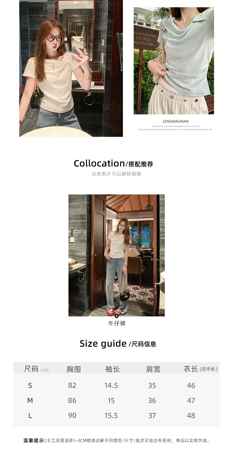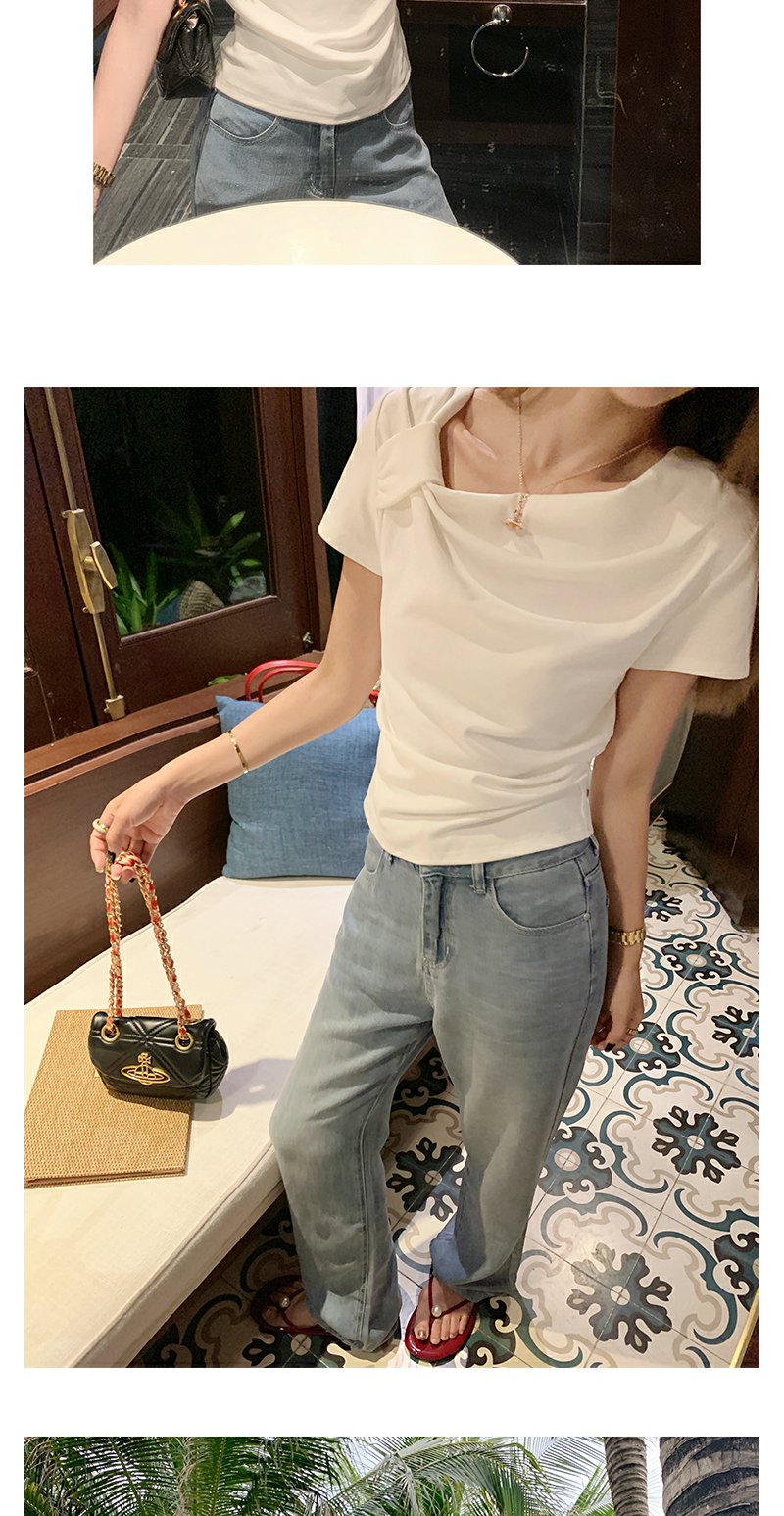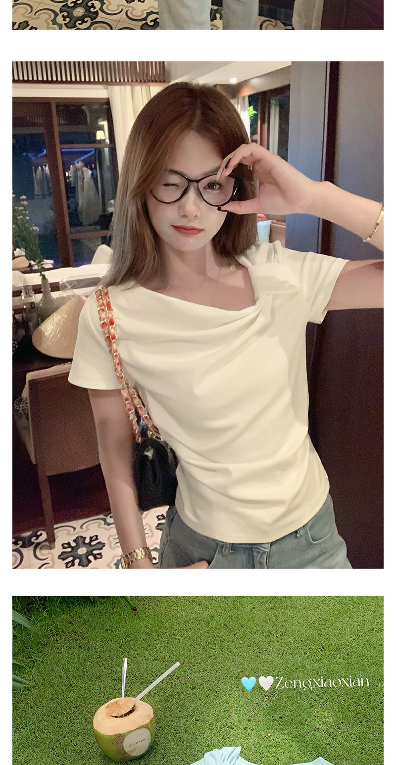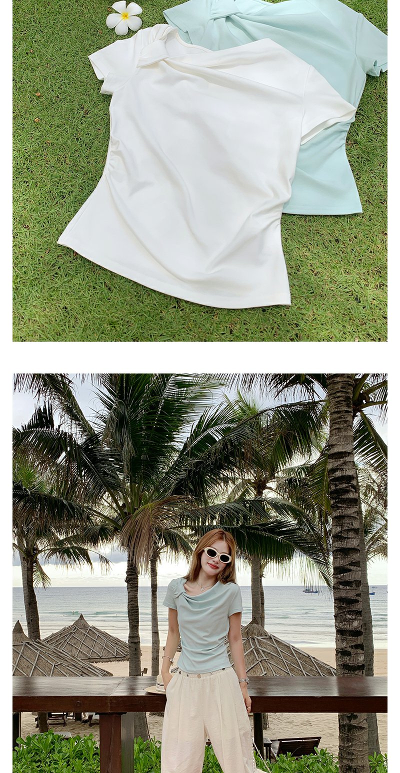 <曾小咸推荐>两色少女斜肩扭结露锁骨短袖T恤