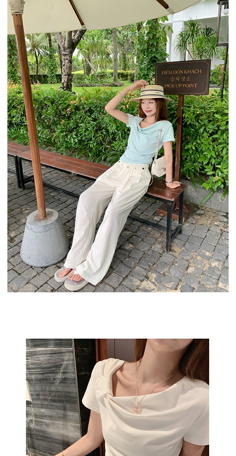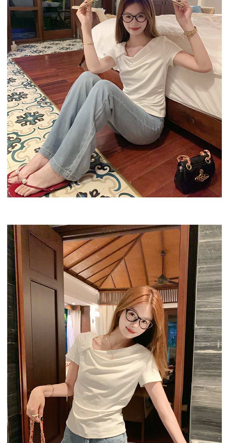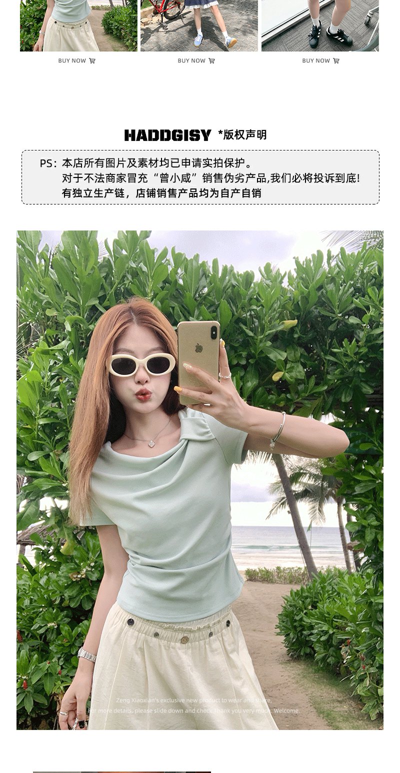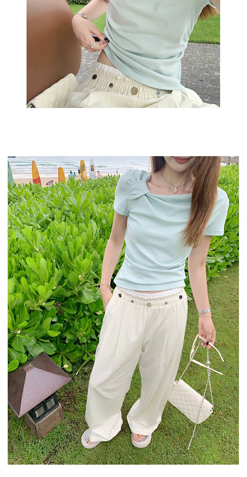 <曾小咸推荐>两色少女斜肩扭结露锁骨短袖T恤
