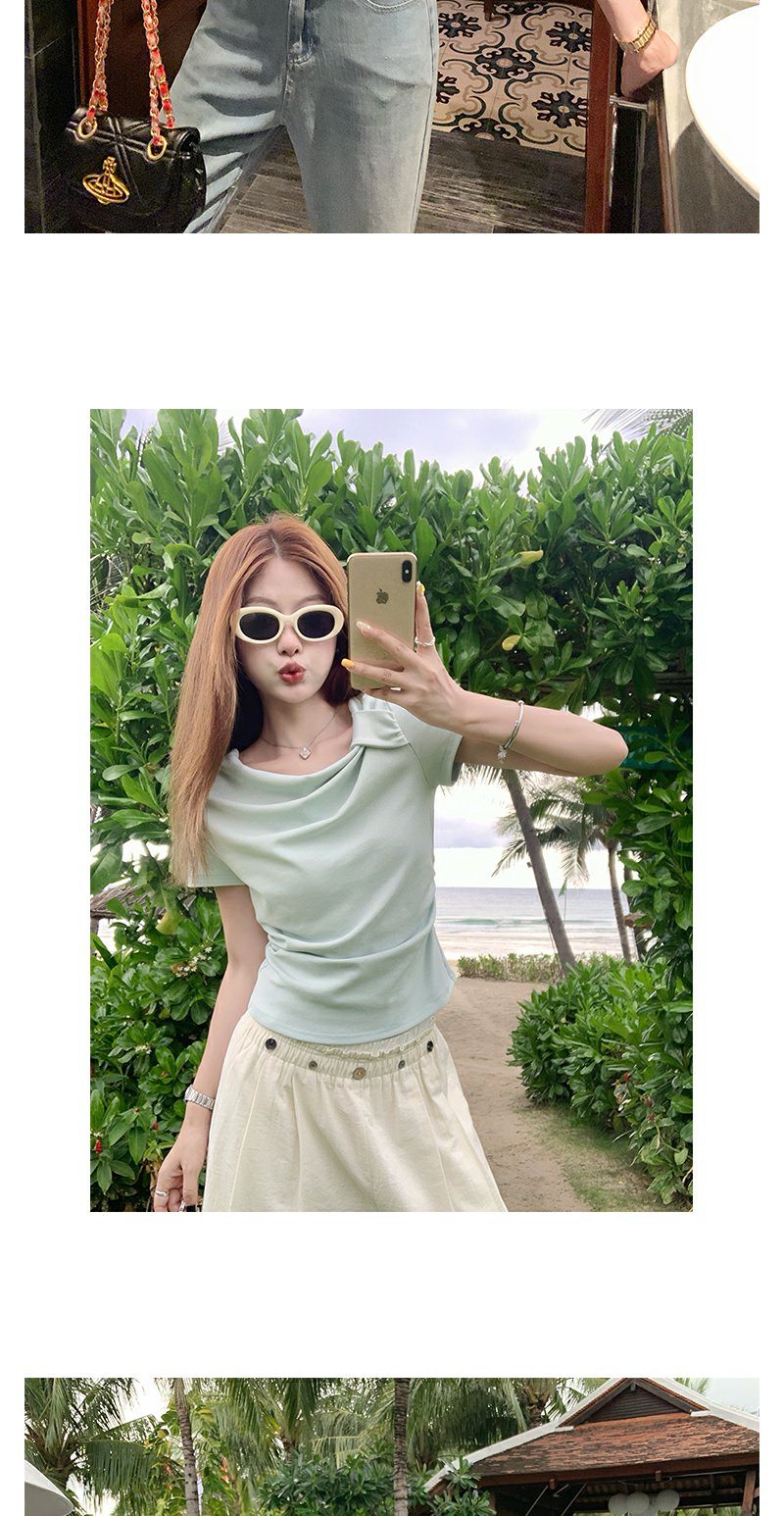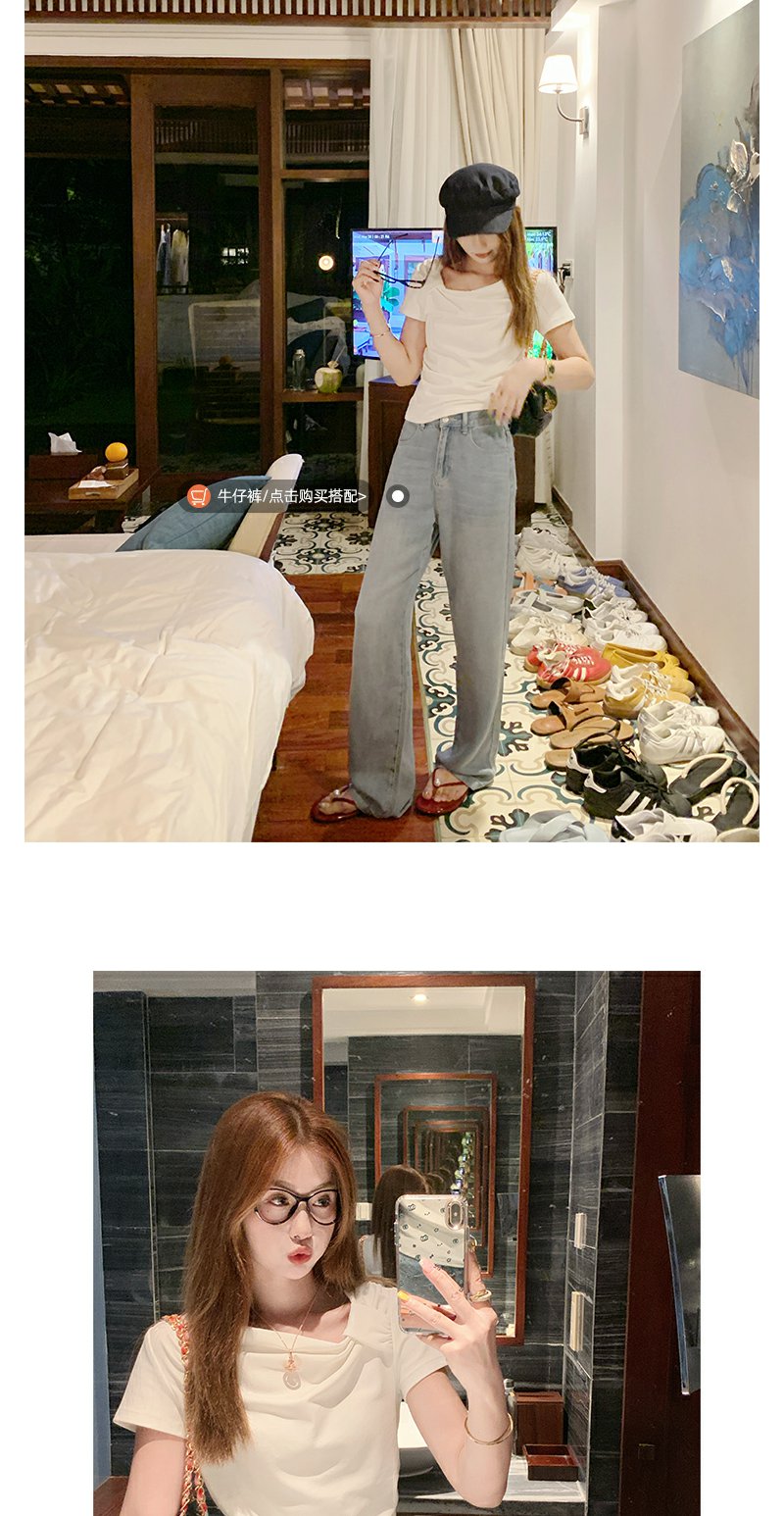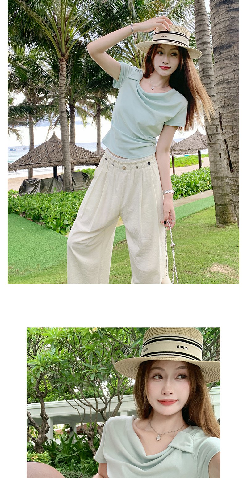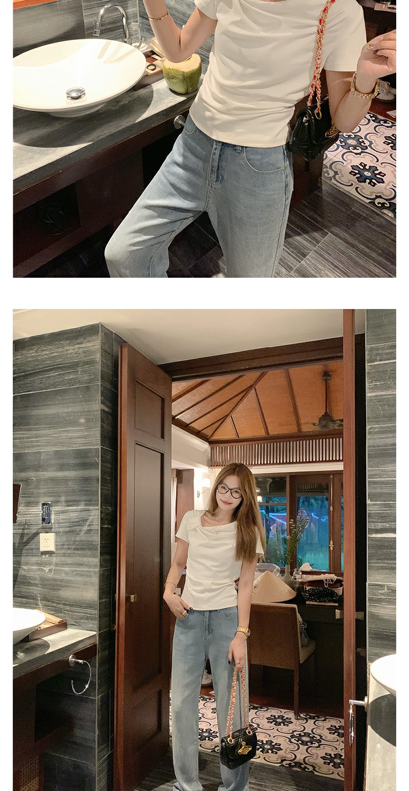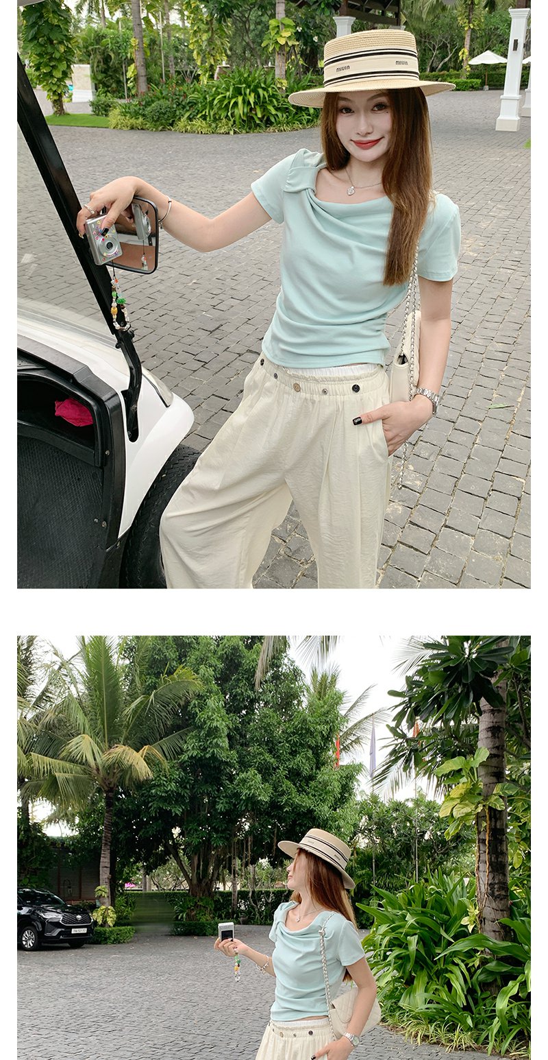 <曾小咸推荐>两色少女斜肩扭结露锁骨短袖T恤