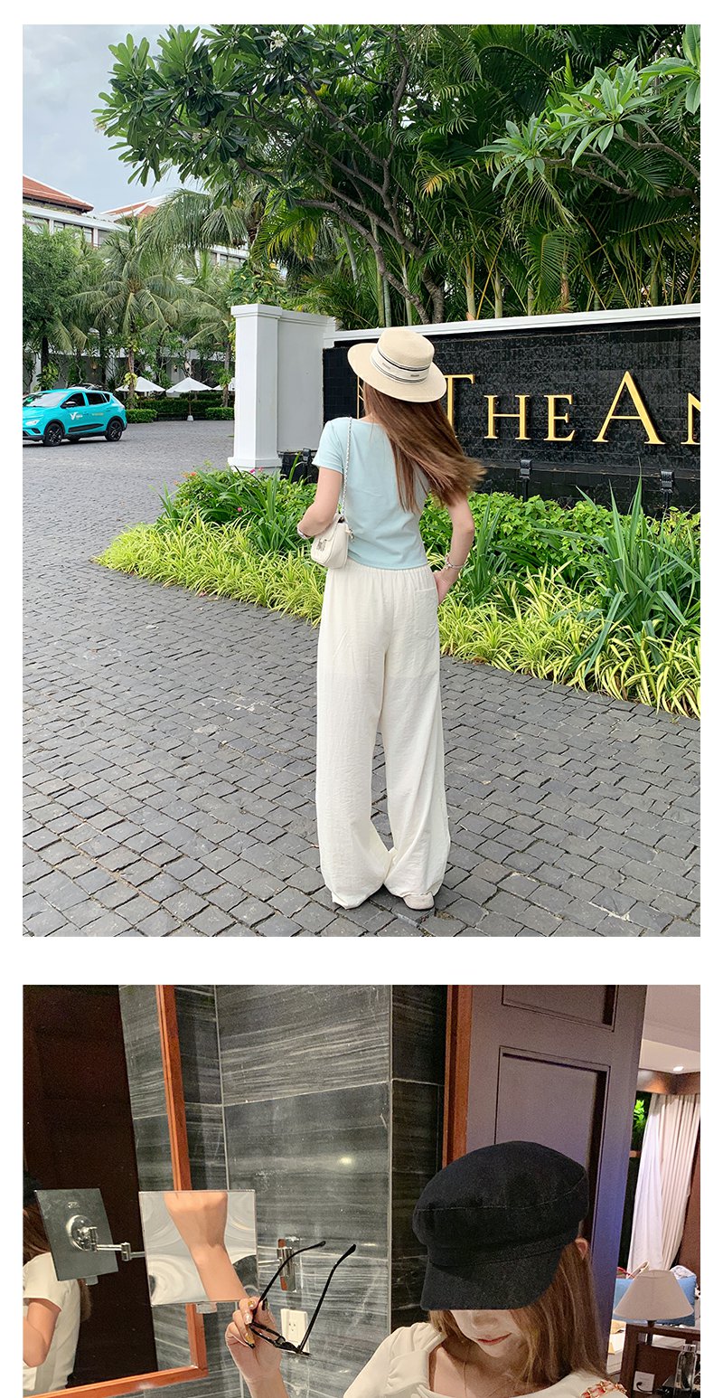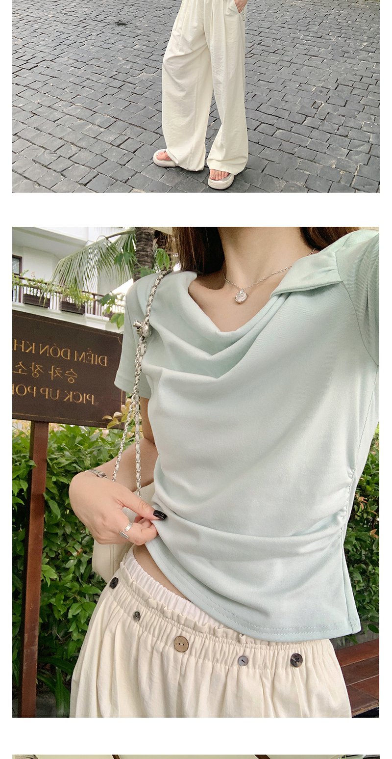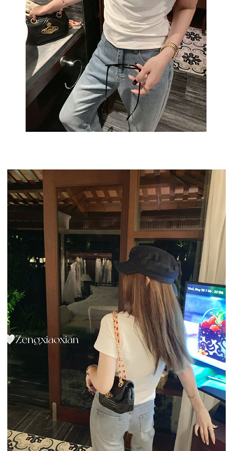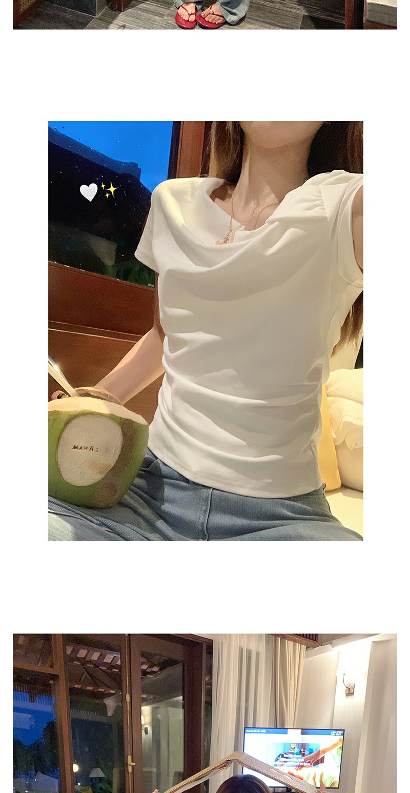 <曾小咸推荐>两色少女斜肩扭结露锁骨短袖T恤