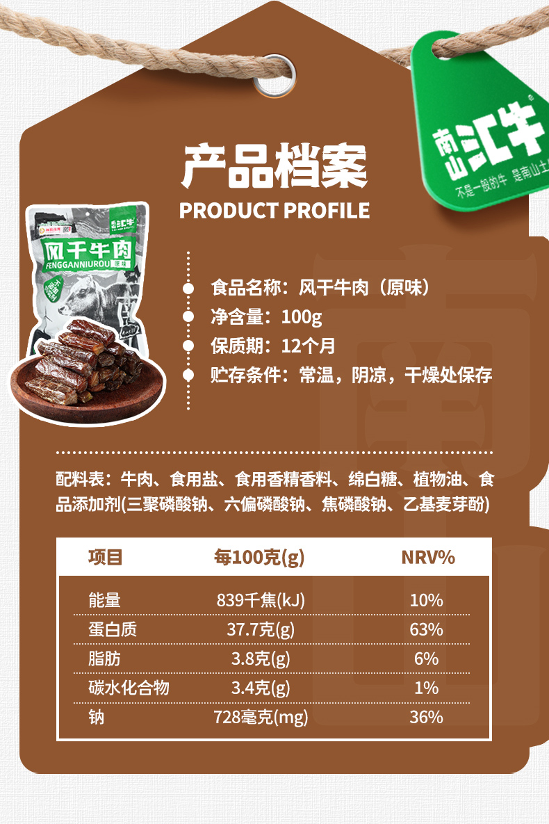 南山汇牛风干牛肉(原味)100g*2包【XPTX】