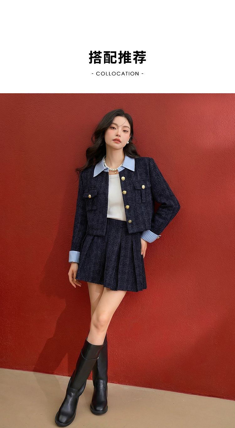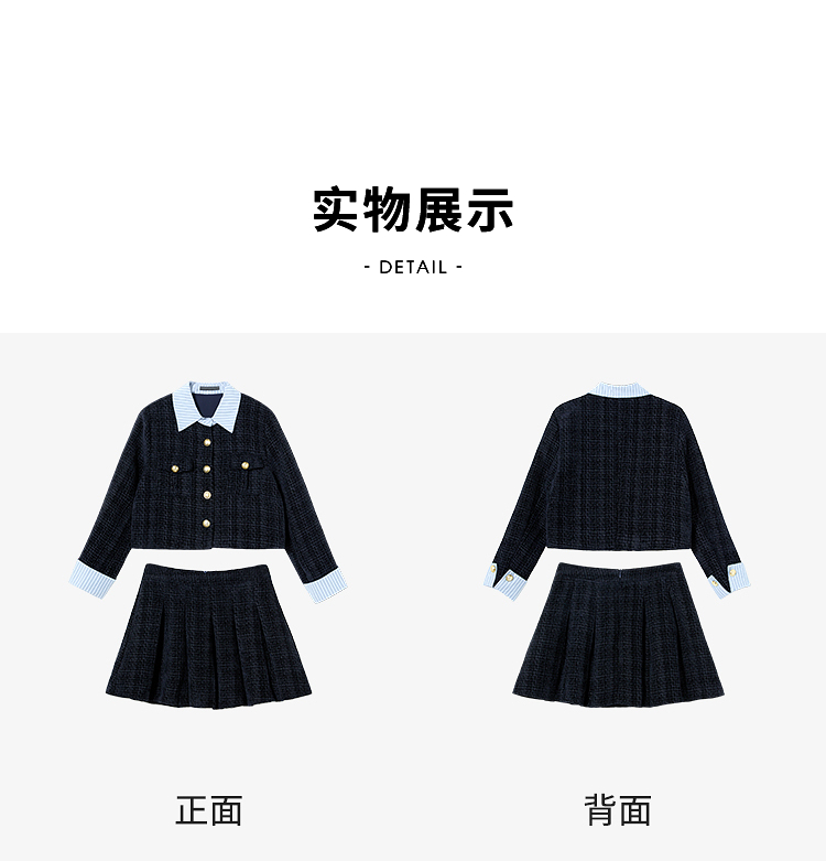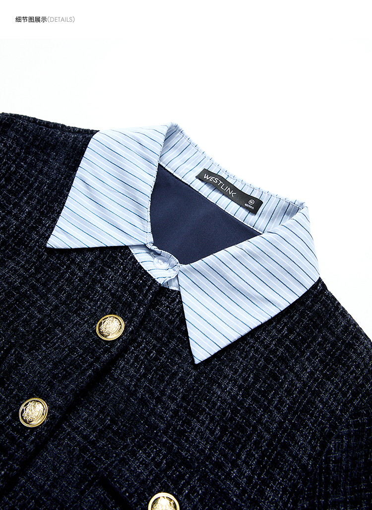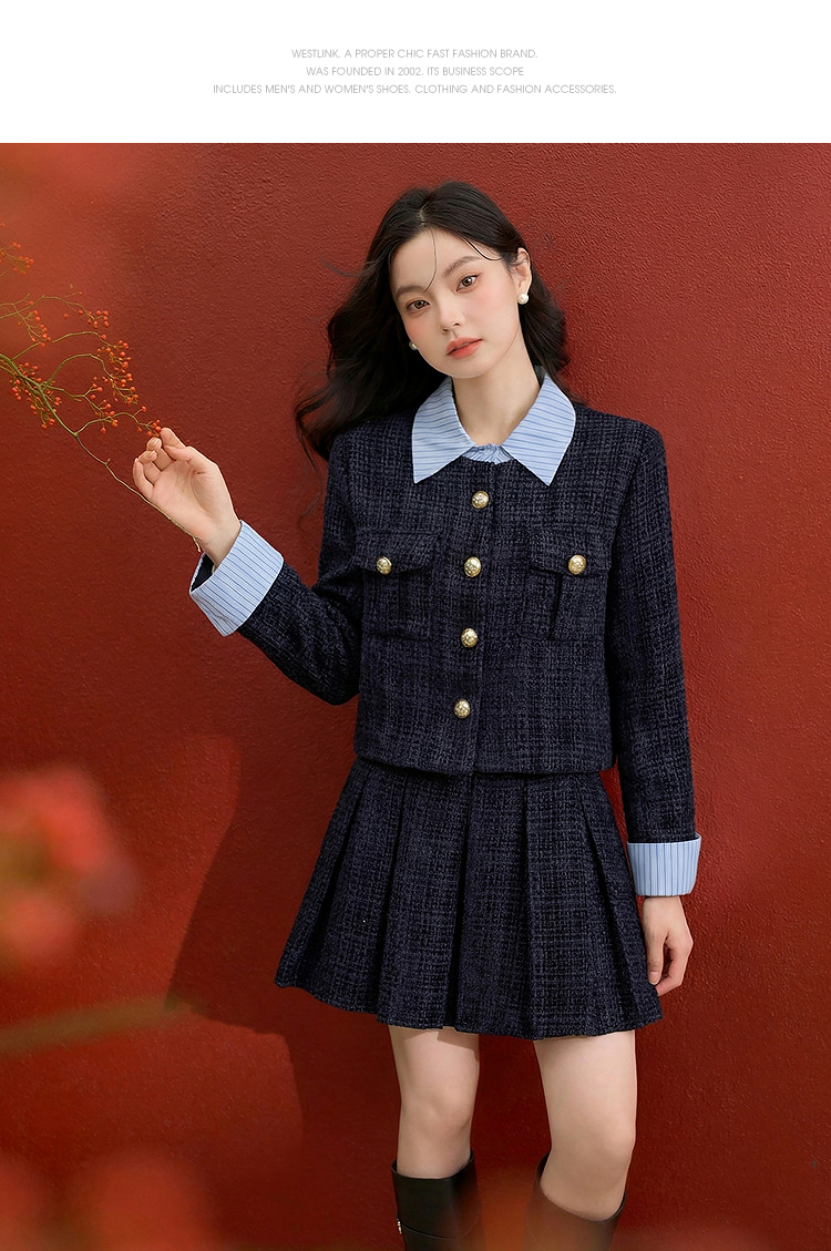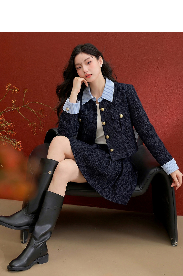西遇小香风套装裙女秋季新款条纹拼接撞色短款外套两件套V0055466/SS051605