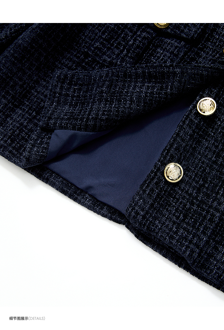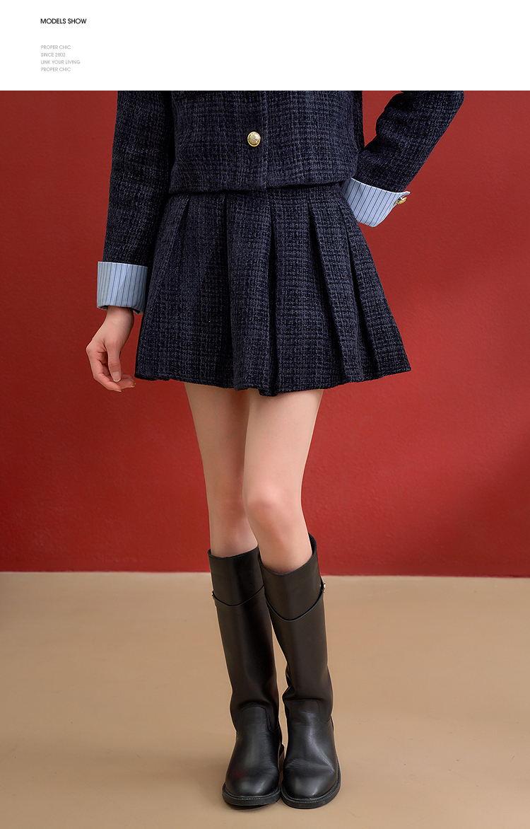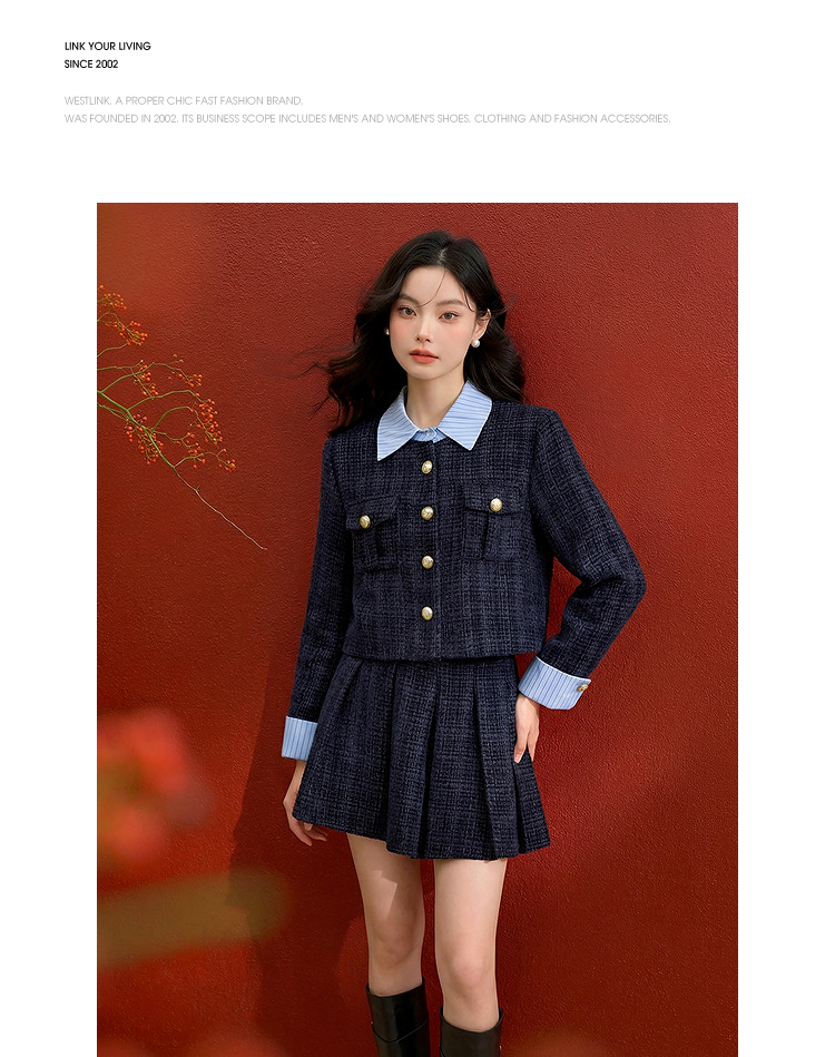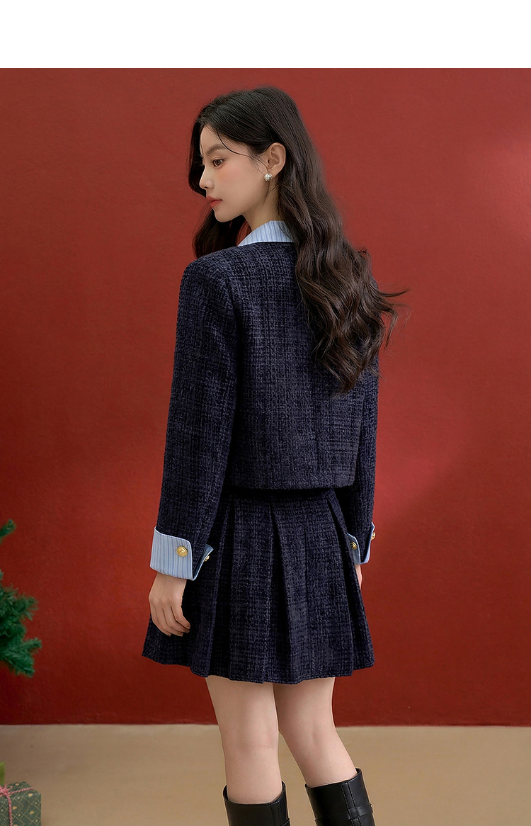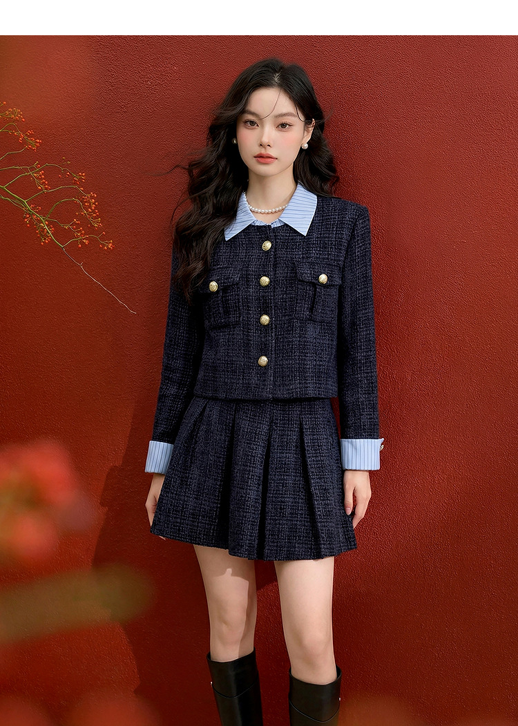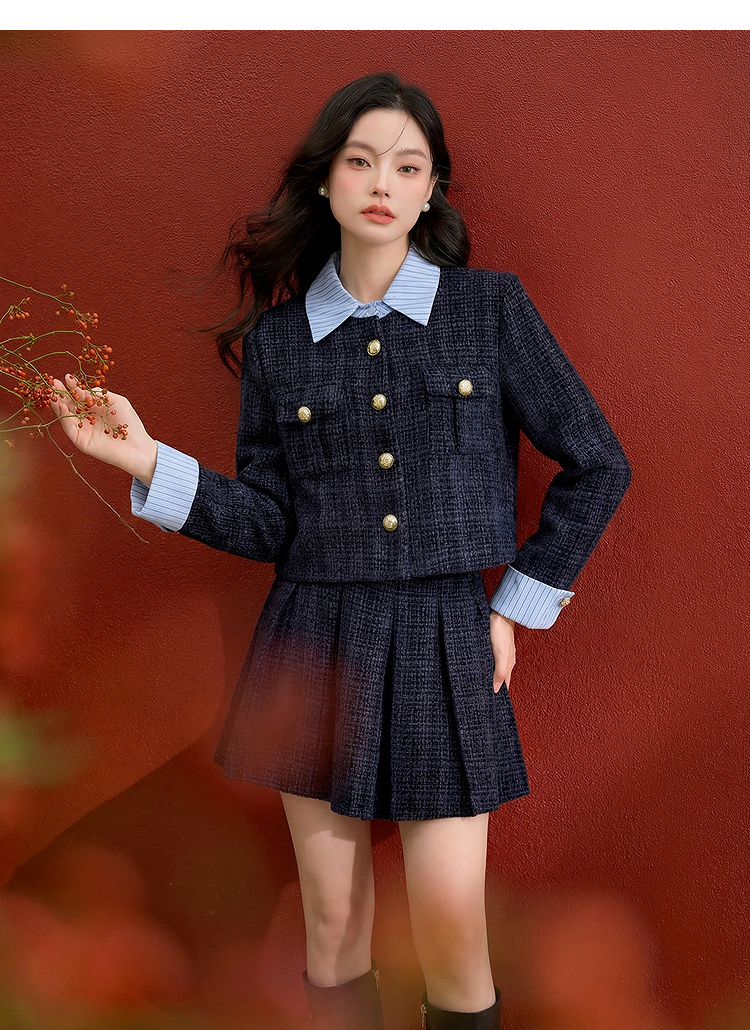 西遇小香风套装裙女秋季新款条纹拼接撞色短款外套两件套V0055466/SS051605