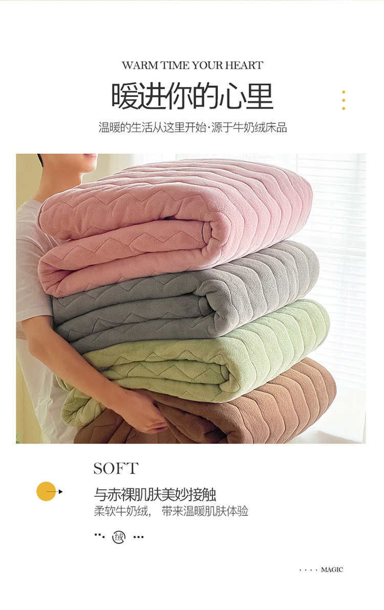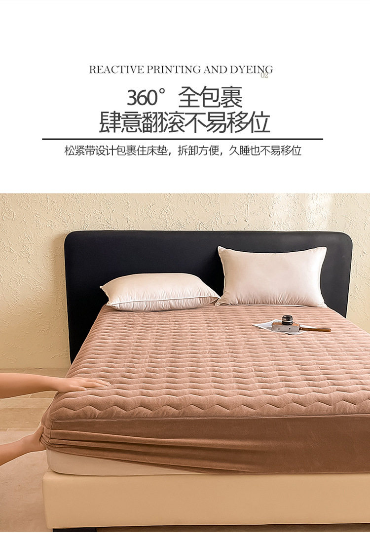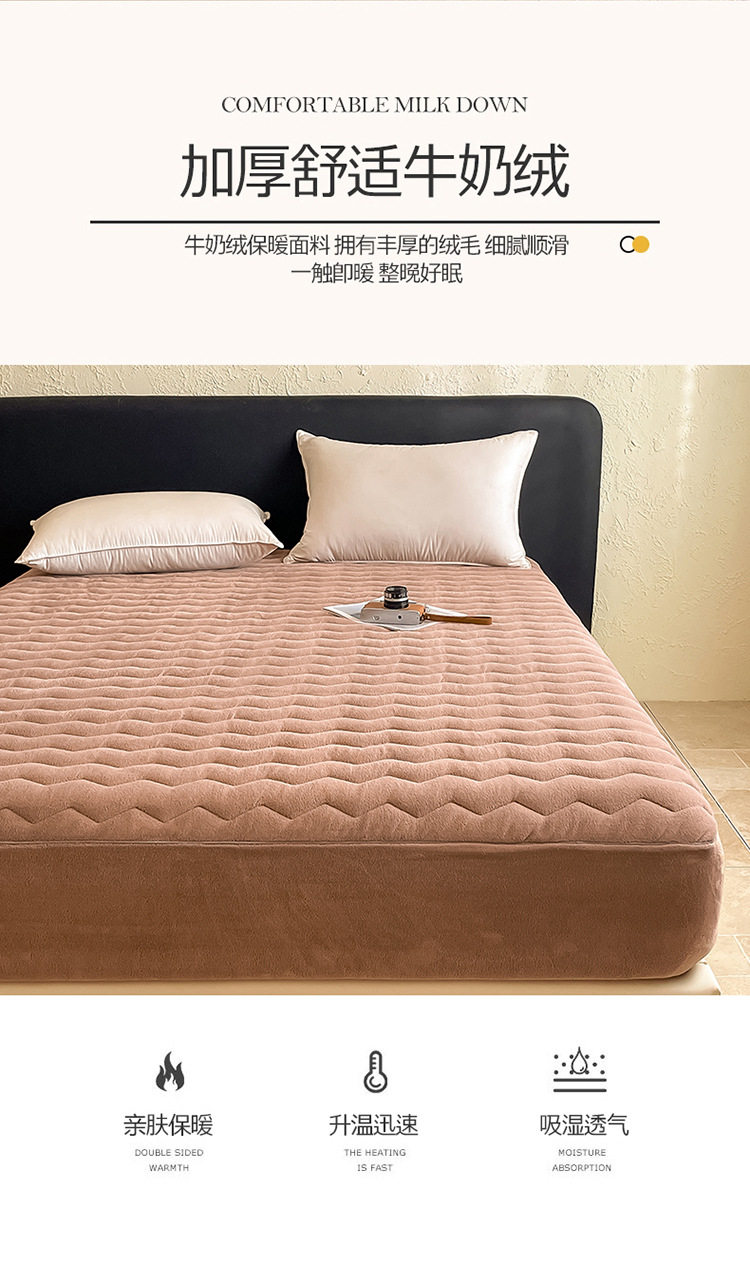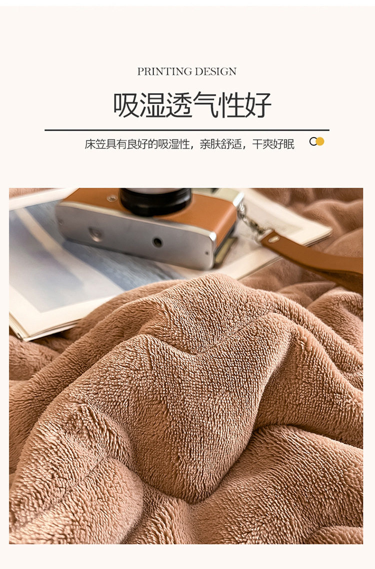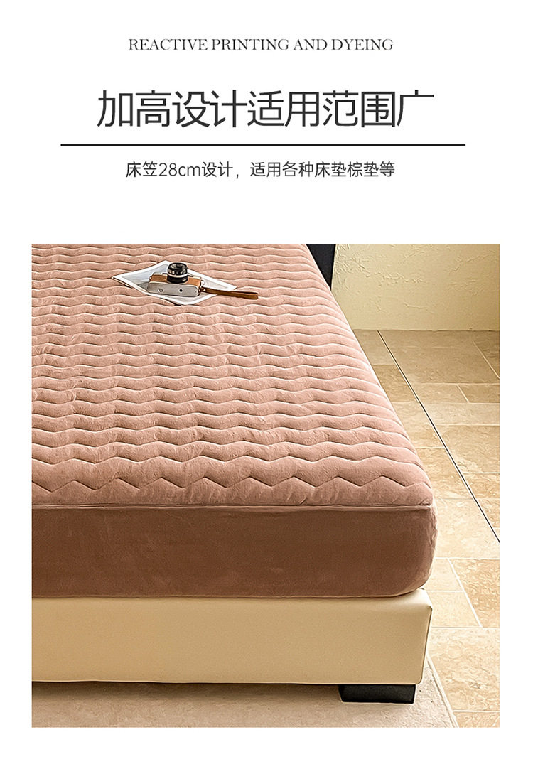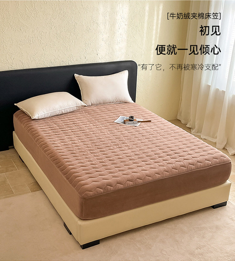 日式无印牛奶绒夹棉床笠良品秋冬保暖床罩纯色加厚床垫透气防滑